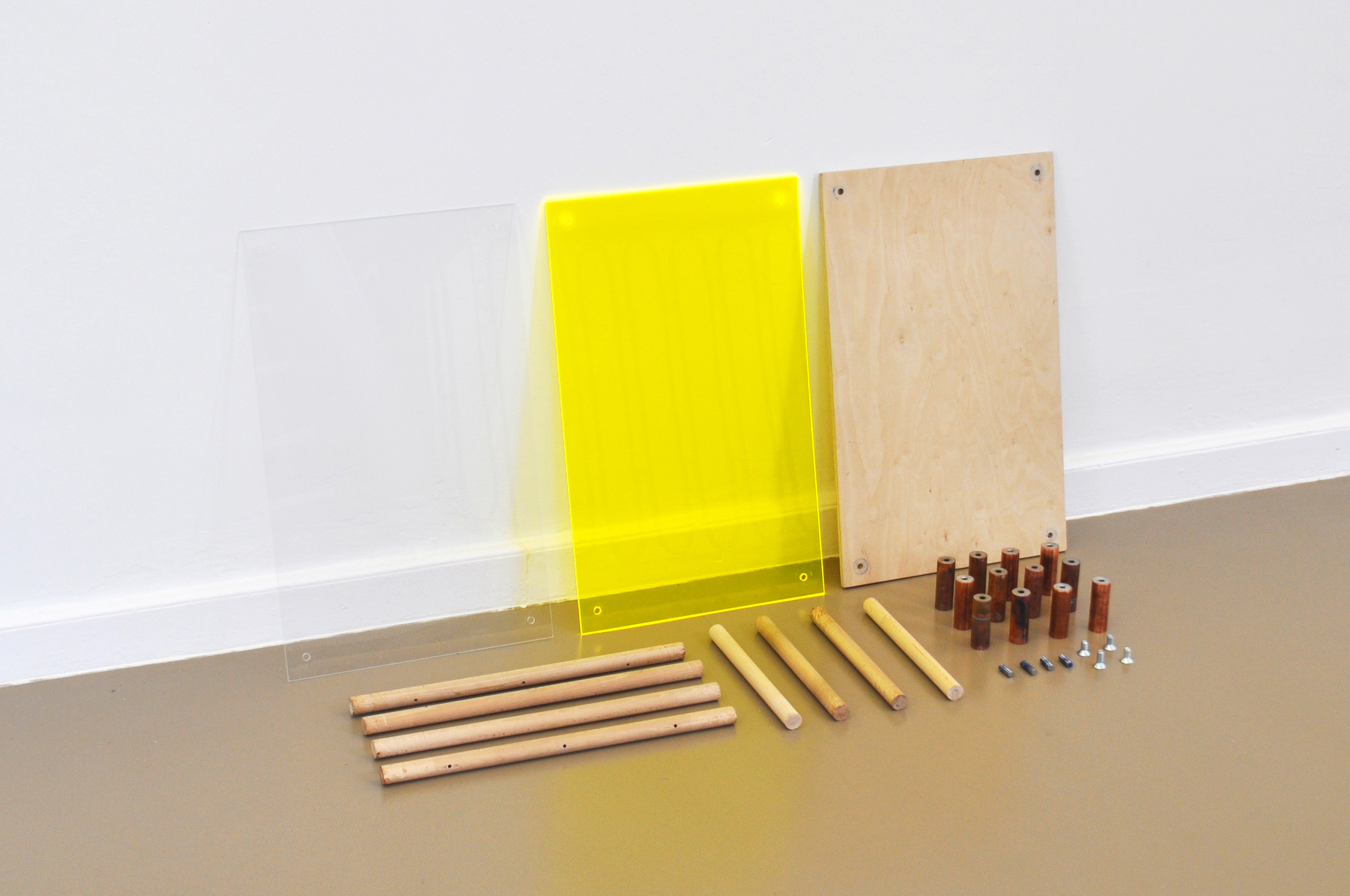 Offene Enden ist ein Designkonzept, das kein festgelegtes, fertiges Produkt hervorbringen will. Wichtig sind die Verbindungselemente, die dem Nutzer die Möglichkeit geben, je nach Wunsch einfache oder komplexere Konstrunktion zu erstellen. Und diese lassen sich mit einfach erreichbaren Holzstäben verbinden, die man bei jedem Bauhaus finden kann. Verbindungelemente verbinden die Halbzeuge somit zu einem professionellen Produkt.