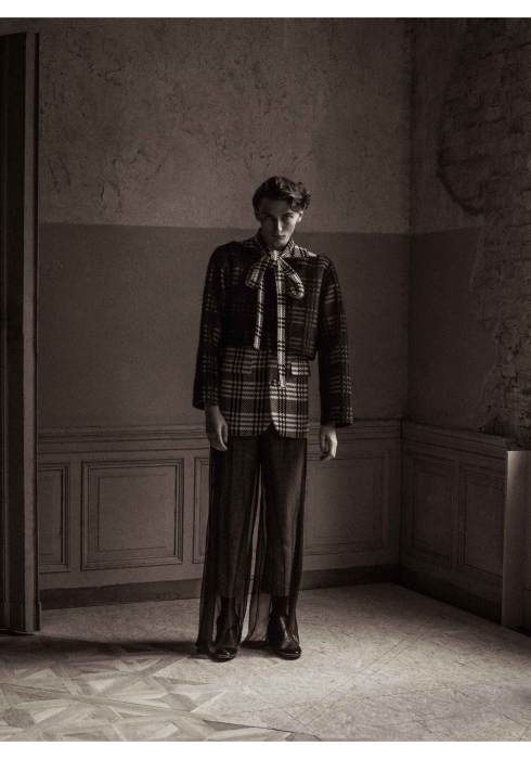 Mit meiner Kollektion möchte ich einen Anstoß geben, den Mann aus seinem festgefahrenen Bild zu befreien, und zu beweisen, dass auch ein geschmückter Mann männlich aussehen kann, sinnlich, ohne lächerlich zu sein. Es liegt mir fern ihm Frauenklamotten überzuziehen und zu erwarten, dass sich der Blick auf ein solches Objekt mit einem Moment verändert. Auch ich halte trotz meiner Experimentierfreudigkeit an gewissen konservativen Sichtweisen fest. Meine Intention ist es lediglich zu spielen und die Geschlechtergrenzen somit ein wenig aufzurütteln. Ziel ist es eine ausgewogene Reaktion an Verwirrung und Akzeptanz zu stiften, einen Eindruck, welcher auf den ersten Blick verwundern mag. Das Bild des Mannes verändert sich und ich hoffe es dauert nicht mehr lange, da wird meine Kollektion keine beachtenswerte Reaktion mehr hervorbringen, sondern als “normal” gesehen werden.