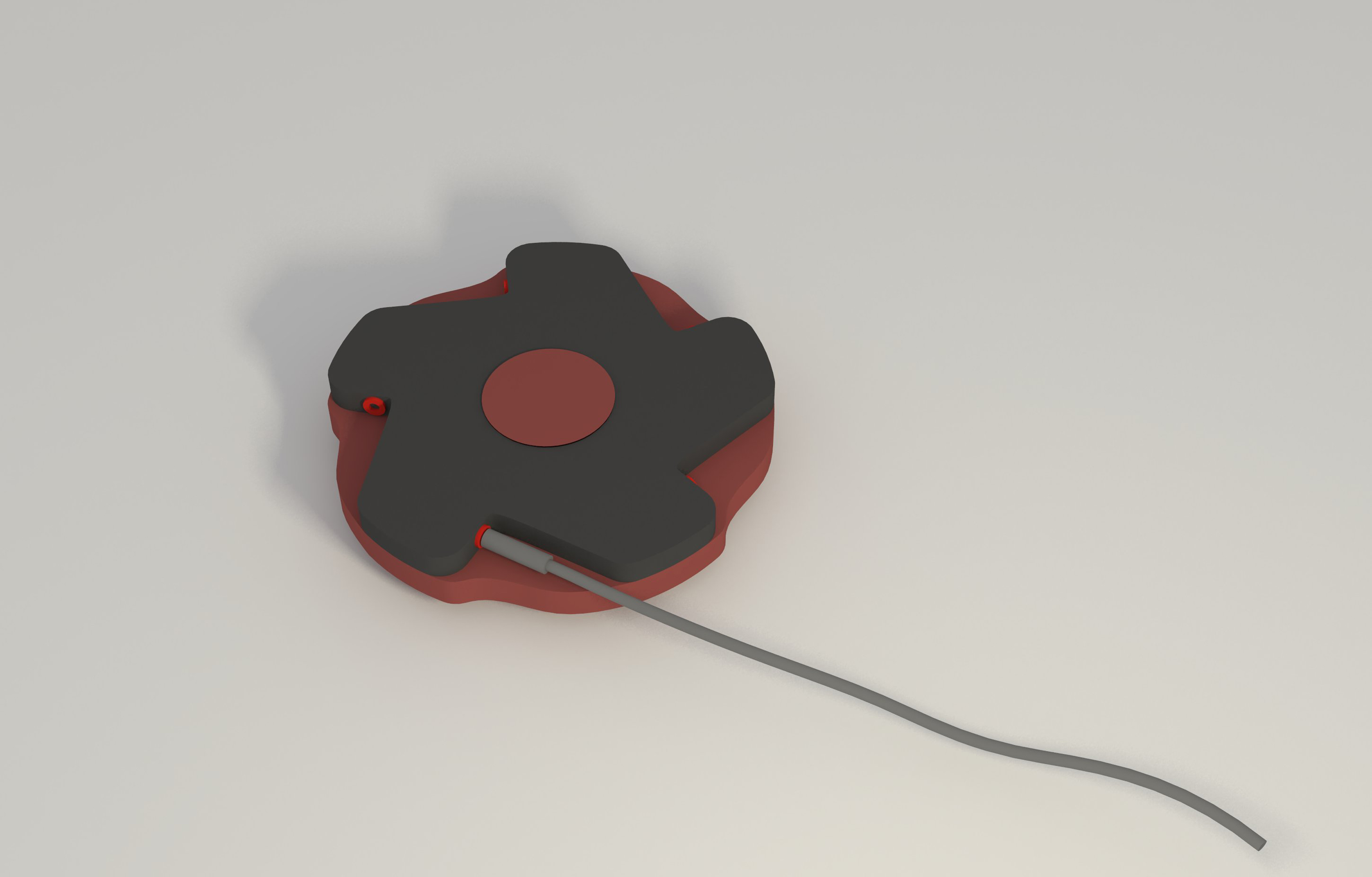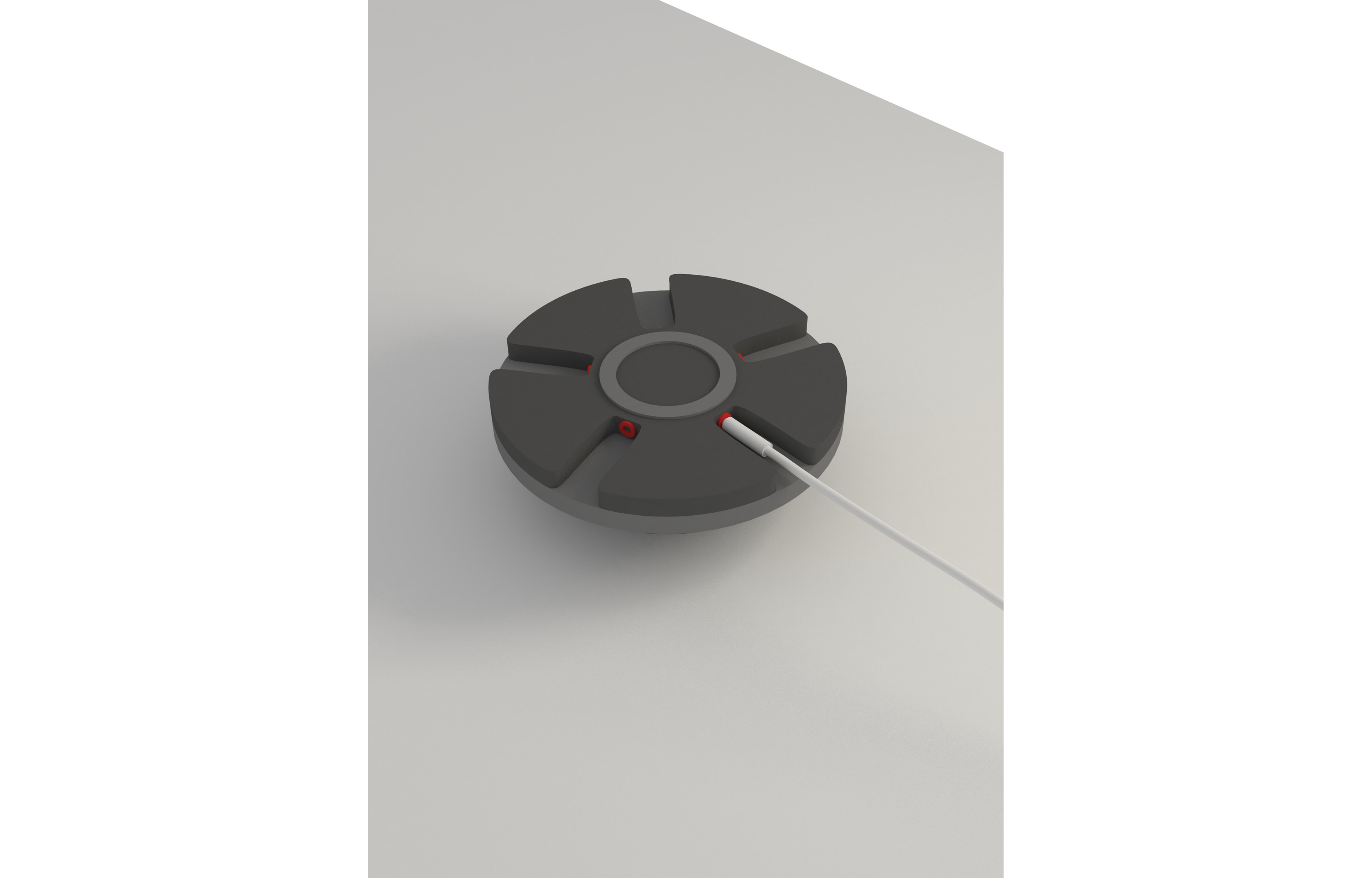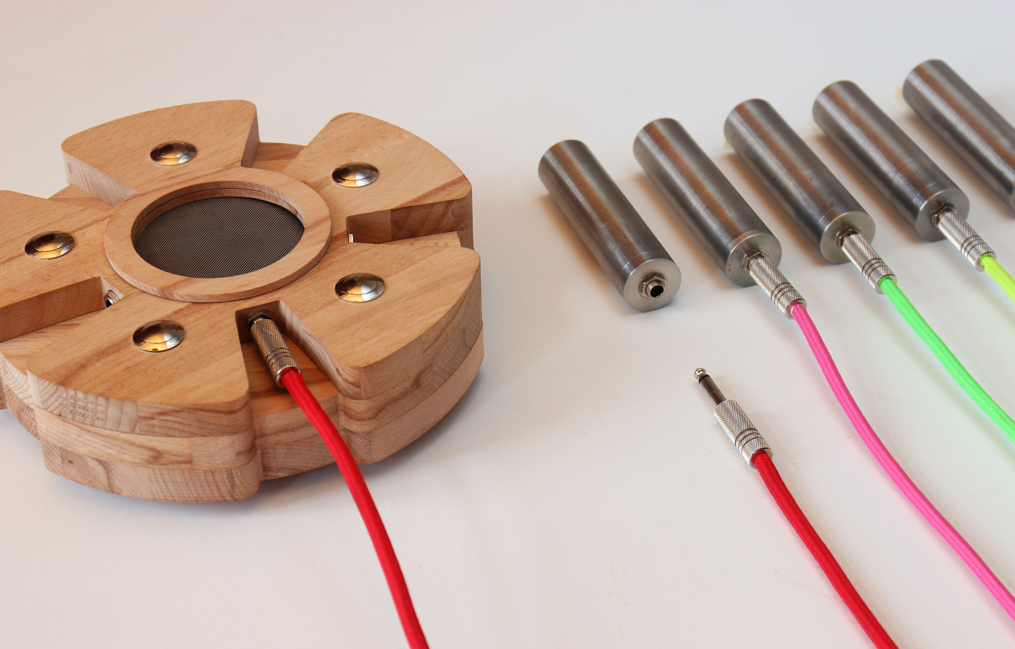 Bei meinem Gerät hält jeder der fünf Mitspieler einen elektrisch leitenden Griff und ist so durch ein Kabel mit der Konsole in der Mitte verbunden. Berühren sich zwei Spieler, wird ein messbarer Stromkreis geschlossen. So erkennt das Gerät jeden Hautkontakt und kann durch Regeln und ein akustisches Feedback verschiedenste Körperkontaktspiele auf der Basis von Rhythmus und Musik umsetzen.