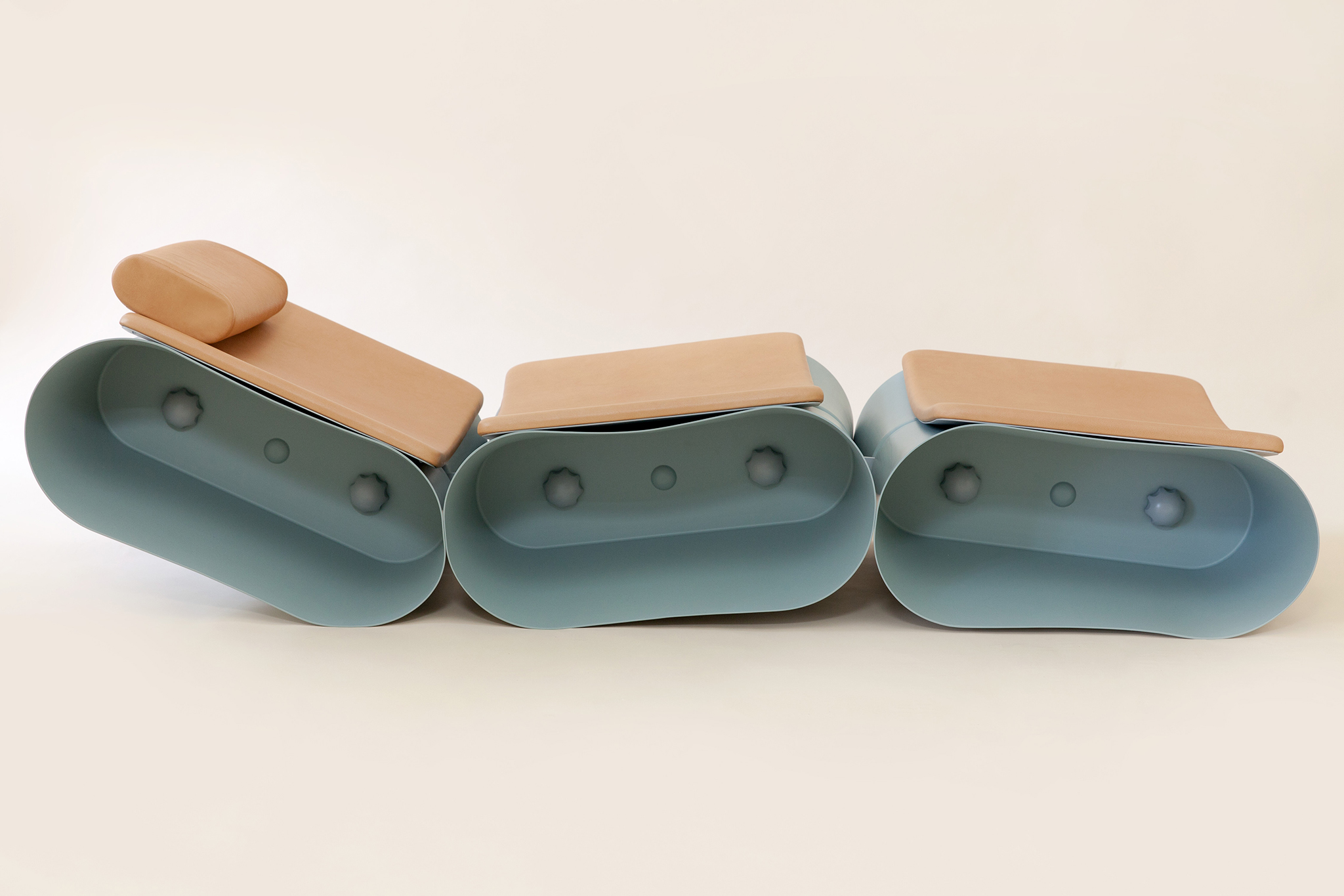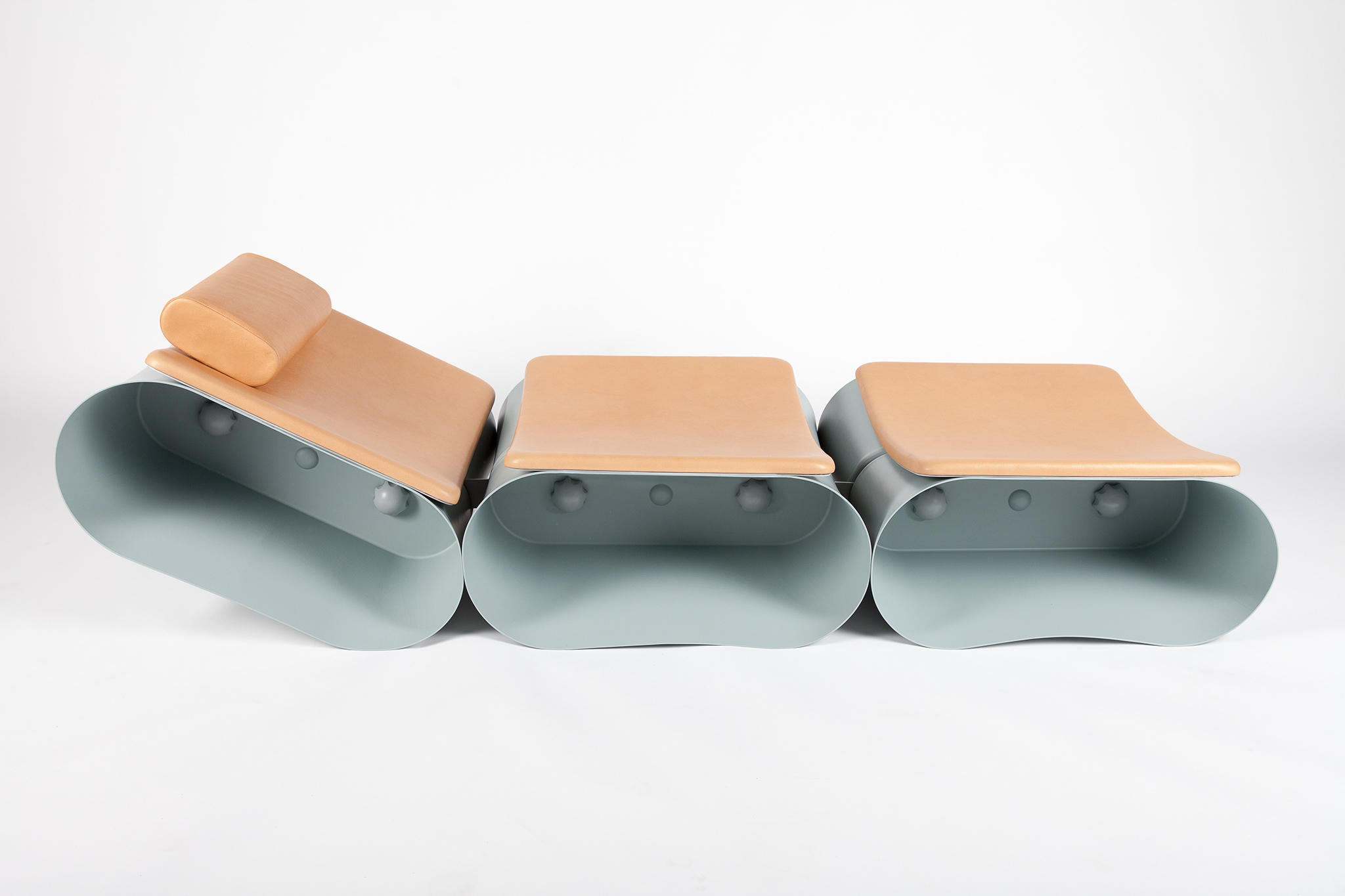 Die Kunststoffmodule von MERKATO, sind inspiriert an der Form und Funktion des klassischen Kunststoffeimers. Die Kunststoffmodule bilden im zusammengesetzten Zustand ein Liege oder ein Sitzmöbel. In Einzelteile zerlegt, lassen sich die Elemente stapeln um sie zu transportieren oder zu verstauen.