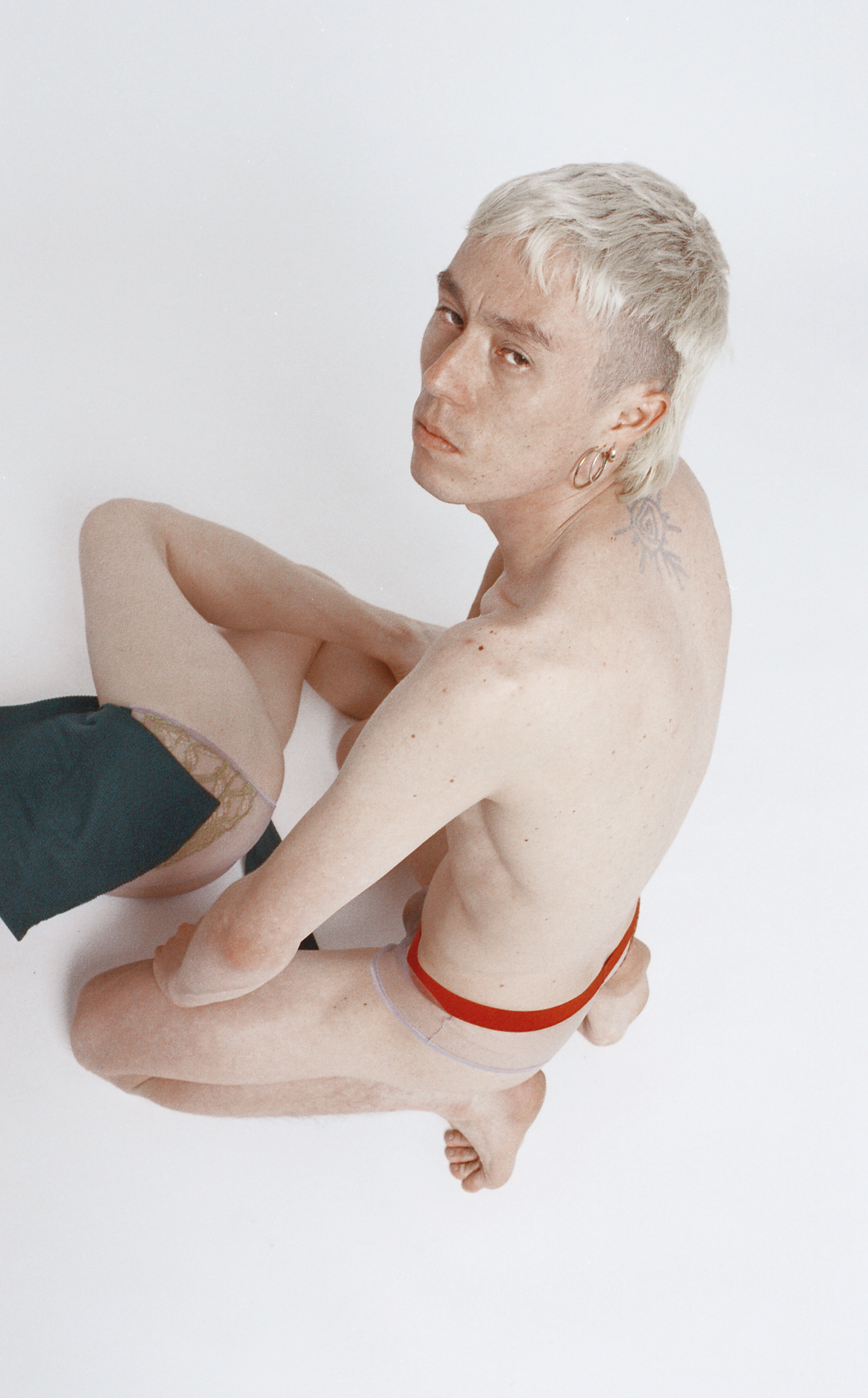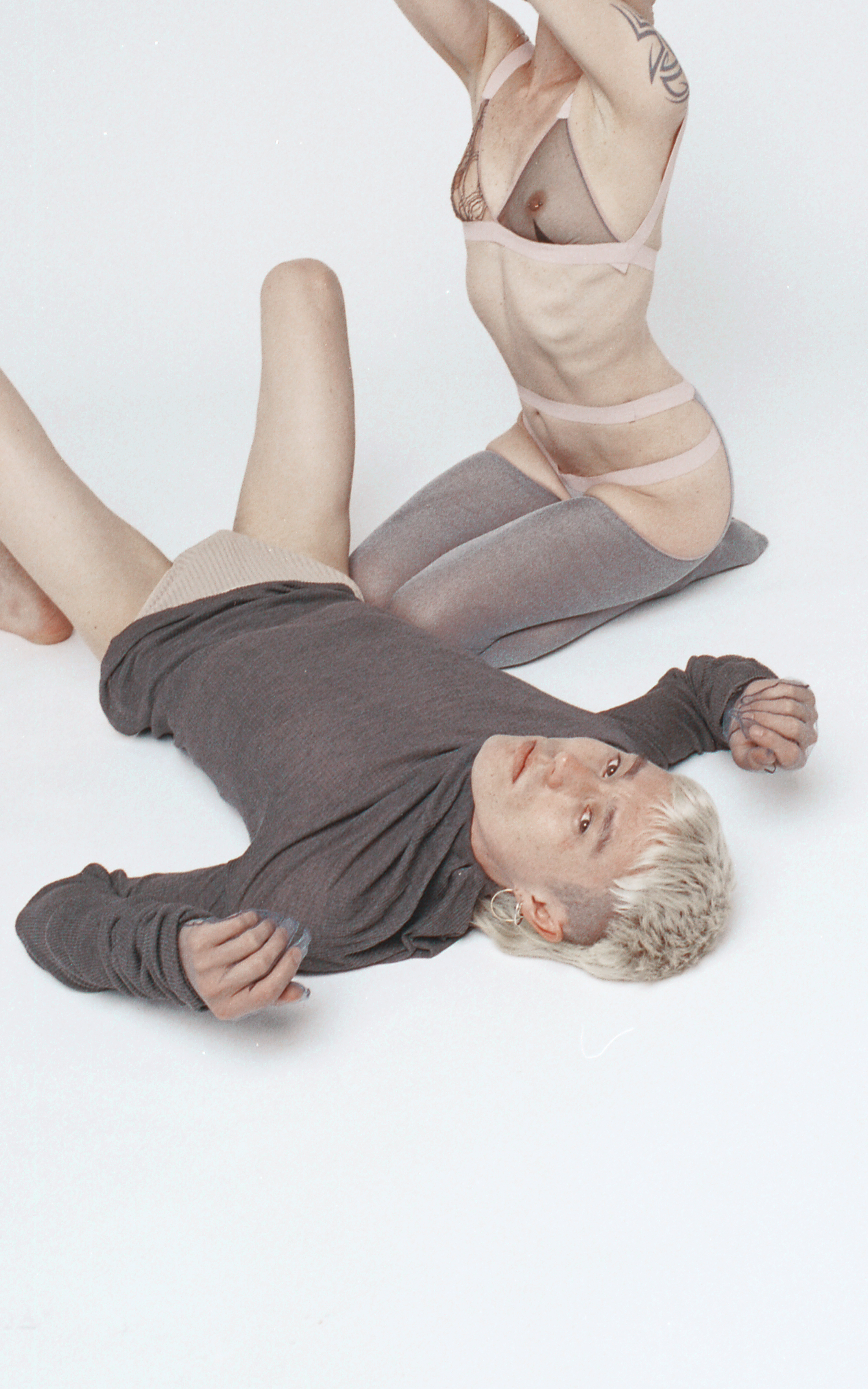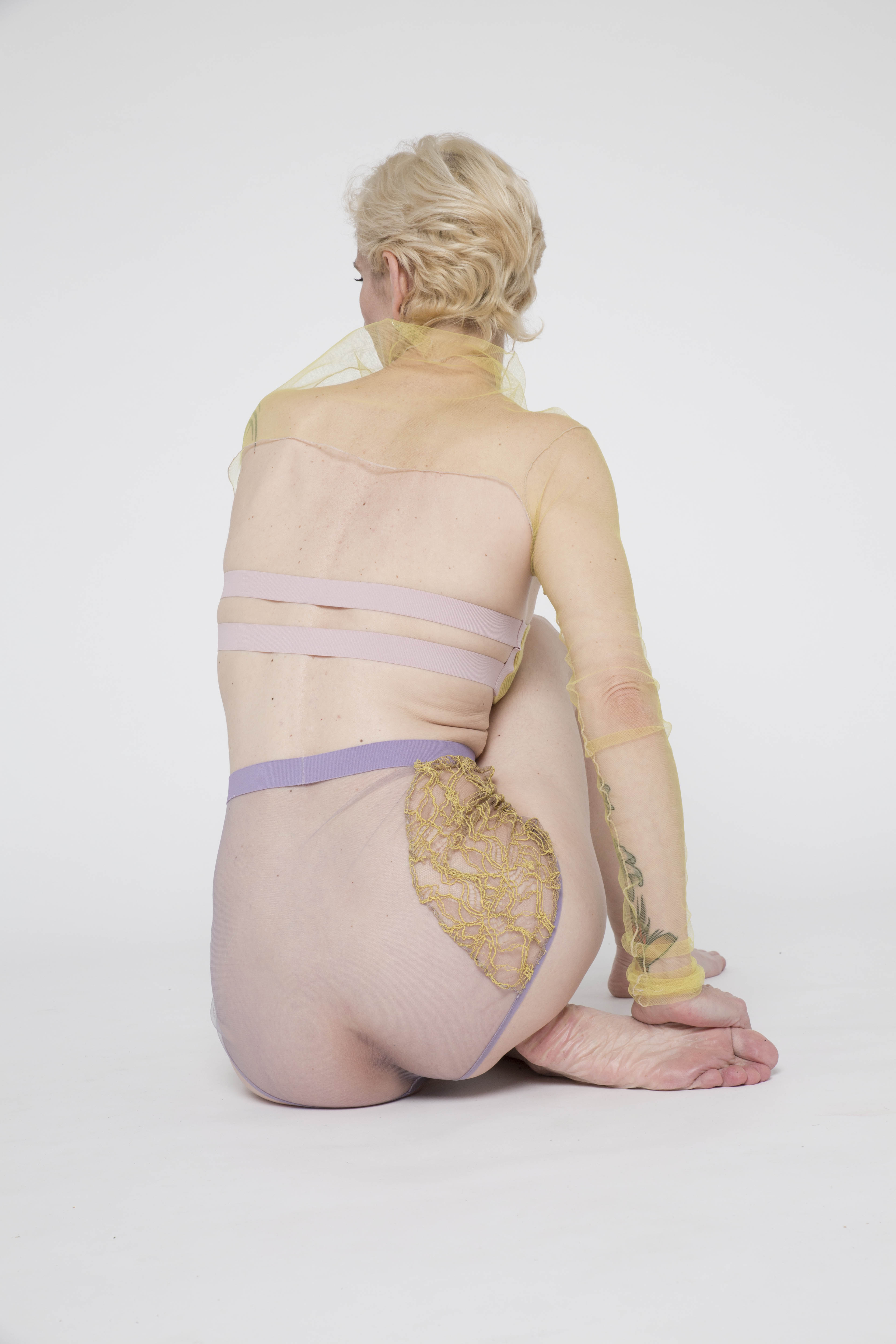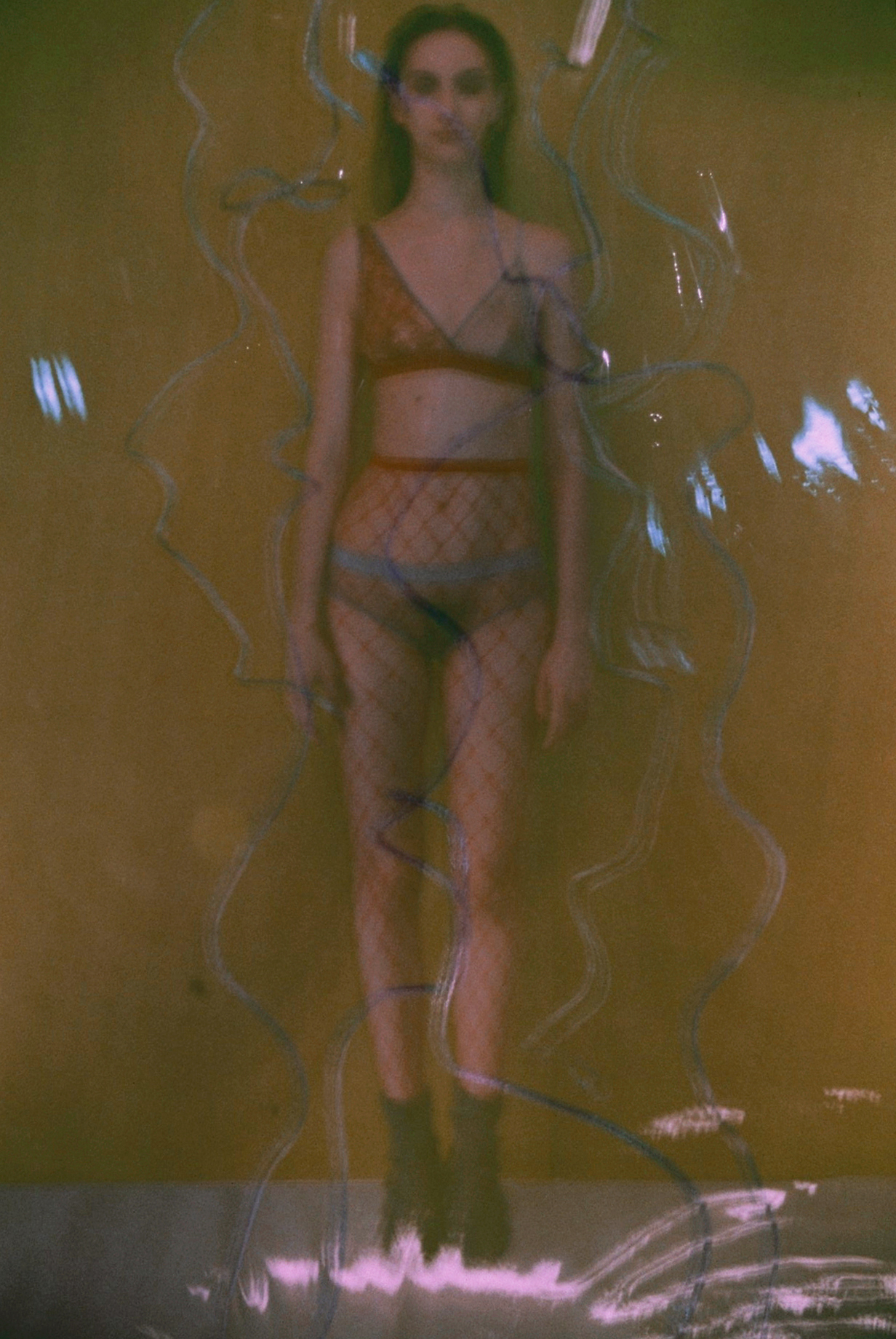 The remarkable accumulation of scantily-clad sel es by net-feminists and of the particular role of underwear in relation to the female body initiated the theoretical basis of this lingerie collection, which reacts and interacts with elements of the contemporary melancholic feminist self-staging.