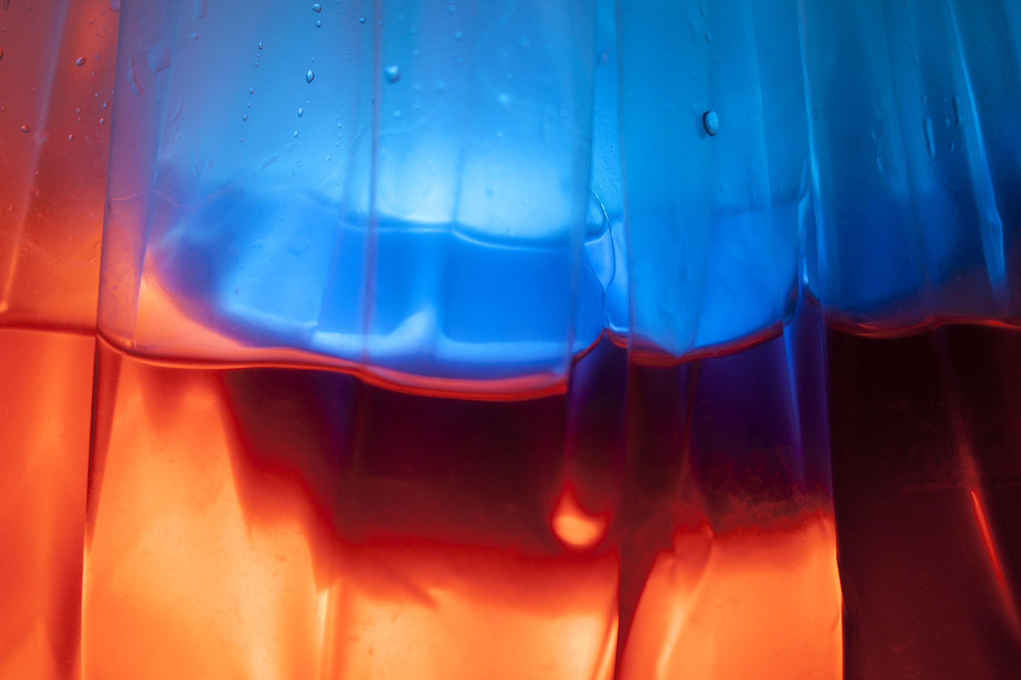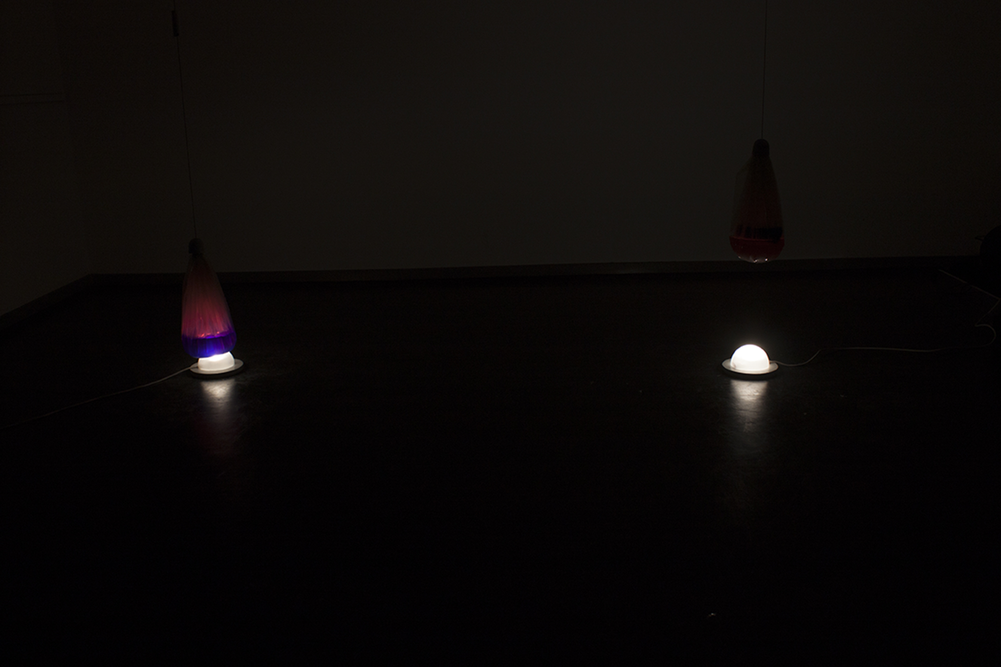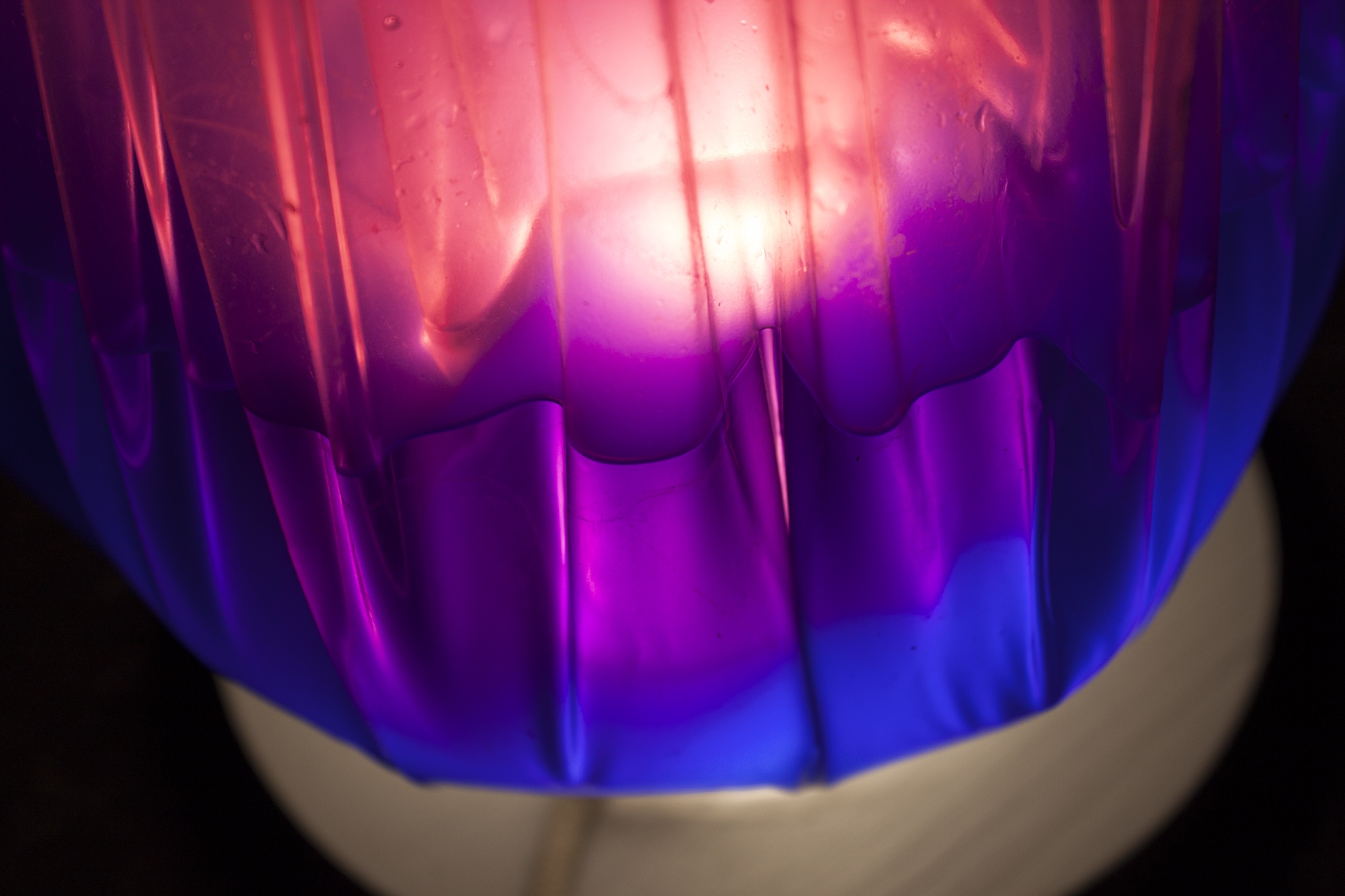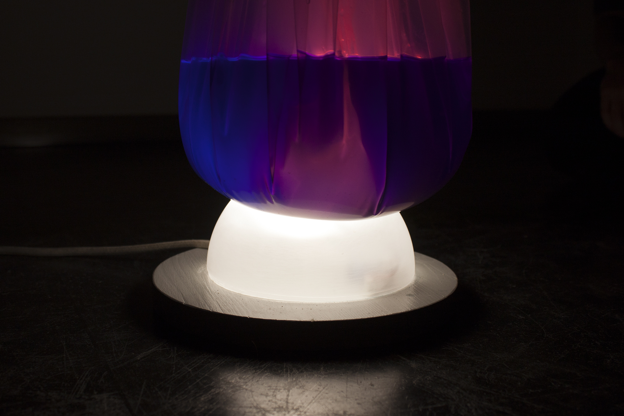 Sie besteht aus zwei sich gegenüberhängenden Säcken, die mit einer farbigen Flüssigkeit gefüllt sind und über einen Flaschenzug miteinander verbunden sind. Damit gleichen sie ihr Gewicht aus. Die Kunststoffhüllen hängen über einer Lichtquelle und können sich unterschiedlich tief über das Licht legen, wodurch sich ein analoger Farbdimmer ergibt.