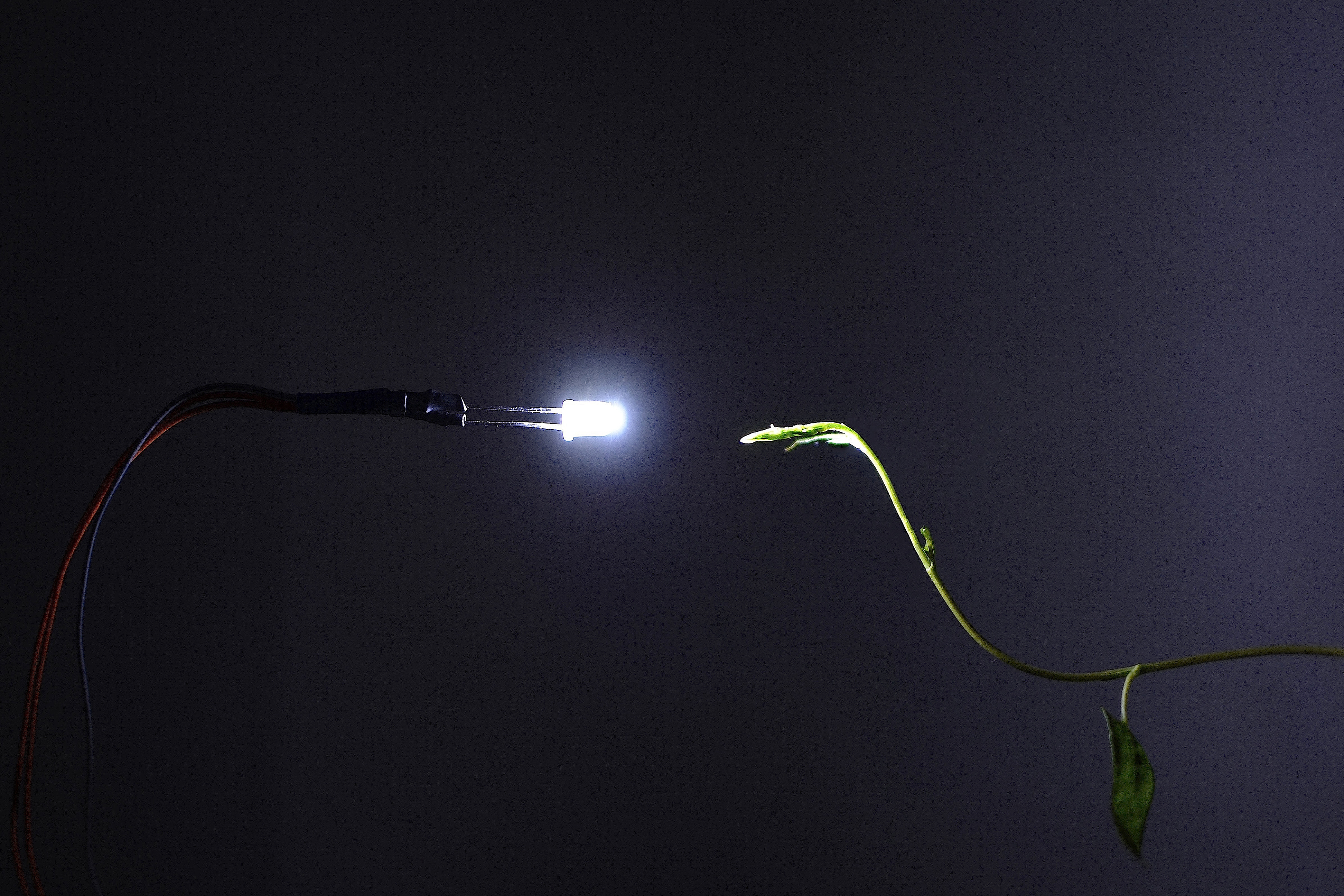 Das Wachstum einer Pflanze folgt dem Sonnenlicht und dieses kann man mit LEDs imitieren. Verändert man nun den Standpunkt des Lichtes, kann man die Pflanze dazu verleiten, in ganz speziellen Bahnen zu wachsen.