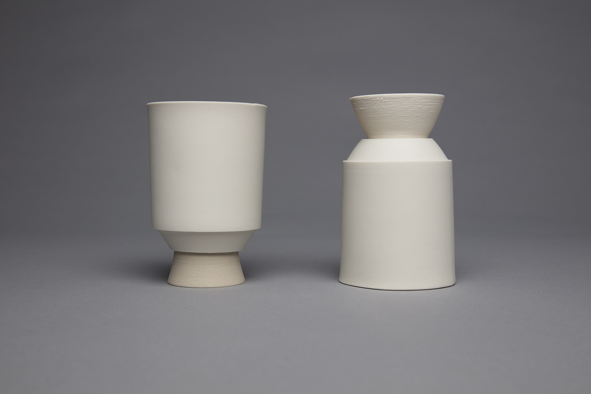 Die beiden Produktionsmethoden, 3D Druck und Slip Casting, werden als zwei unterschiedliche Arten der Porzellan Verarbeitung wahrgenommen. Eine Methode ist digital und sehr neu, während die andere traditionell und schon lange vorhanden ist.