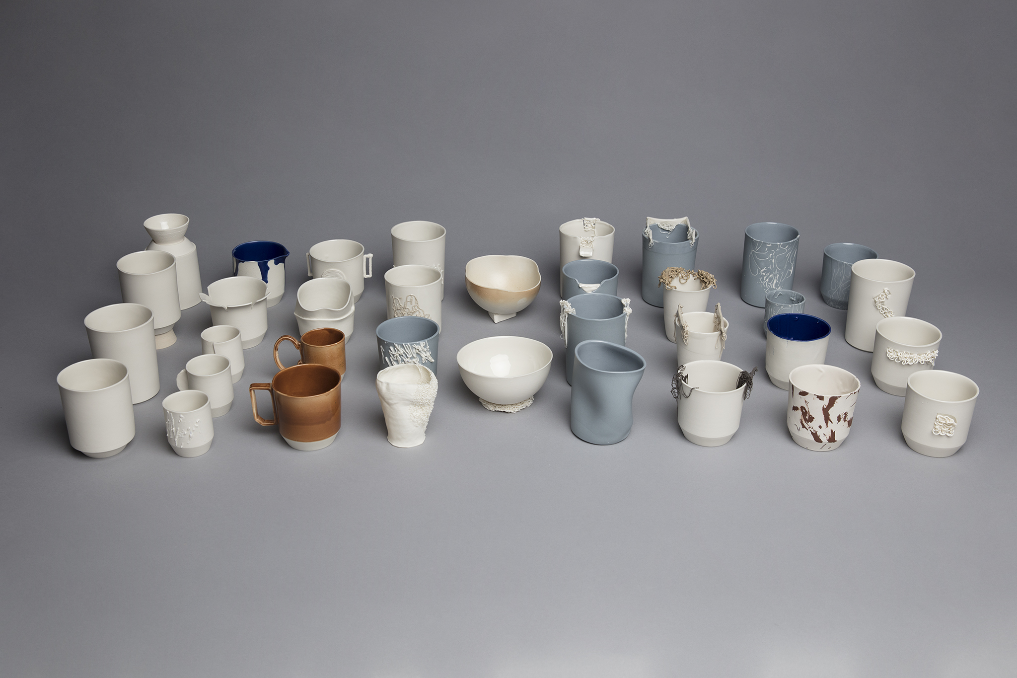 Aus dem Experimentieren mit Porzellan sind verschiedene Ansätze entstanden, die zeigen sollen, dass eine neue Produktionstechnik zu einer neuen, teilweise abstrakten Ästhetik führen kann: