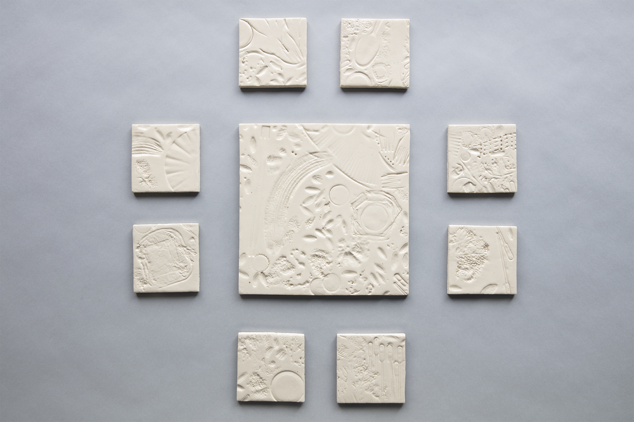 Müll als eine Begleiterscheinung unseres Daseins wird in Tonkacheln gepresst und hinterlässt einen Abdruck unseres Existenz. Ohne Spuren von Schmutz und dem Makel des Weggeworfenen enthoben, erfährt er in den Tonkacheln eine Erhöhung und eine neue Bedeutung.