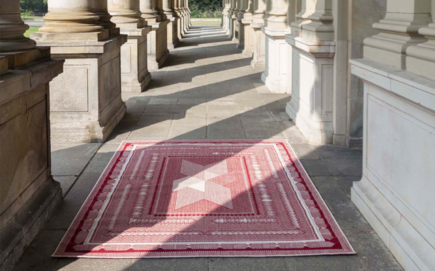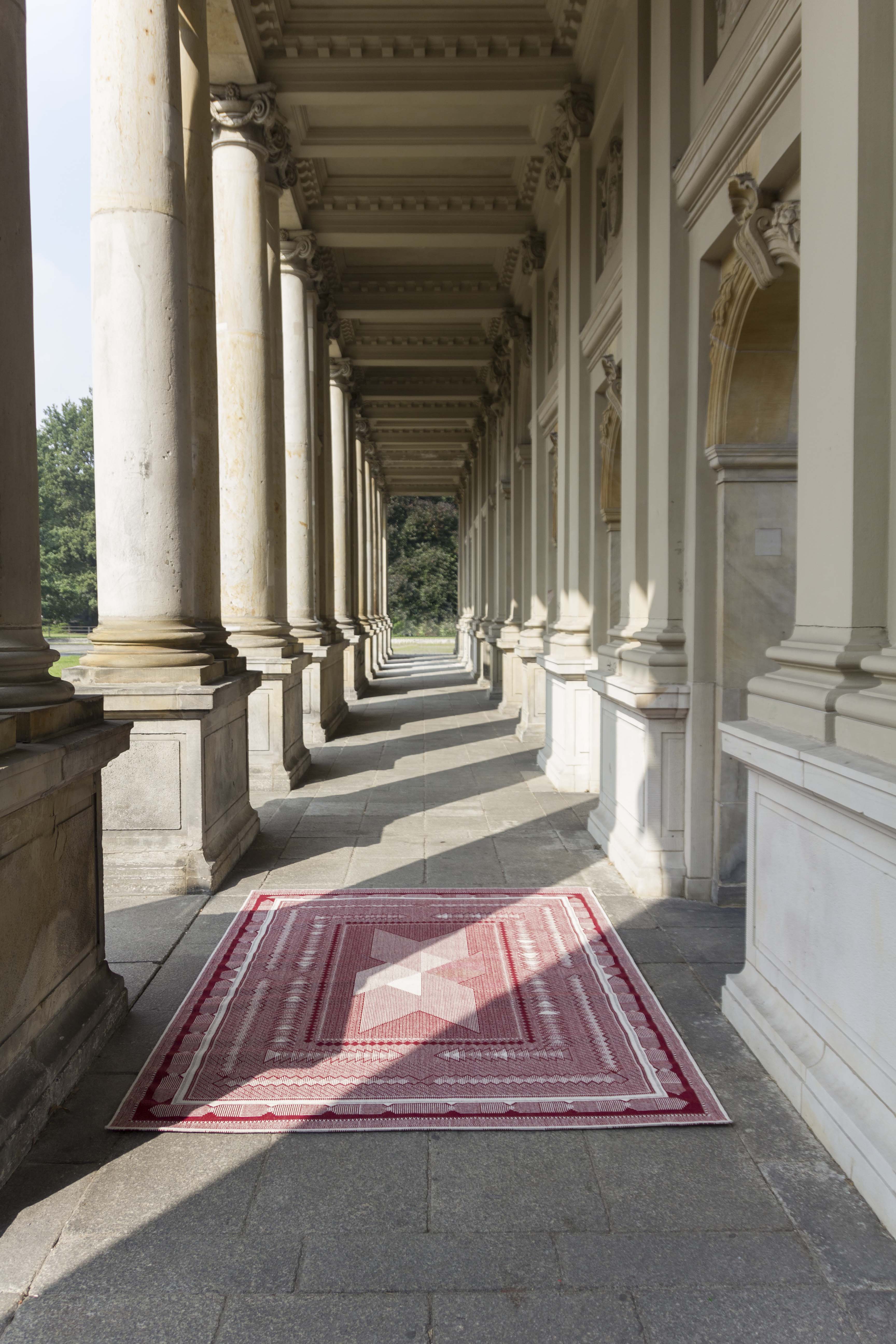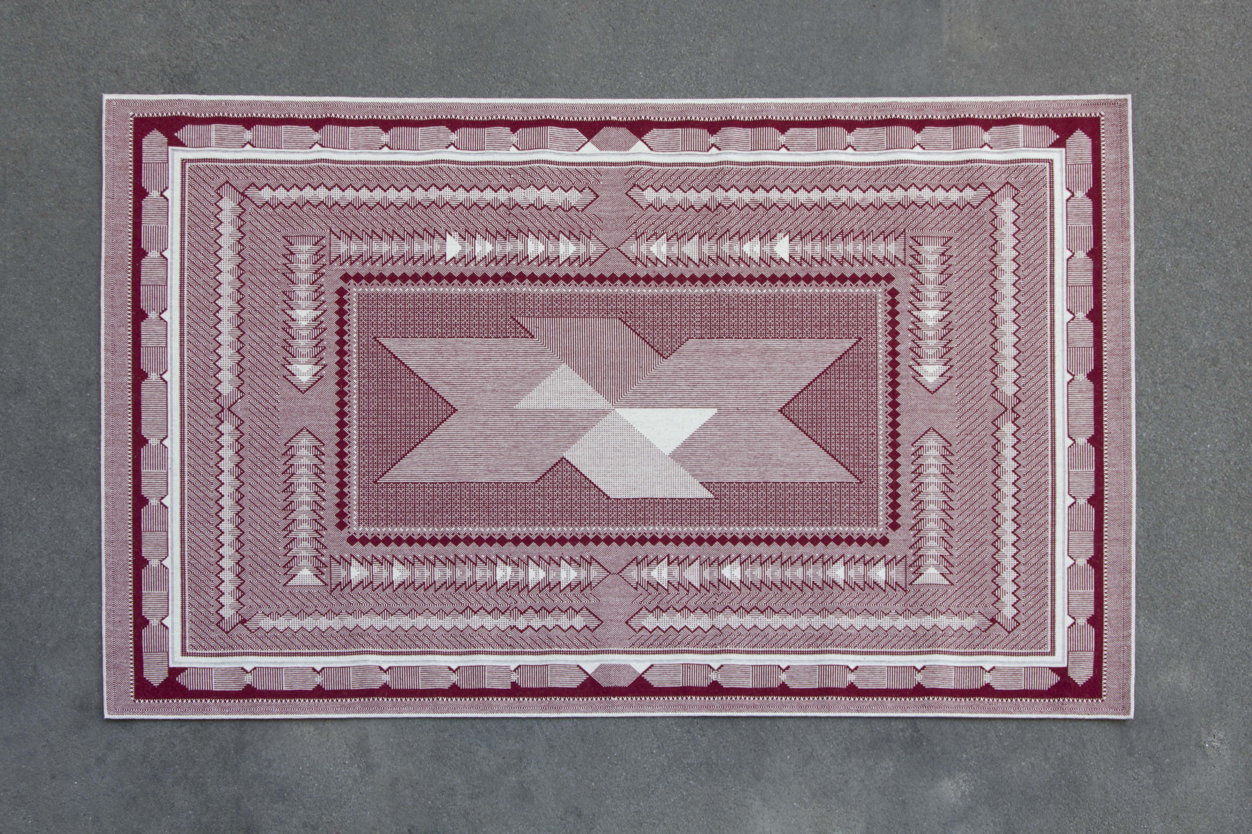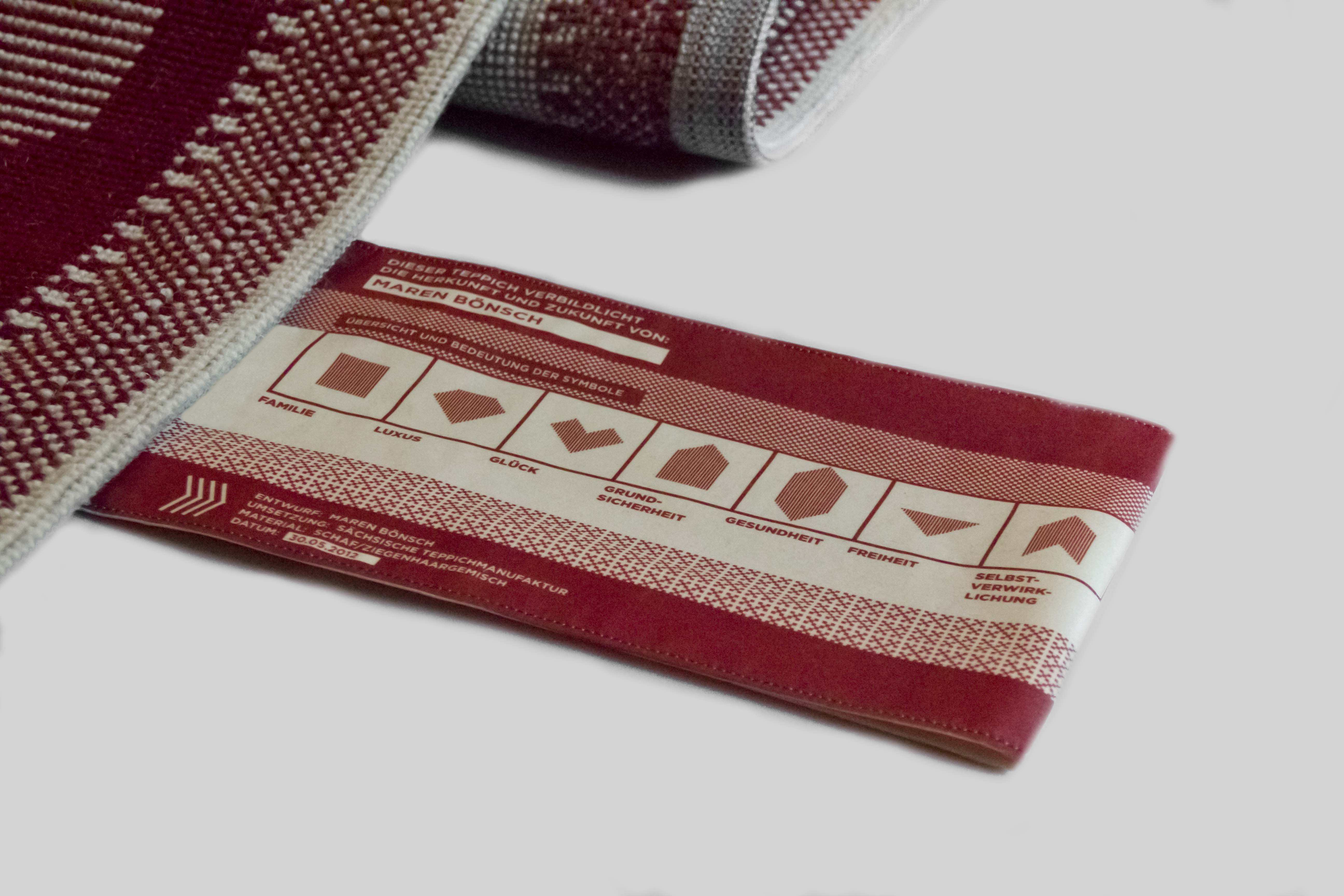 Die Herkunft wird in der Machart des Teppichs, die Zukunft in den abgebildeten Zeichen umgesetzt.
