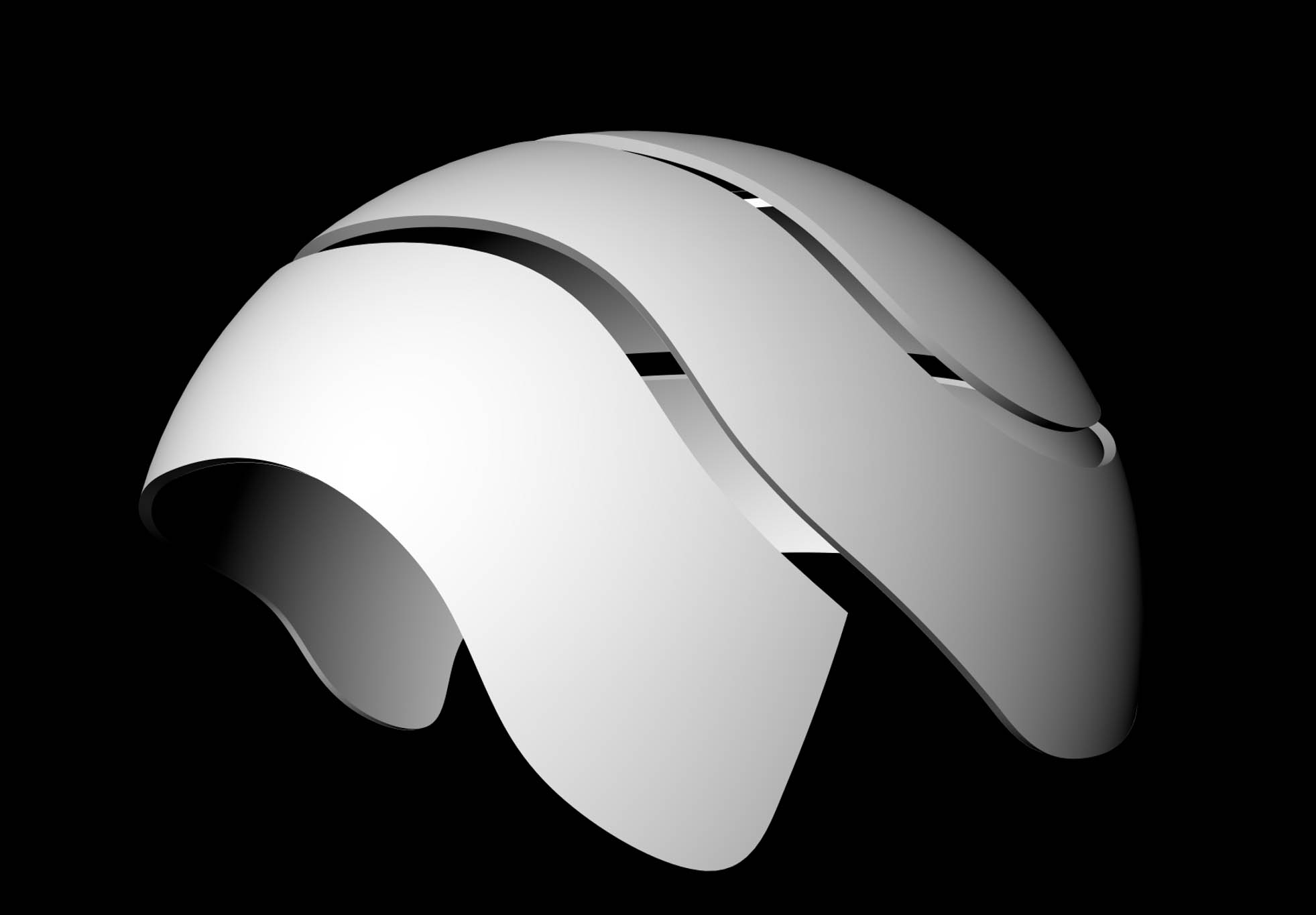 thelma basiert auf der idee, die asymmetrische struktur von klassischen kopfbedeckungen auf helme anzuwenden, um deren natürliche erscheinung zu über- nehmen. der platz der durchbrüche für die belüftung nutzt die spiralform, welche auf gewickelte turbane verweist. so entsteht ein legerer helm, der sich wie ein band um den kopf legt.