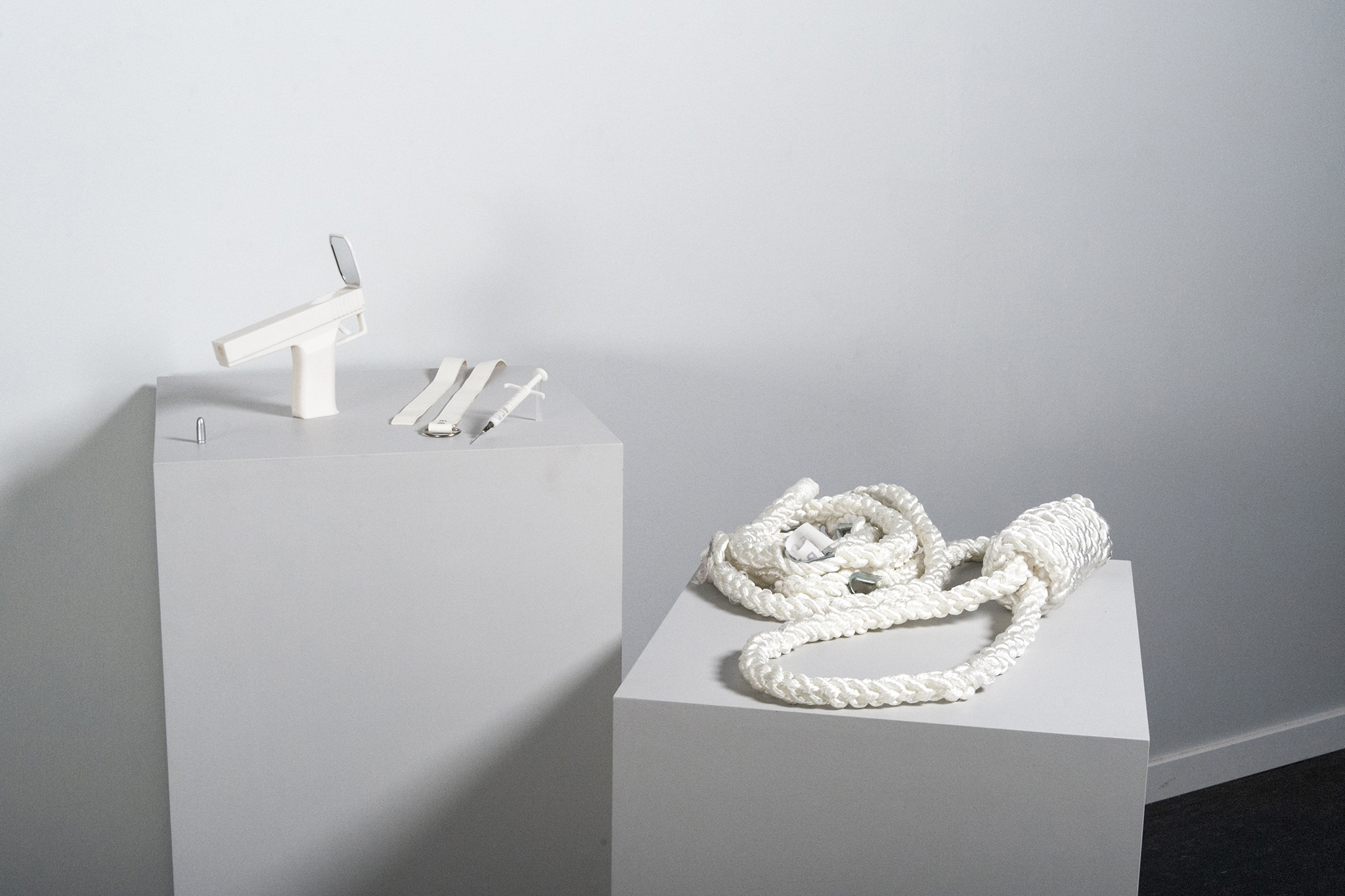 Aber wenn der Suizid ein so verbreitetes Phänomen ist, warum gibt es keine gestalteten Werkzeuge, um das eigene Leben zu beenden? Meist wird Suizid mit Objekten begangen, die eigentlich eine andere Funktion haben. Heroin zum Beispiel wird als Droge genutzt, aber eine zu hohe Dosis ist tödlich, die Funktion eines Seils ist es, etwas festzubinden, zu fangen, oder ähnliches, aber nicht um sich zu erhängen und eine Pistole ist gestaltet, um andere zu erschießen und nicht sich selbst. Ist Suizid auch wenn es allgegenwärtig ist immer noch nicht geselschaftlich akzeptiert? Wieso ist es immer noch tabuisiert, auch wenn eine offene Diskussion mit Irrglauben und Stigmen aufräumen könnte?