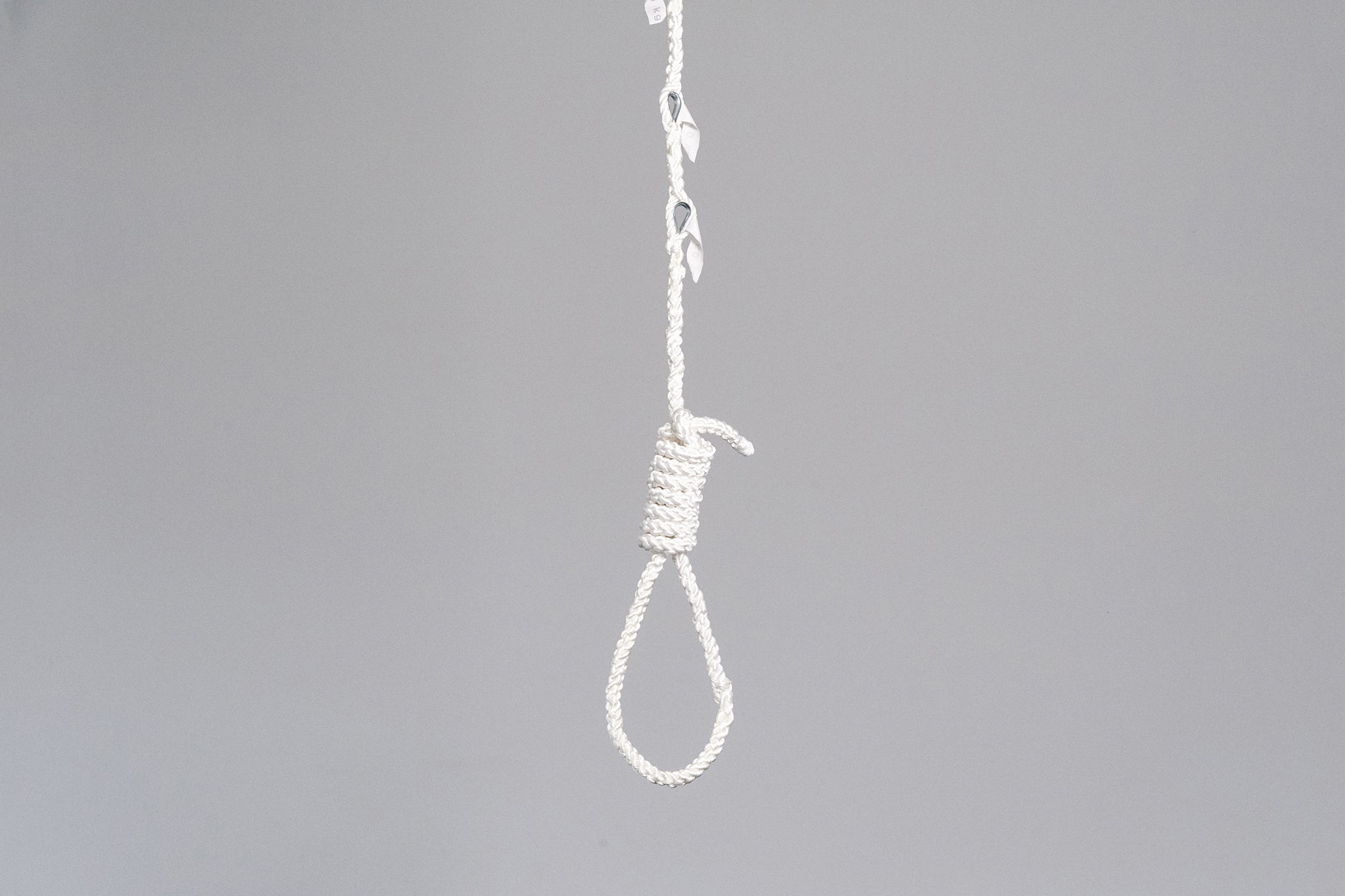 Erhängen ist eine immer noch verbreitete Methode der Todesstrafe. Dabei ist der Genickbruch meist das Ziel, damit der Erhängte das Bewusstsein verliert und das spätere Ersticken oder die gestoppte Blutzufuhr zum Gehirn nicht wahrnimmt. Durch eine Formel wird die richtige Fallhöhe für ein bestimmtes Körpergewicht errechnet. Ist der Fall zu niedrig besteht die Gefahr, dass das Genick nicht bricht und man bei vollem Bewusstsein Zeit stirbt. Ist der Fall zu hoch besteht die Gefahr, dass der Kopf abreißt. Das Seil hat mehrere Aufhängepunkte in geeigneten Höhen.