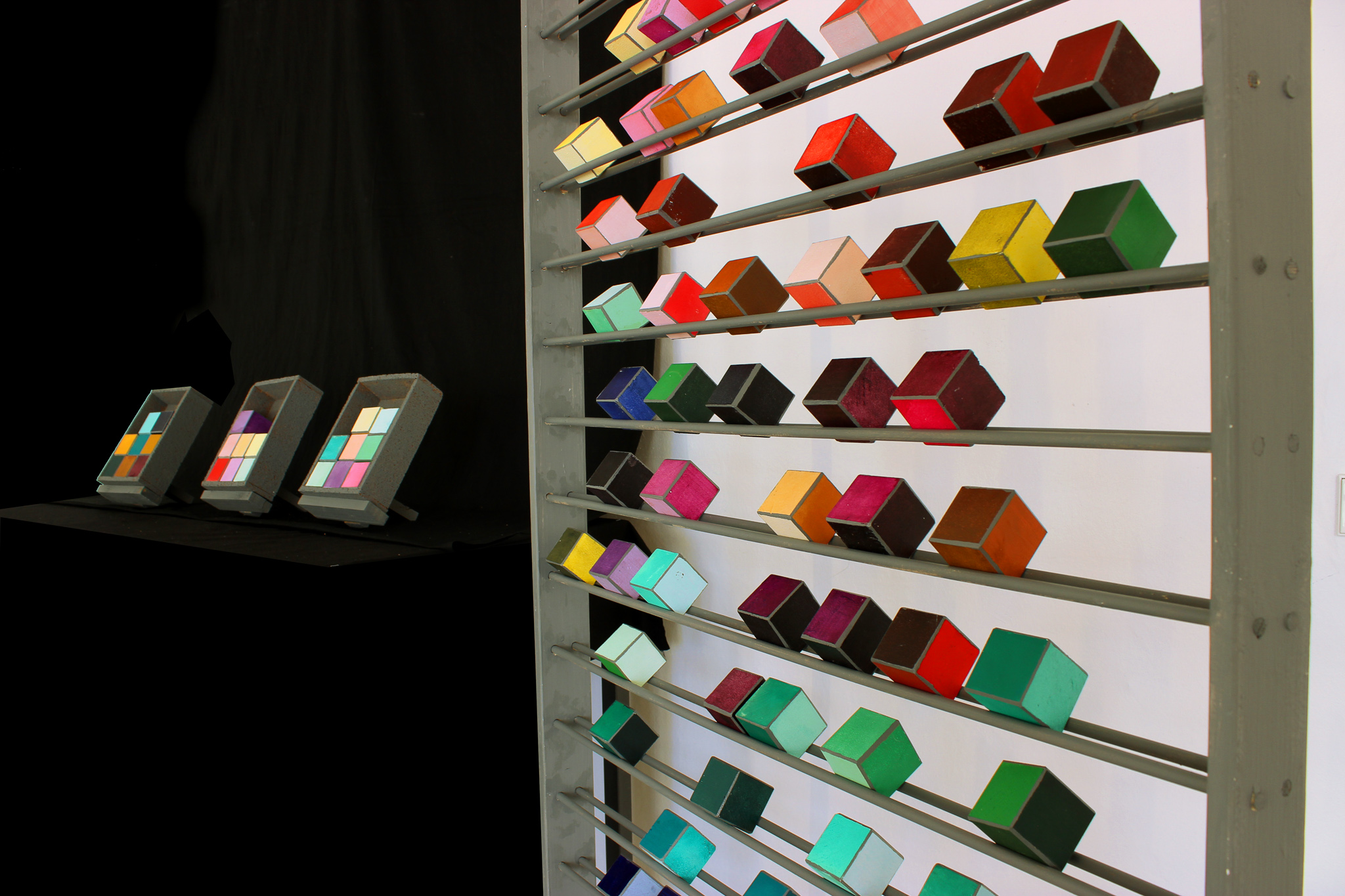 Aus den Primärfarben werden nach vorher bestimmten Mischungsverhältnissen zwölf Farbtöne gemischt. Die Farbtöne werden in jeweils fünf Stufen mit Weiß und Schwarz aufgemischt. Die daraus entstehenden Nuancen werden zum Einfärben der sechs Flächen eines jeweils „hellen“ als auch eines „dunklen“ Würfels verwendet. Von diesen Würfeln werden je drei Stück hergestellt.