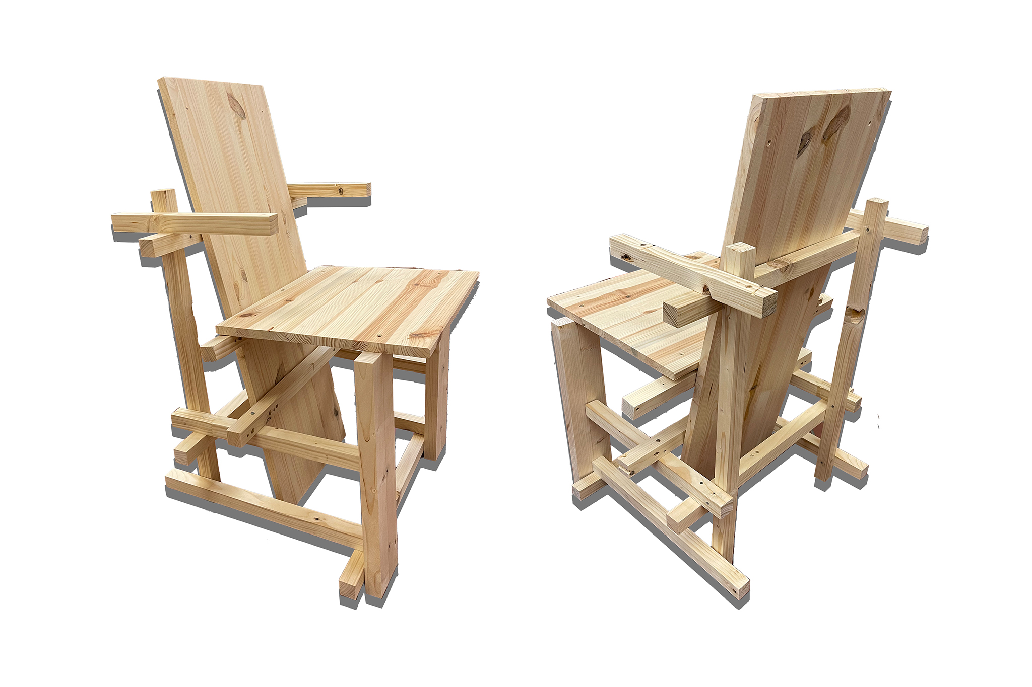 As part of my project, I looked at the color and shape changes of the Red and Blue Chair with the eventual full abstraction from the chair to 2 pallets used by students as a low cost alternative to build a bed frame. But toxic glues contained in the pallets actually make them unsuitable for bed construction. Let pallets be pallets and maybe in the future just use existing furniture for frame construction.