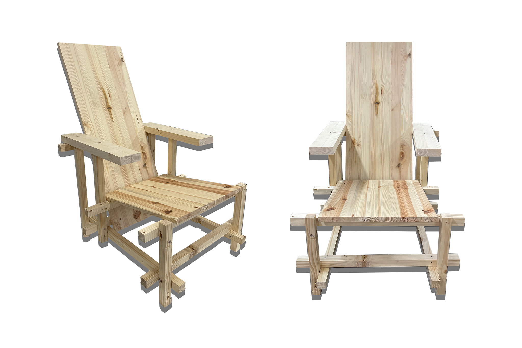 5 slats, 13 of them with a square profile and two with a rectangular one and two wooden boards are the visually perceptible components of the Red and Blue Chair by Gerrit Rietveld. By both the position and the structure, but also the color scheme of its components, this chair is a design classic that cannot be mistaken. But how does the perception of this chair change under various tweaks and abstractions of this chair?