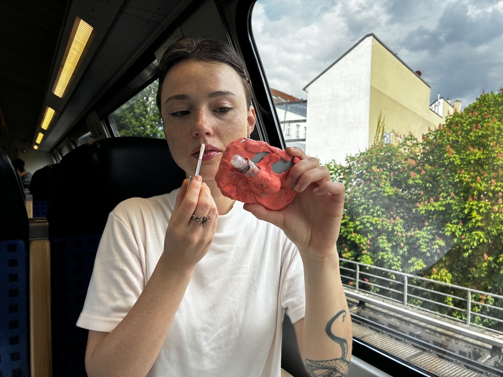 The object I created during the short project “melt & make” is a little pocket mirror which allows you to carry your make up utensils with you. The smartphone like shape makes it blend in seamlessly, while the formcard frame gives it an individualistic touch and makes it an unique object. The possibility to change the attached utensils enables the user to mount all different sizes of equipment and makes it customizable with different shapes and colors.
