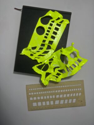 The idea for the melted tactical ruler was inspired by Formcards material properties.I wanted to emphasize its ability for contrast and let it be seen in one object.Meaning I needed an object that reflects a very specific standard and looks very straight and clean, perhaps manufactured.After I was inspired by my own tactical ruler I recreated one out of Formcard.The next step was to let the material do its thing and deform.Now one can not use the tactical ruler as meant, but new shapes and possibilities are unlocked.