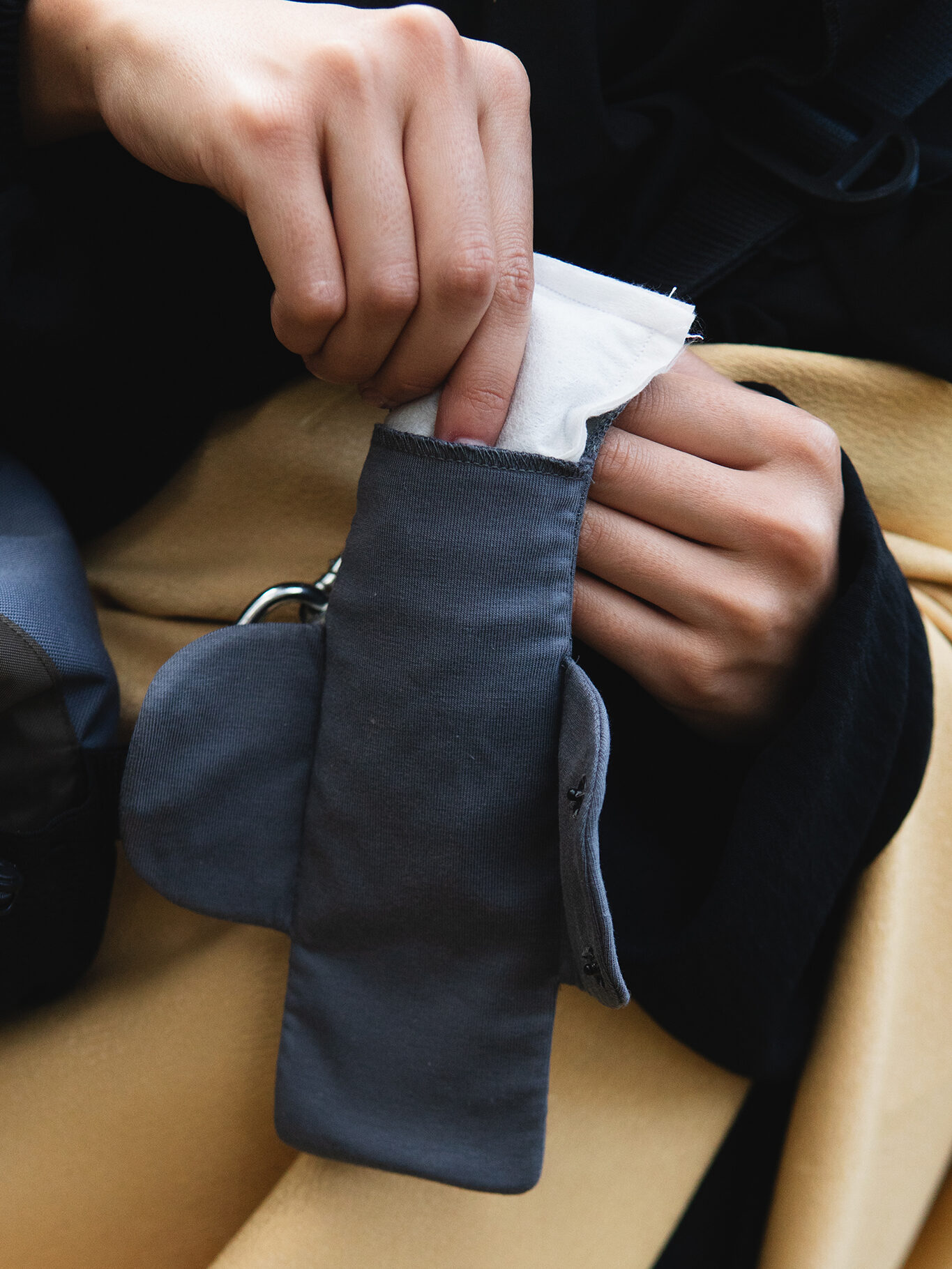 Das Menstruationskit ist ein modular entwickeltes System für menstruierende Personen auf der Flucht. Es vereint eine vielseitig nutzbare Binde, eine speziell konstruierte Reinigungstasche, eine robuste Organisationstasche und eine begleitende App mit Anleitungen, Karten und Aufklärung.