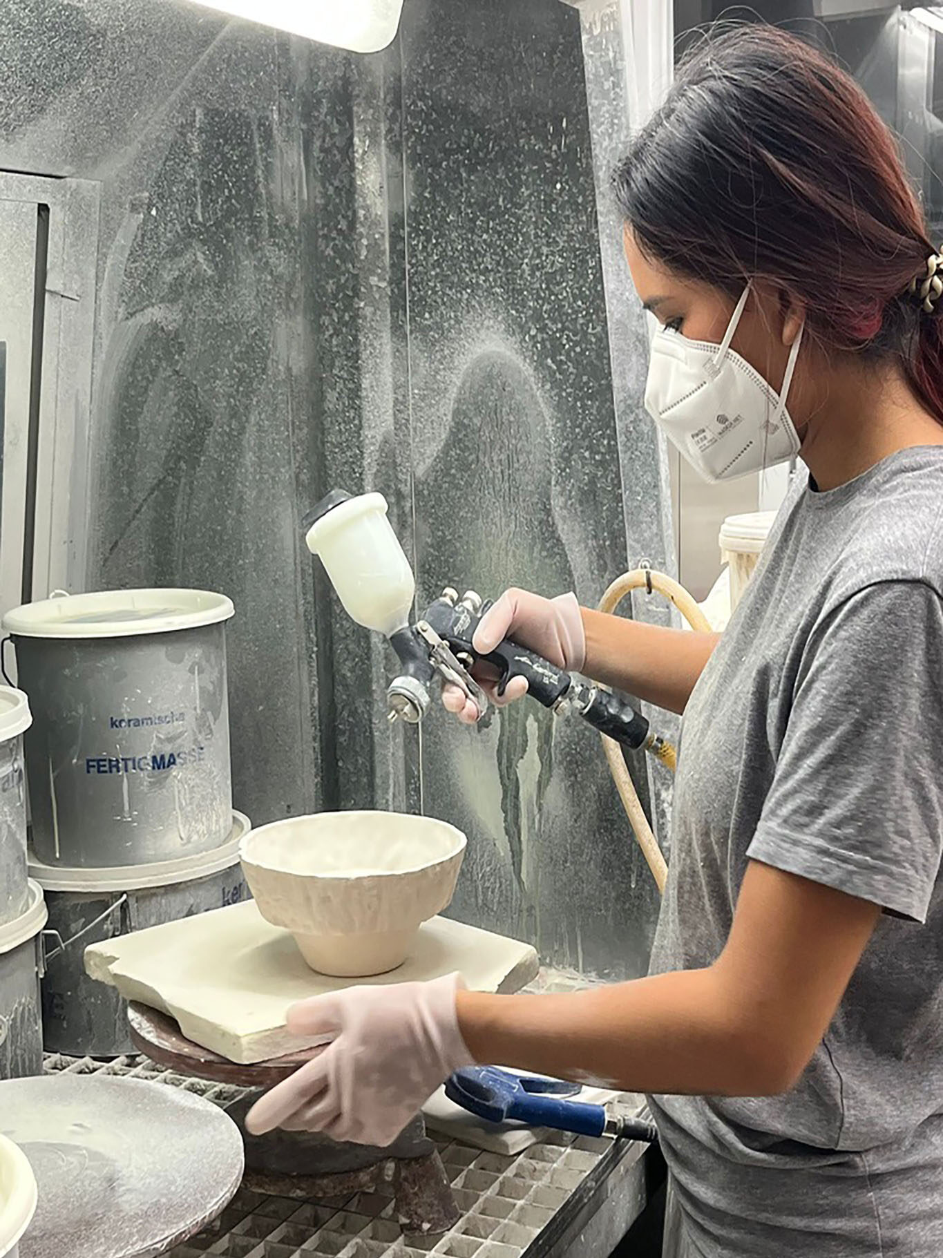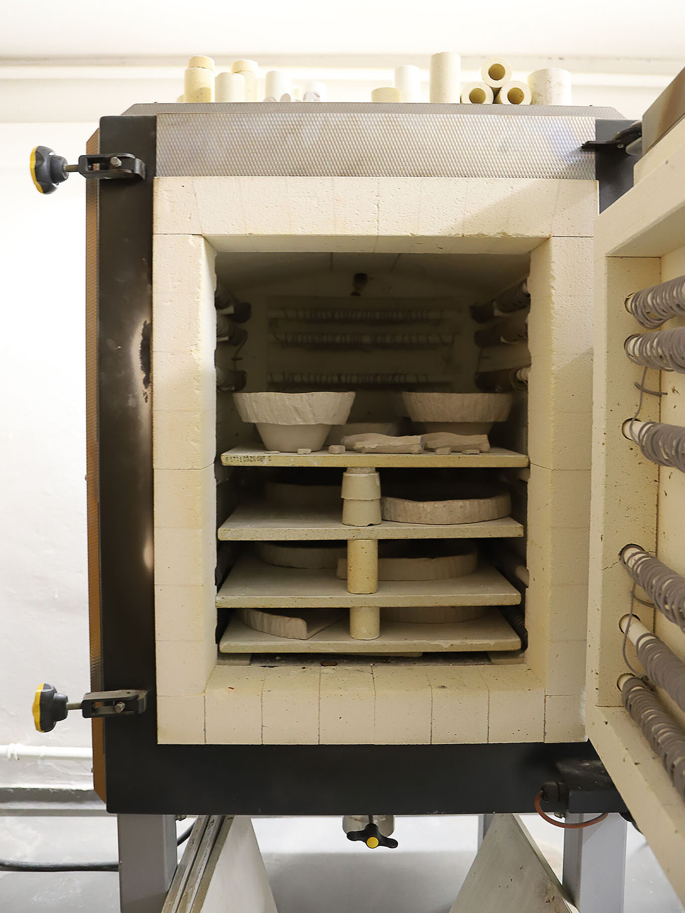 Von Bäumen inspiriertes Geschirr, entworfen, um sich zu verändern. Brüche und Absplitterungen zeigen jahresringähnliche Muster und fügen gezielte Schönheit hinzu.