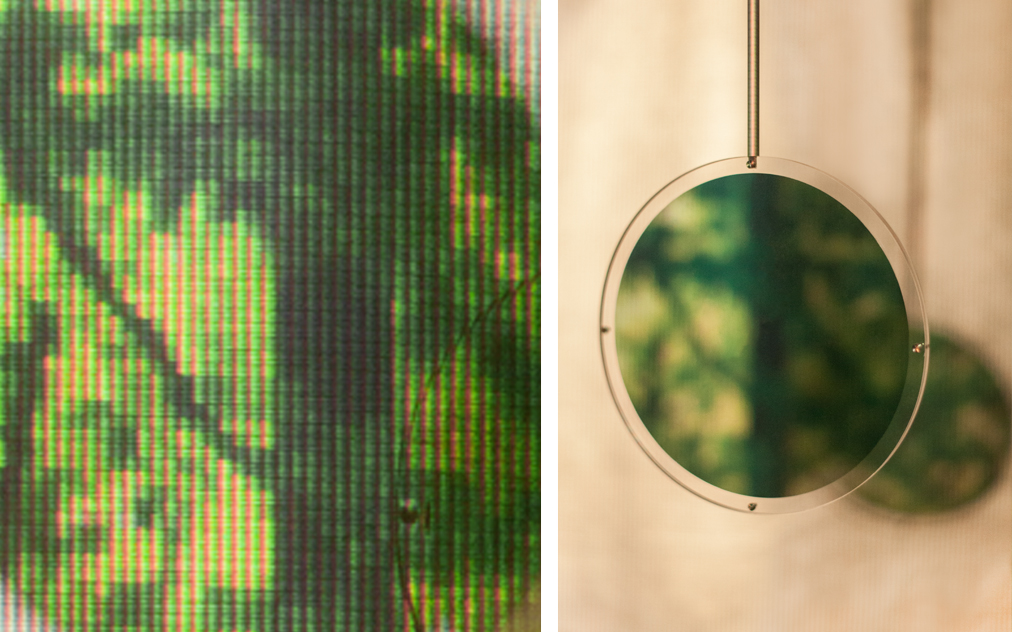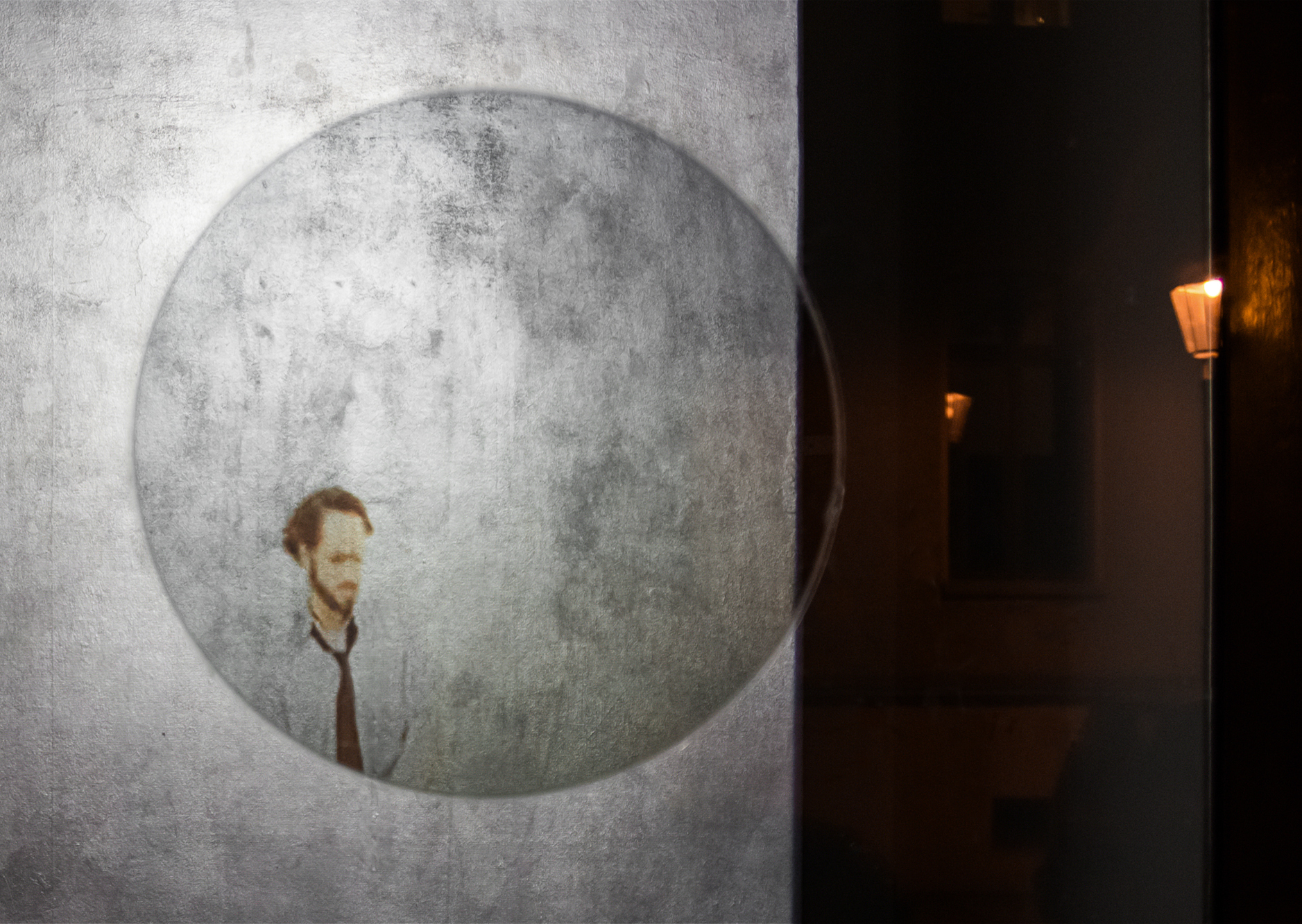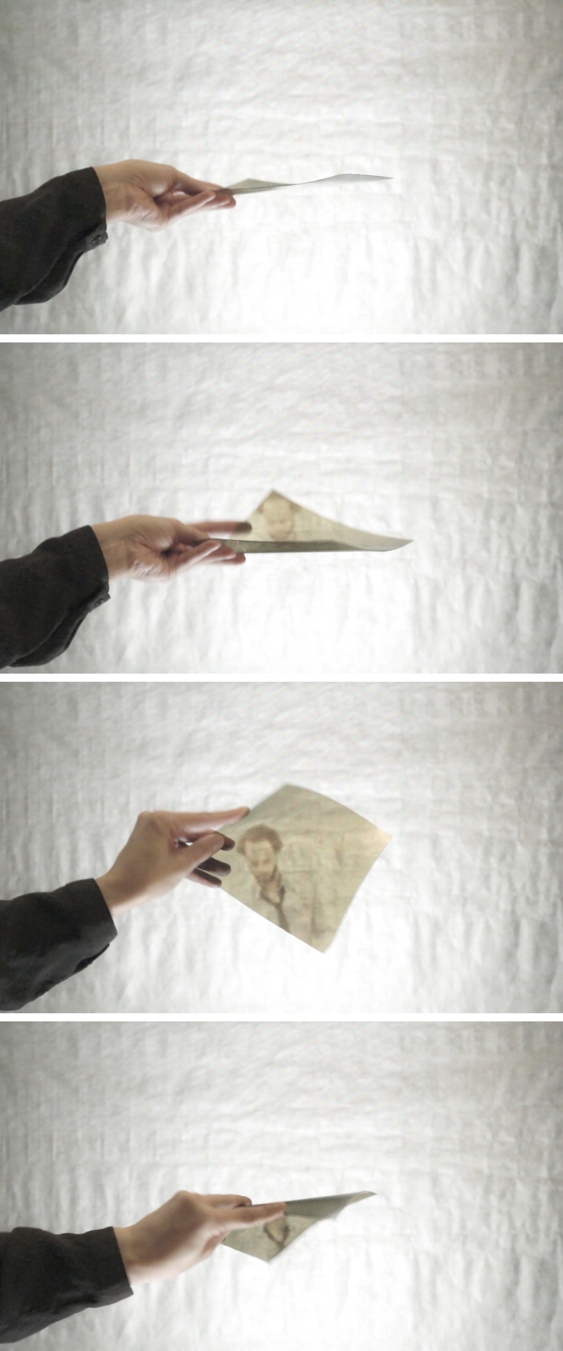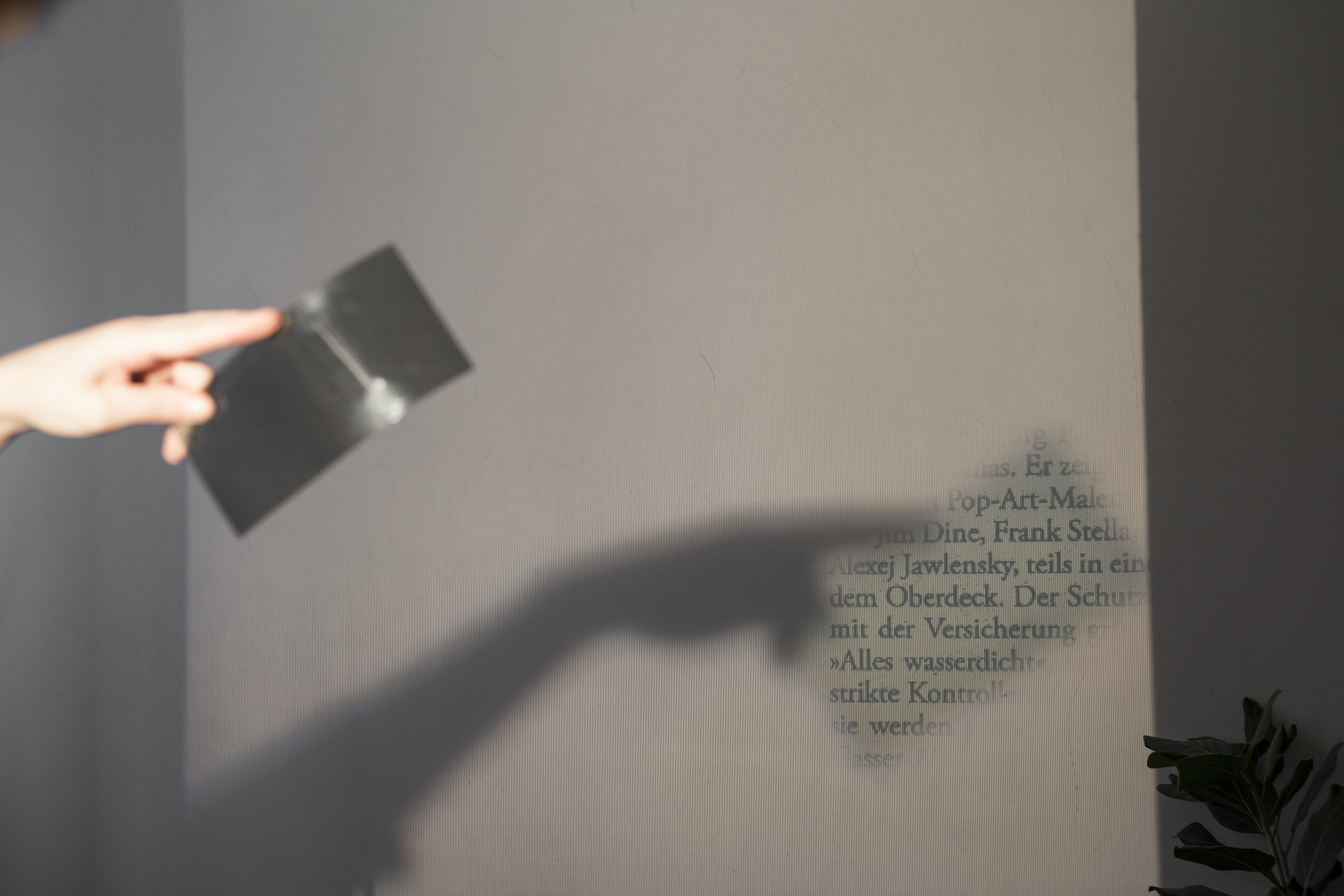 Die verborgene Projektion transportiert in einem gewöhnlichen weißen Lichtstrahl Informationen, Bilder, Bewegungen, die für das menschliche Auge unsichtbar sind. Das weiße Licht kann in Wahrheit schwarz sein, wir können diese Wirklichkeit aber nicht erfassen. Nur mit Hilfe eines kleinen Stücks Folie mit speziellen optischen Eigenschaften können wir die hinzugefügte Wirklichkeitsebene aufnehmen, ein Akt, der uns unsere eigene Wahrnehmung wahrnehmen lässt.
