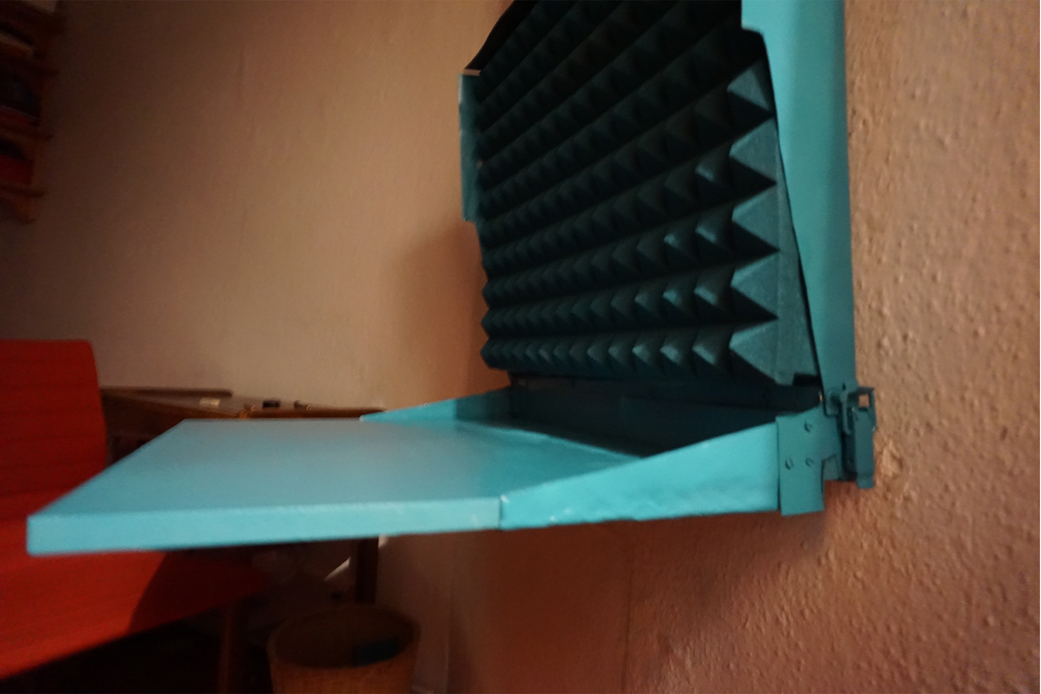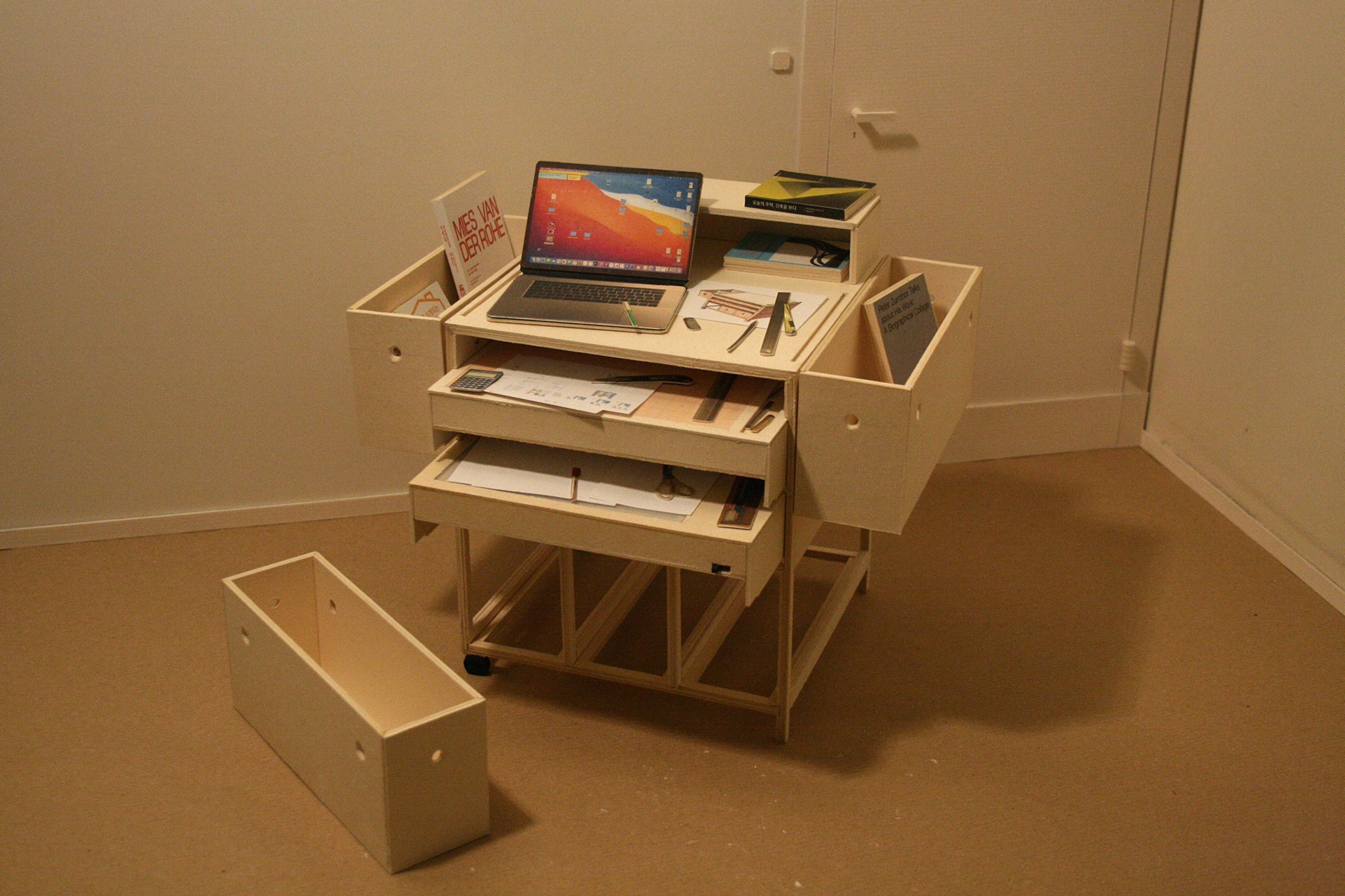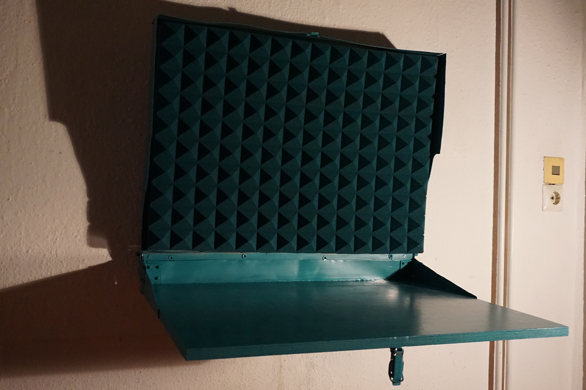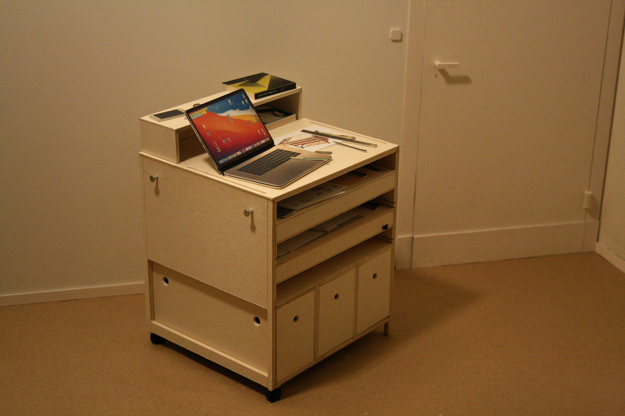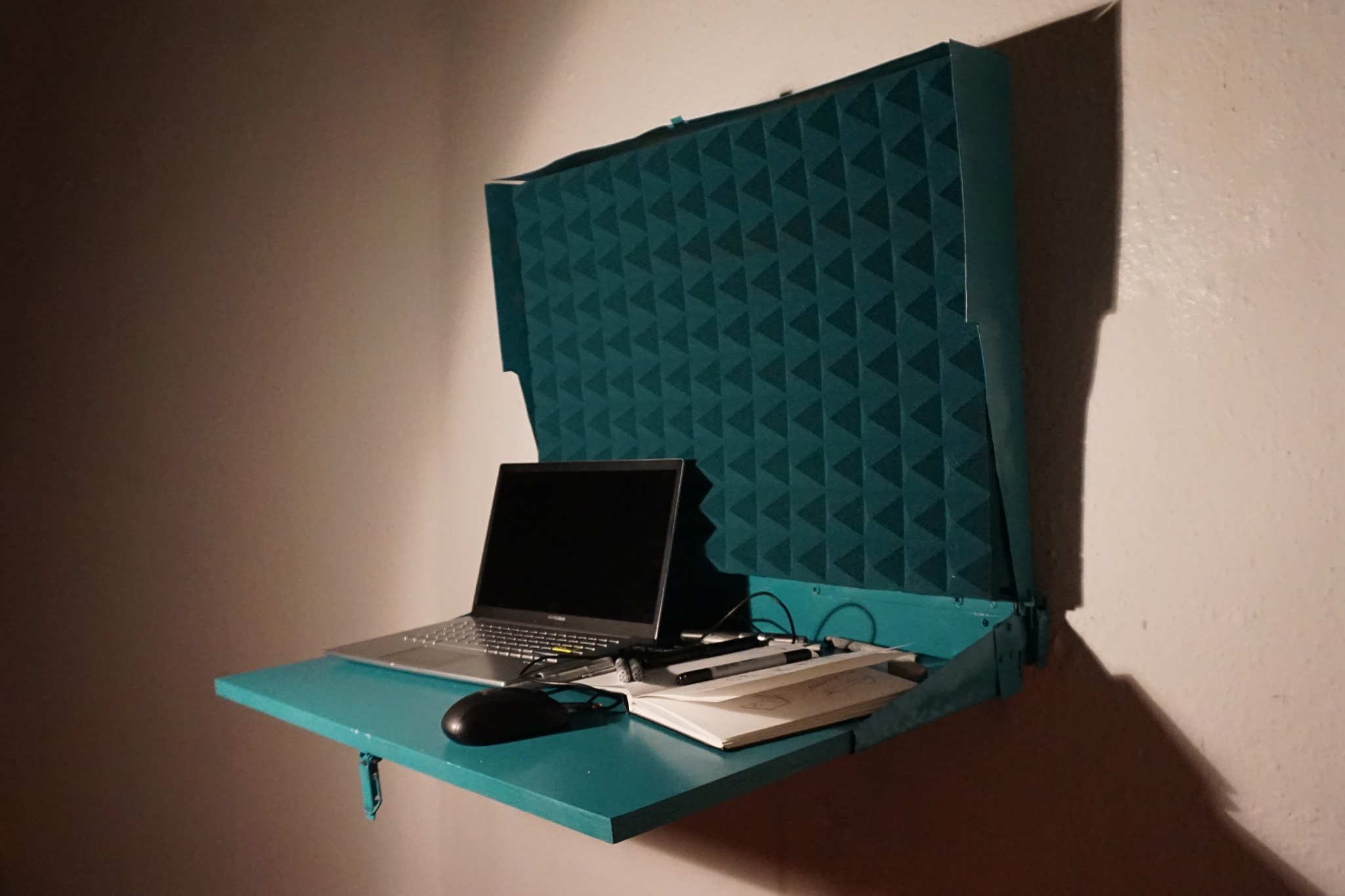 The closing and folding simulates a moment of ending a days Work. It does not only hide away your work so you dont have to walk past it on your way to get snacks for your evening with some streaming service, but it is also a space saving solution for small apartements. A cleaning up of your desk also is not necessary and you can start your day with the exact set up you ended your work yesterday.