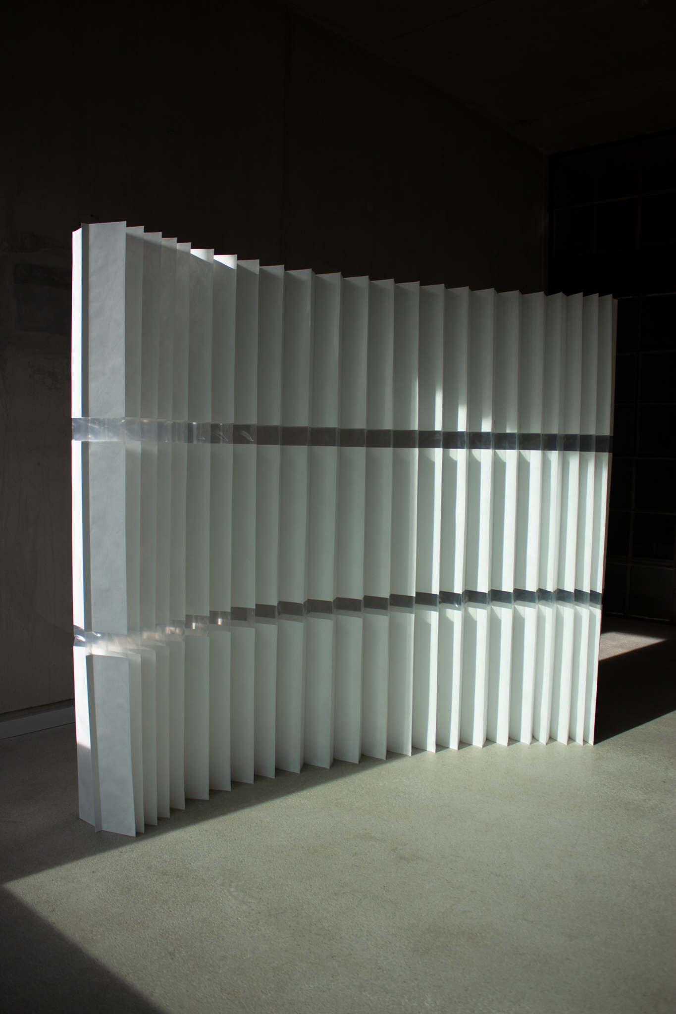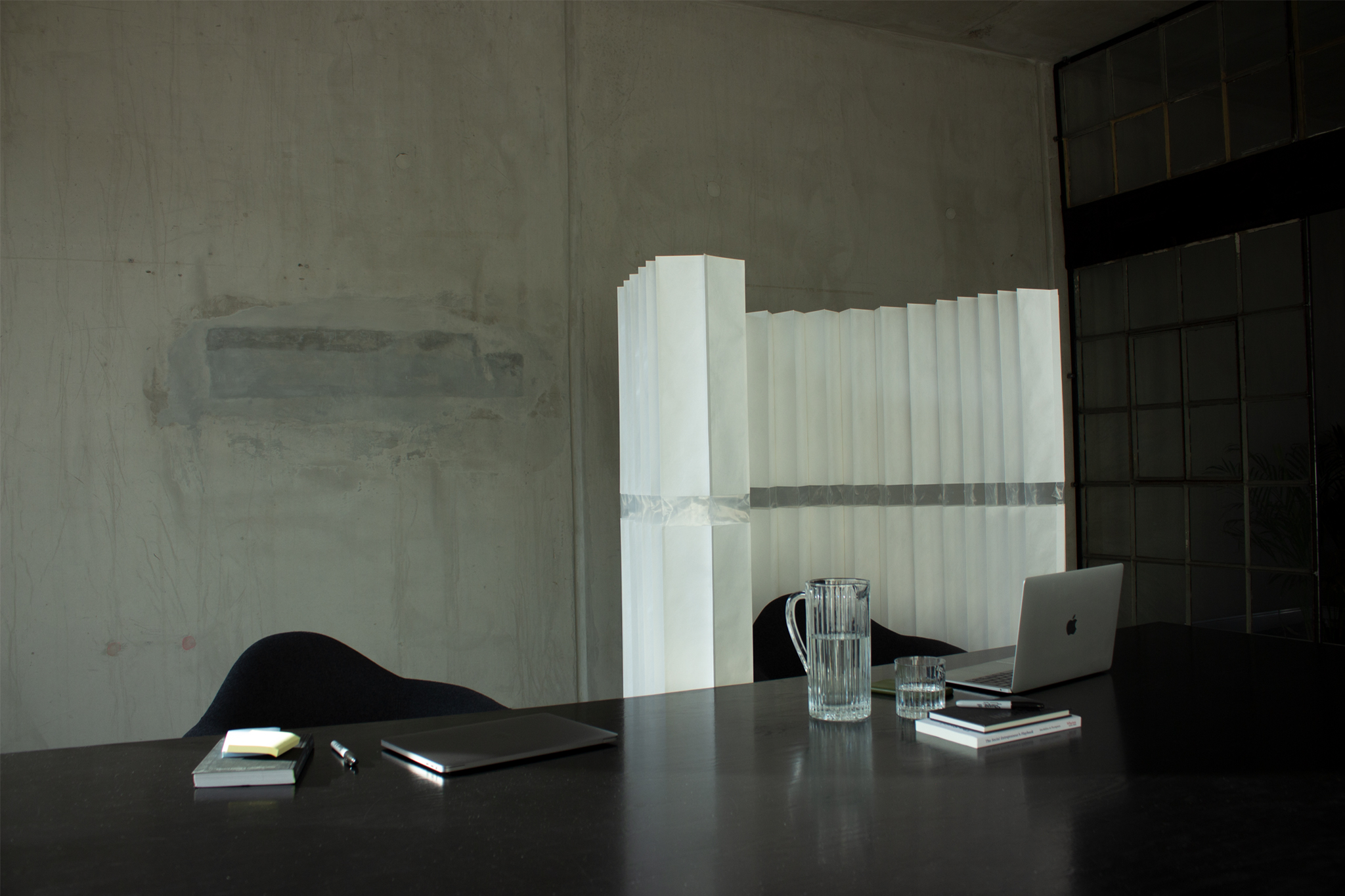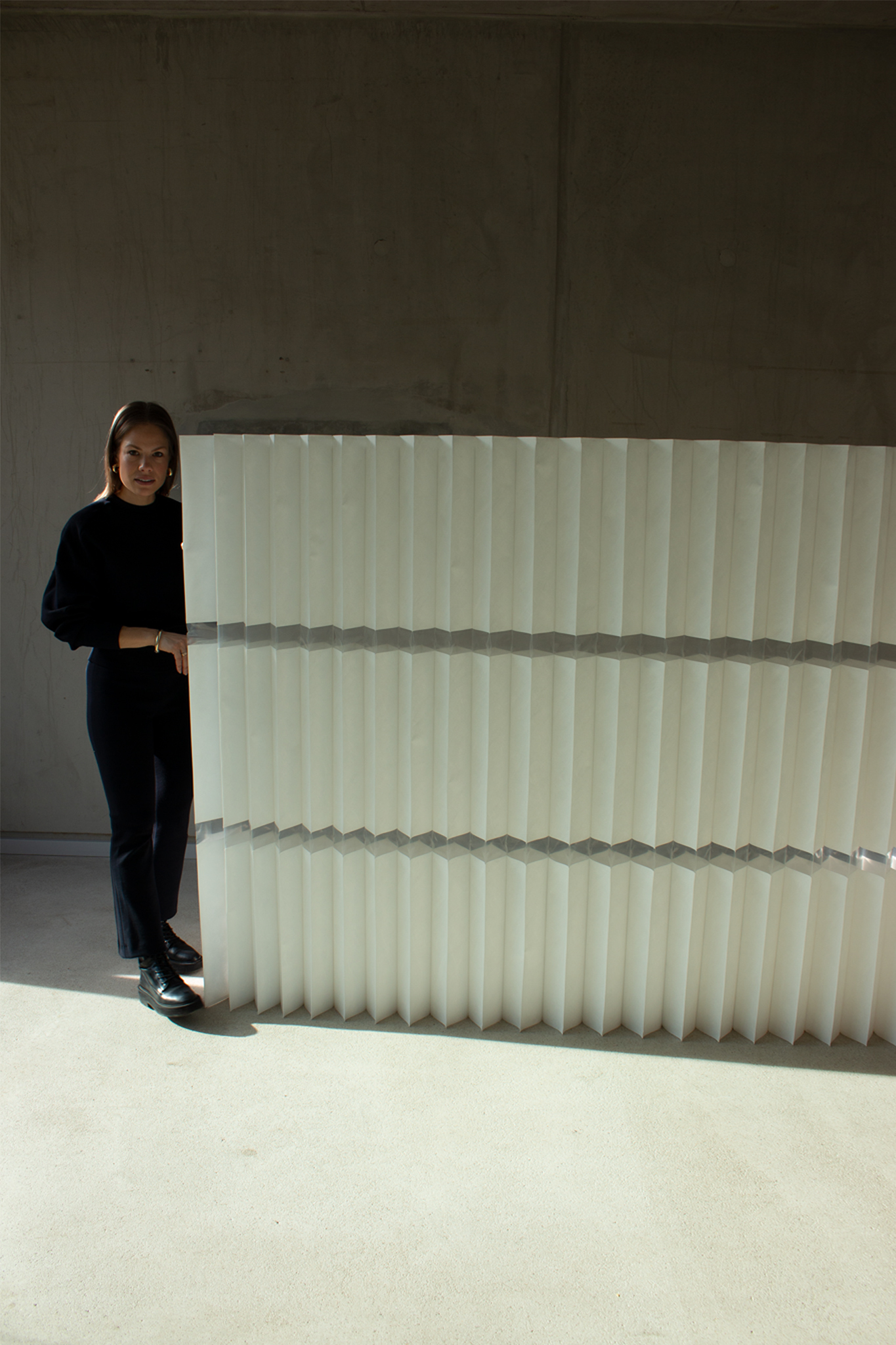 FOLD is a light and flexible wall that creates space for an undisturbed and focus-friendly workspace at home or in the office. Made of strong Tyvek, FOLD is easy to unfold. Transparent windows act as folding edges, opening the view to the outside and providing natural light. The honeycomb structure allows for flexible variation in length and provides a neutral background for video conferences. Light weight and a compact pack size make FOLD a practical companion in a new, fluid working environment.