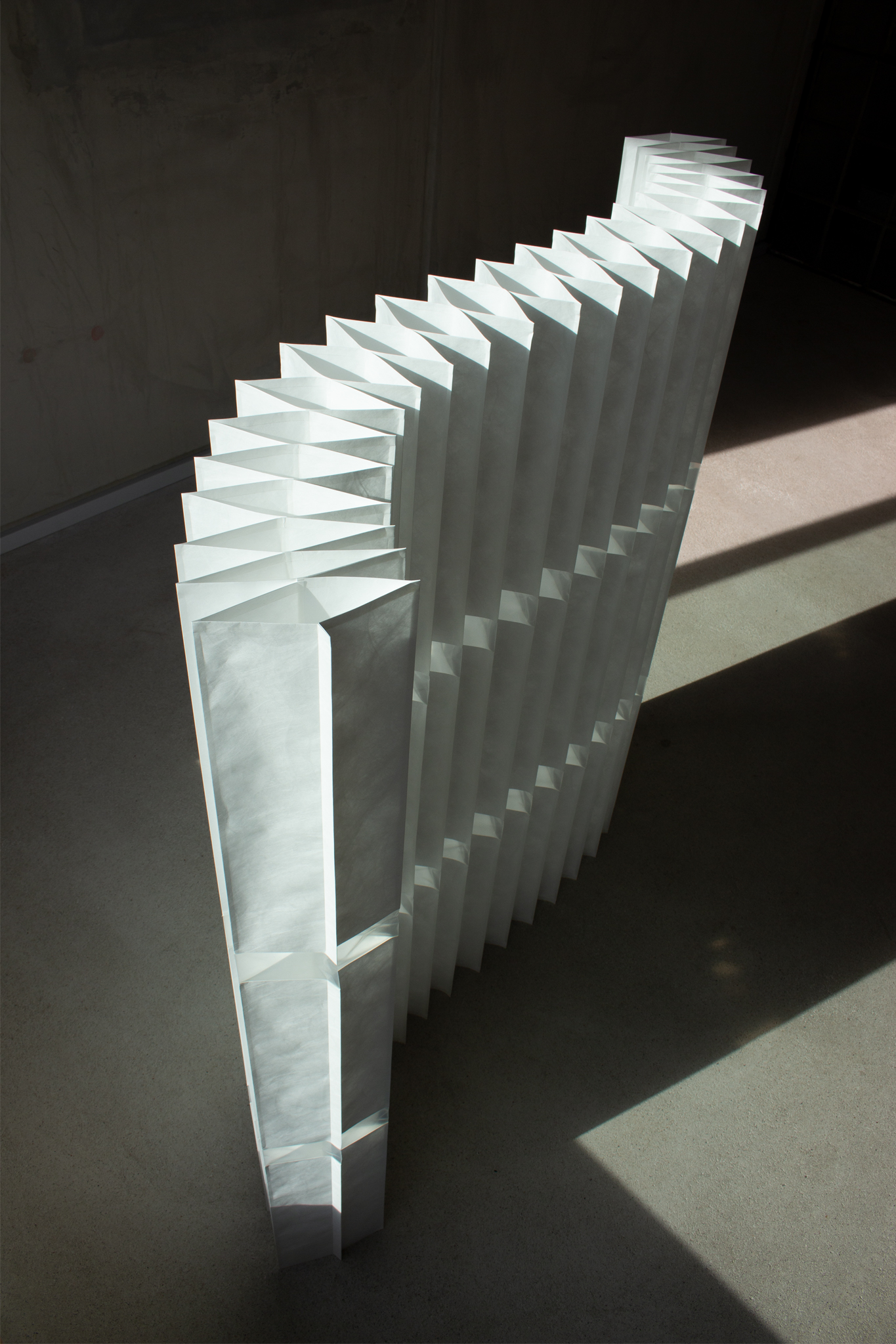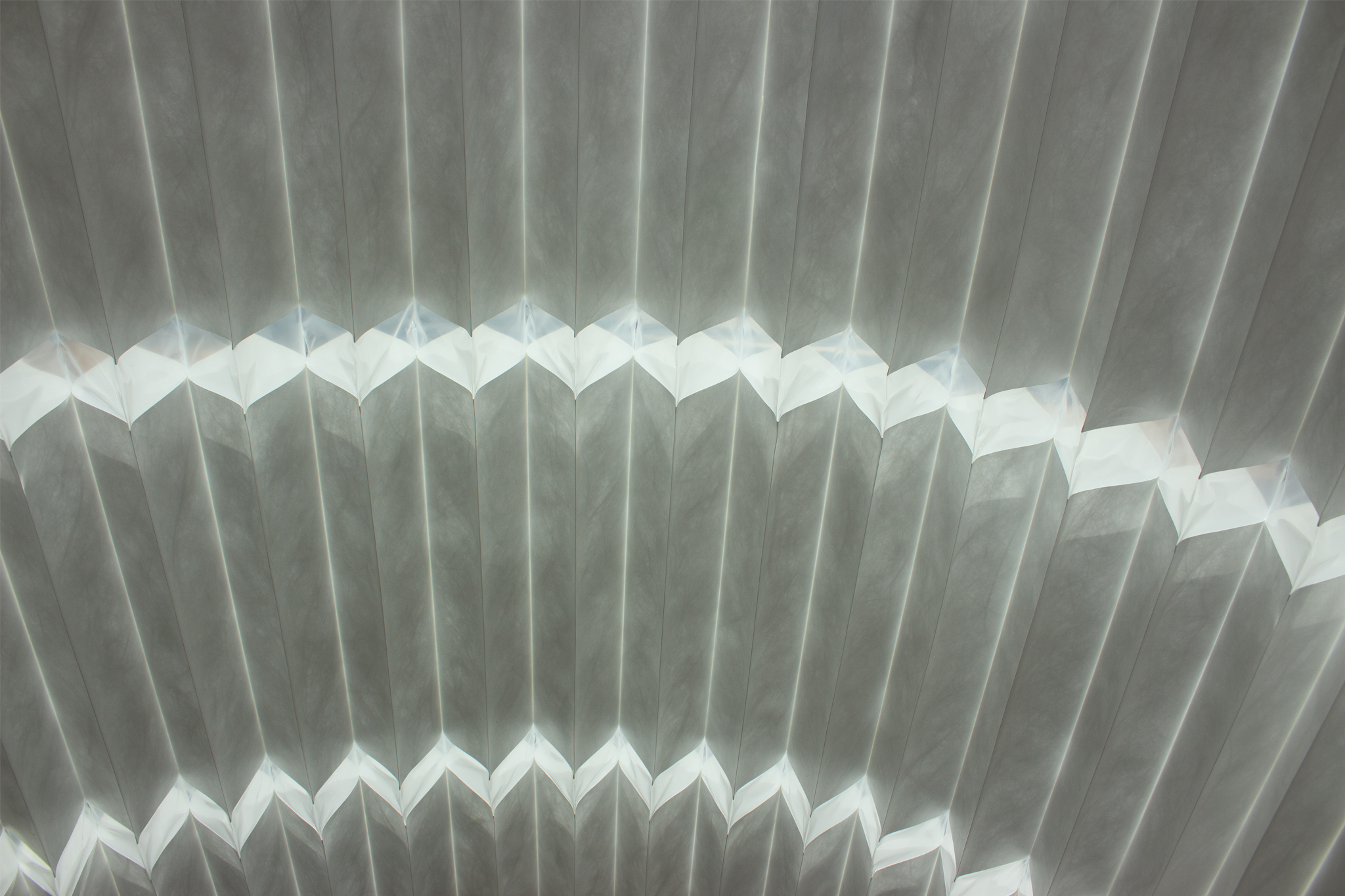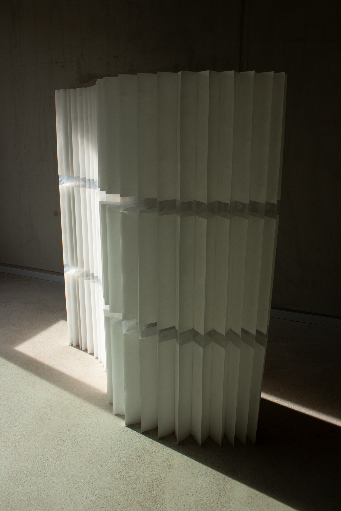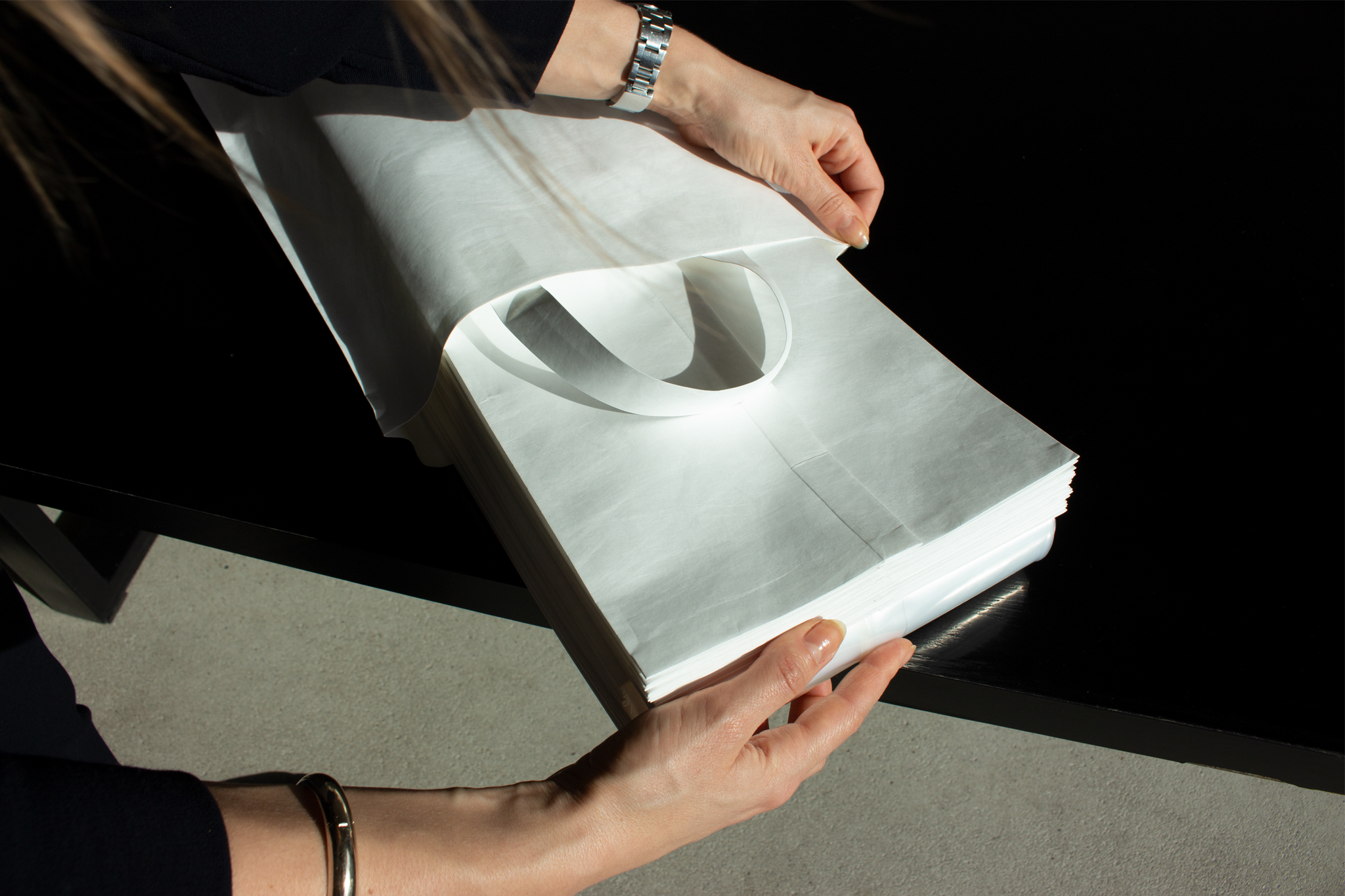 FOLD is a light and flexible wall that creates space for an undisturbed and focus-friendly workspace at home or in the office. Made of strong Tyvek, FOLD is easy to unfold. Transparent windows act as folding edges, opening the view to the outside and providing natural light. The honeycomb structure allows for flexible variation in length and provides a neutral background for video conferences. Light weight and a compact pack size make FOLD a practical companion in a new, fluid working environment.