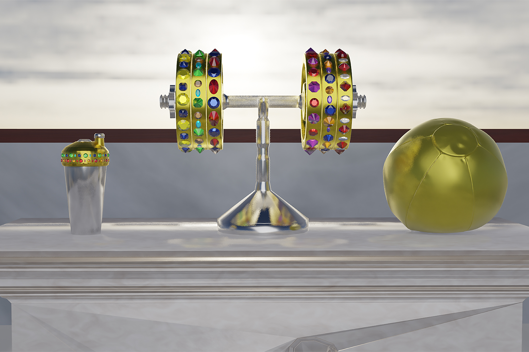 In dem animierten Film werden modifizierte Fitnessgadgets in Szene gesetzt. Der Blick der Zuschauer:innen wird durch einen kirchenähnlichen Säulengang aus Marmor geleitet. An seinem Ende befindet sich ein Altar, auf dem drei transformierte Objekte stehen; eine goldene, juwelenbesetzte Hantel auf einem Ständer, ein goldener Medizinball und ein goldener, juwelenbesetzter Proteinshaker.
