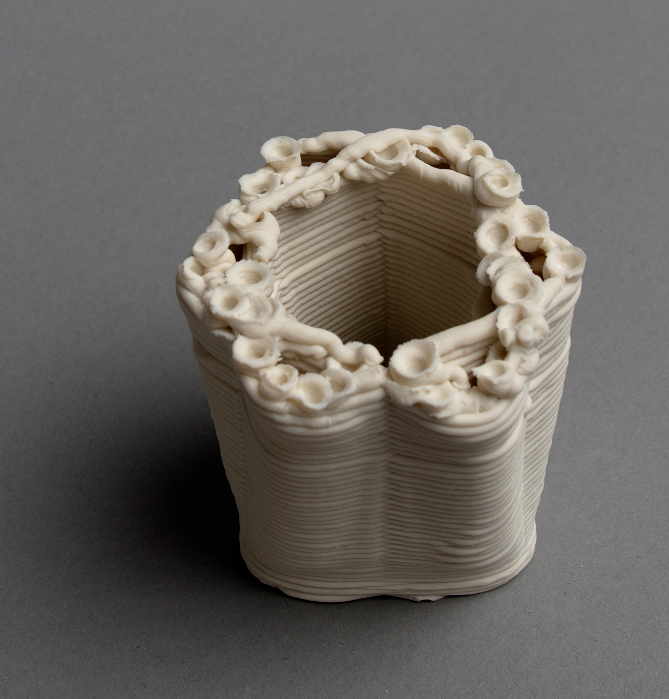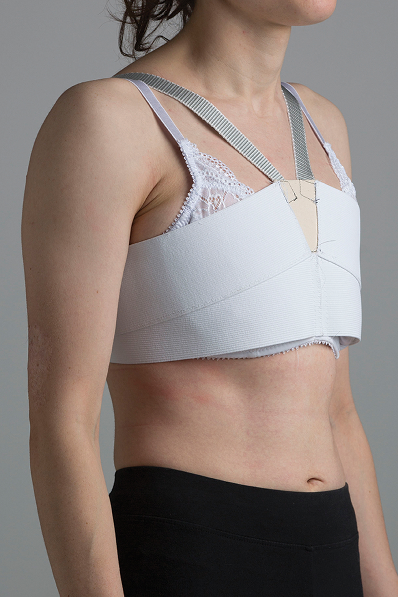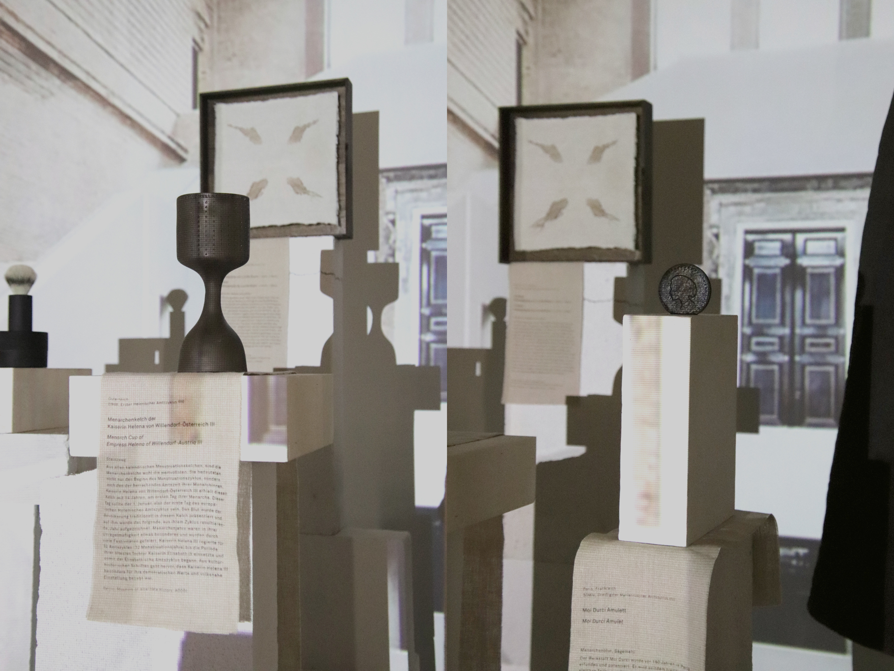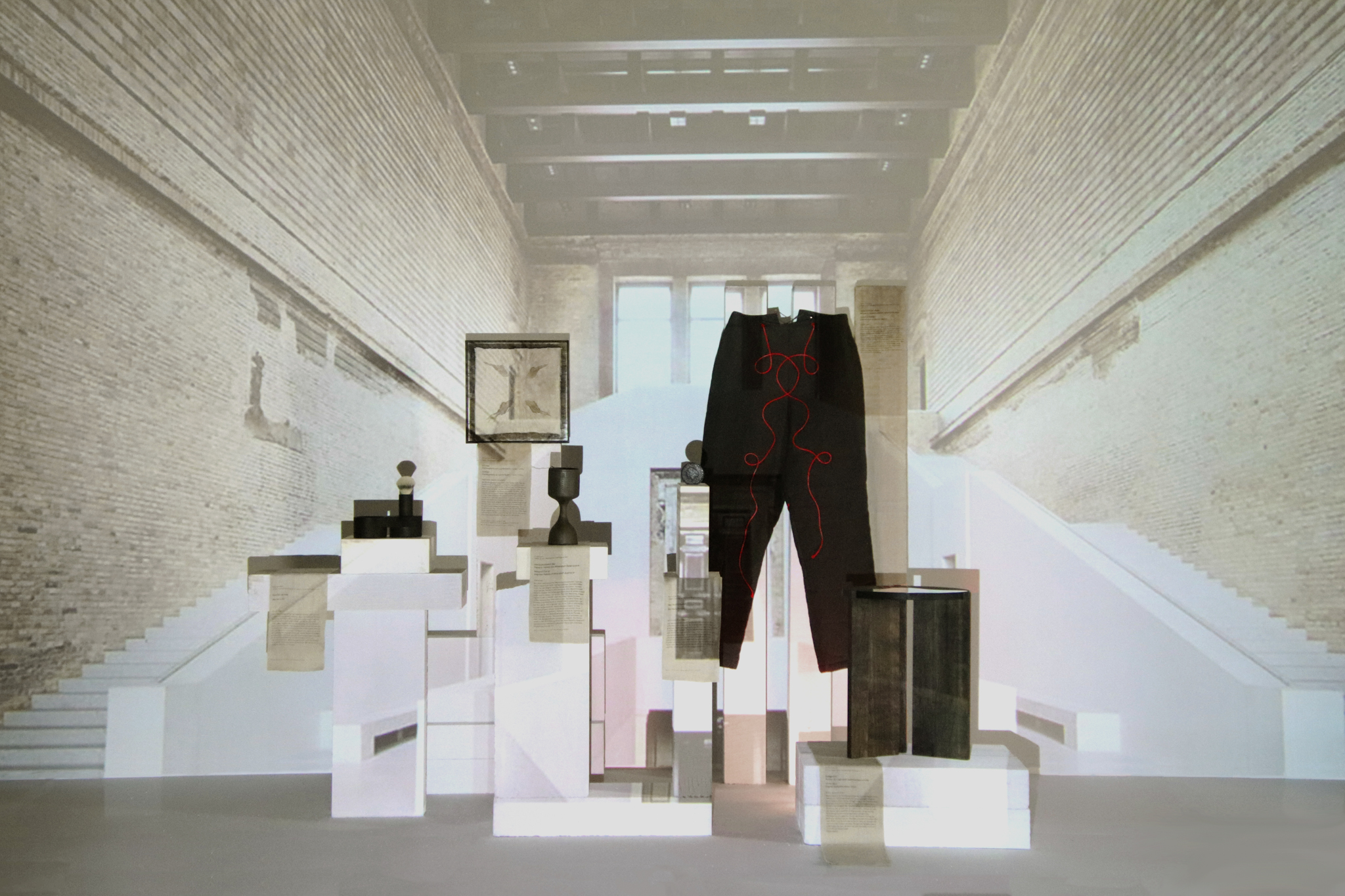 The simplest form of concealment can be done by deforming the body with the help of clothes. Among these is the contour-dissolving hoodie. In contrast, the corset puts the focus on sexualized limbs, additi-vely is straining the body and leaves drawings in the name of restrictive gender roles. The work deals with the process of differentiation and becoming aware of one‘s own gender identity and the accompany-ing dysphoric relationship to the body. The original points of view of the corset are intentionally shifted to other points.