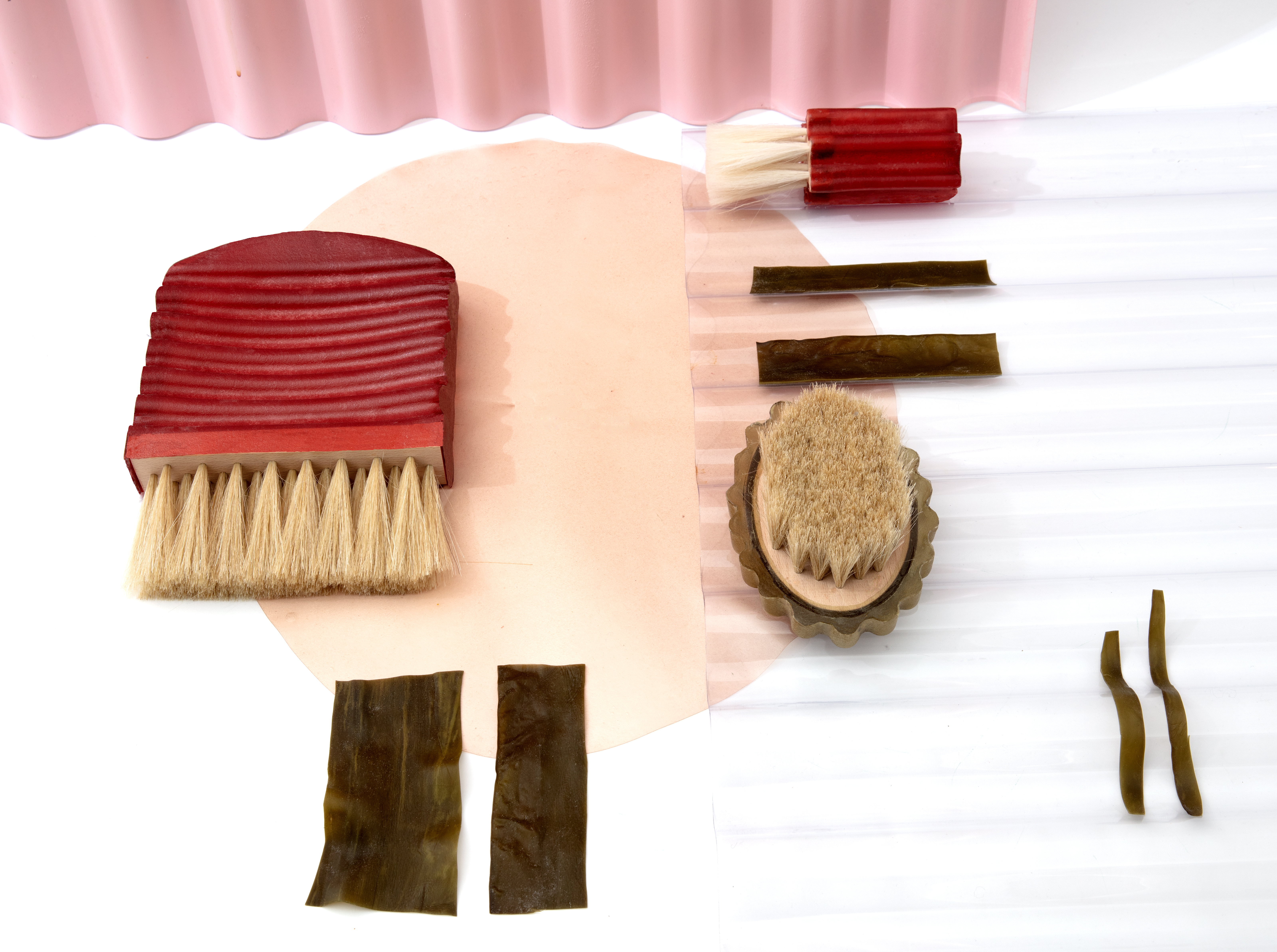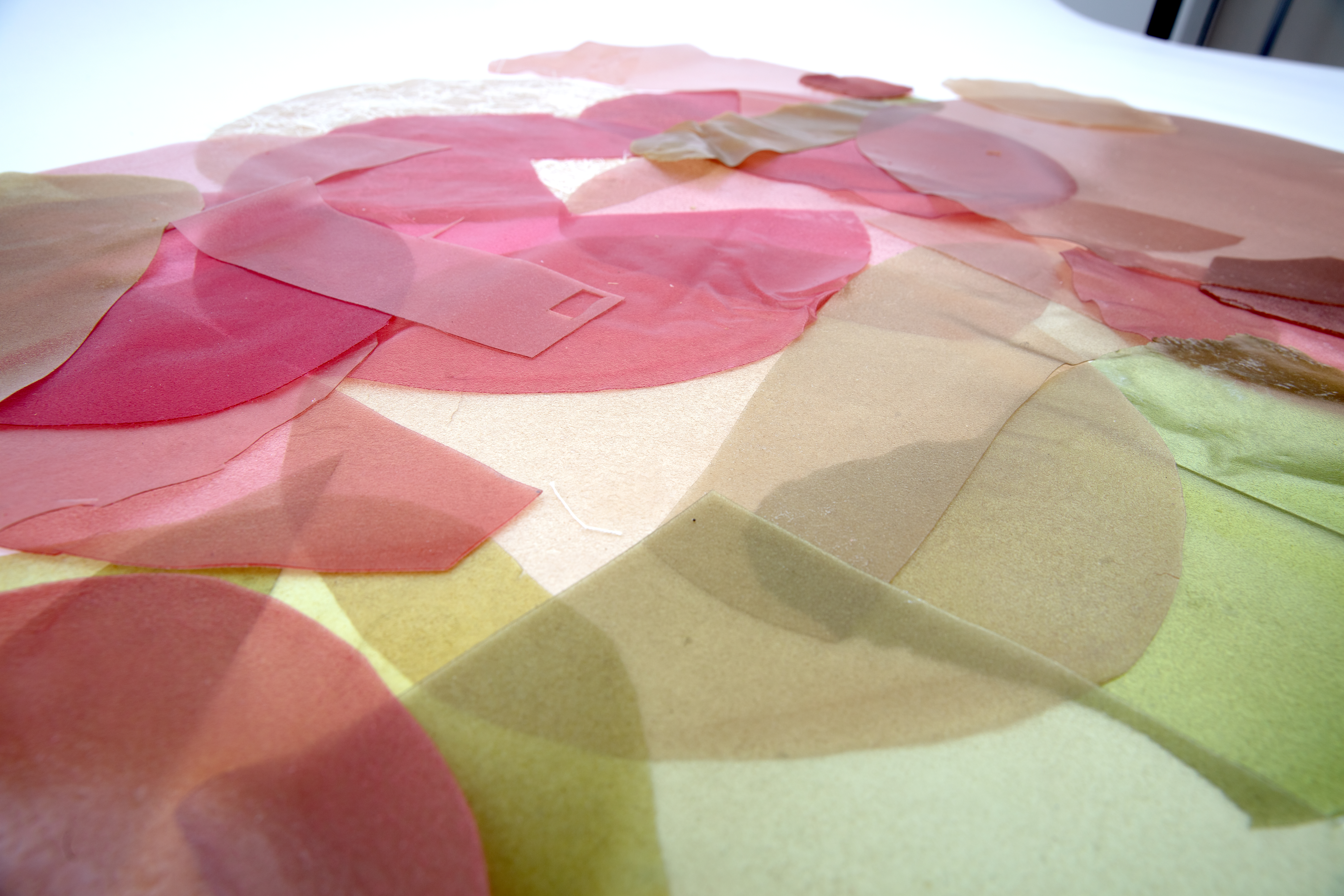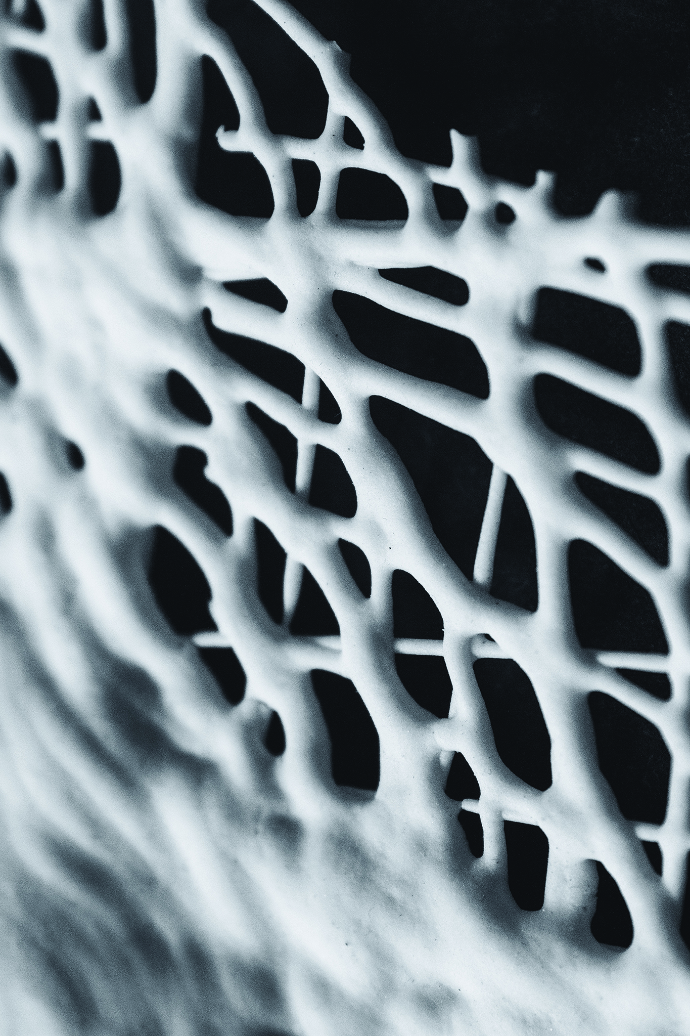 The skin offers us protection and is the visible outer shell of living beings. As well as the hoodie as a second layer becomes a very personal, own part of our body, of our existence. Safe, protected, as if fitted to one’s own body, the garment exists on and connected to the human being. The play between the natural and an outer shell, becomes one.My project deals with the human surface in its biological form, designed by self-produced bioplastics that, like us, will eventually decay. Inspired by nature, water and waves, the garment wraps asymmetrically and organically around the body. It is reminiscent of a mystical transformation of the human being in the hoodie. This installation represents the excursion of bio-based materials, which are our future, with the abstract representation of the human form.