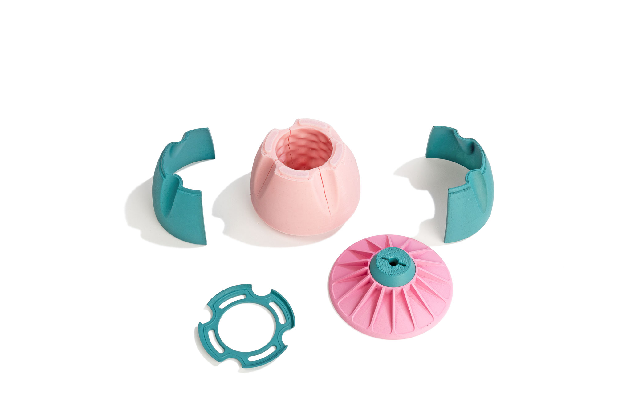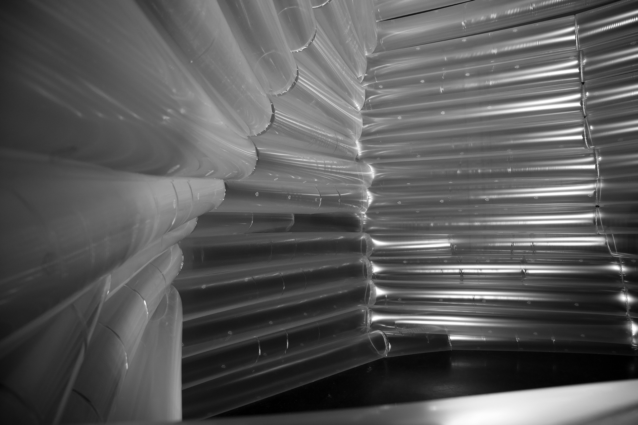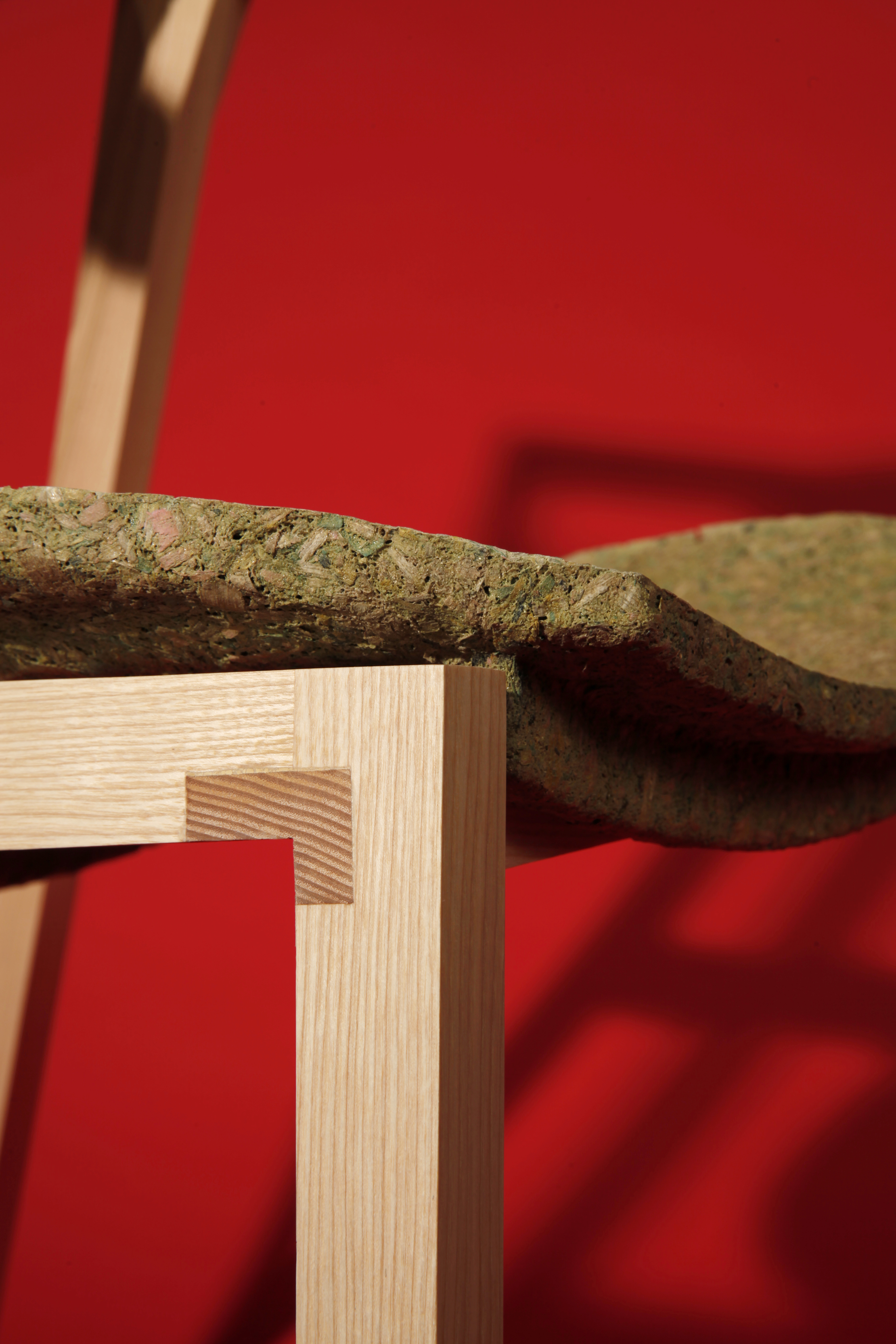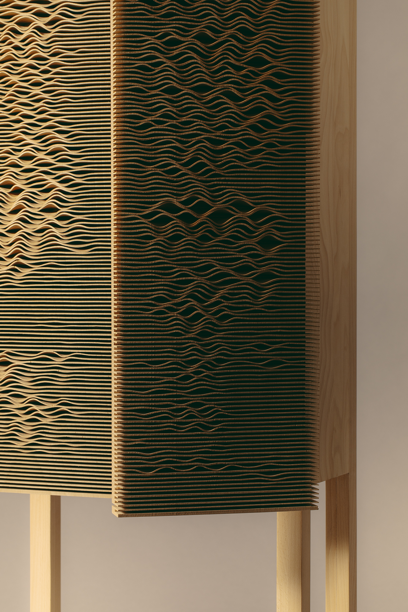 The skin offers us protection and is the visible outer shell of living beings. As well as the hoodie as a second layer becomes a very personal, own part of our body, of our existence. Safe, protected, as if fitted to one’s own body, the garment exists on and connected to the human being. The play between the natural and an outer shell, becomes one.My project deals with the human surface in its biological form, designed by self-produced bioplastics that, like us, will eventually decay. Inspired by nature, water and waves, the garment wraps asymmetrically and organically around the body. It is reminiscent of a mystical transformation of the human being in the hoodie. This installation represents the excursion of bio-based materials, which are our future, with the abstract representation of the human form.