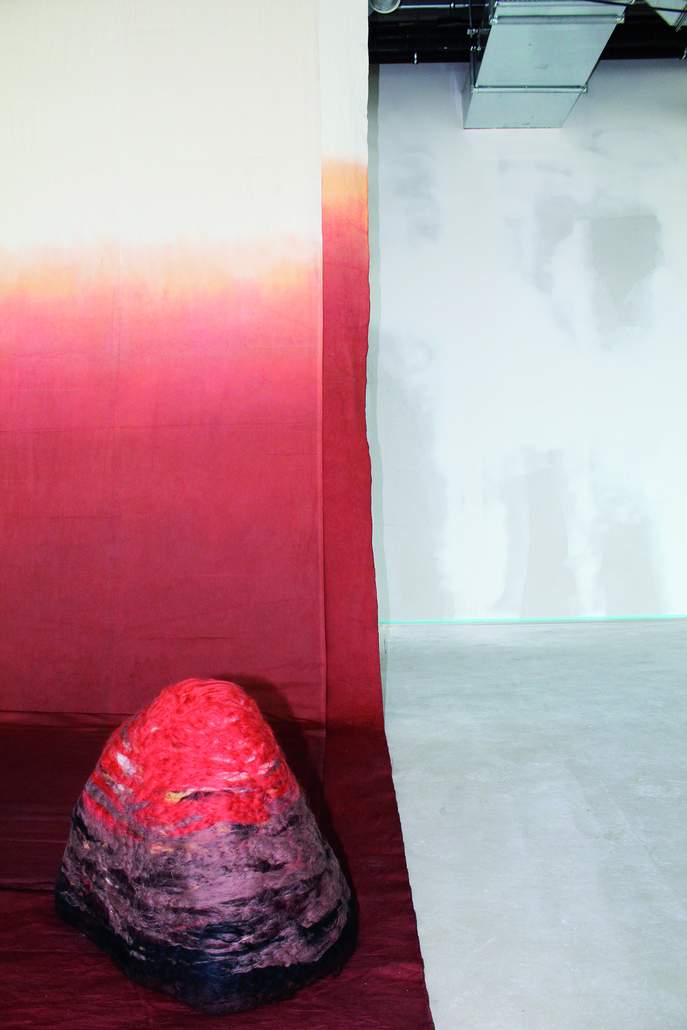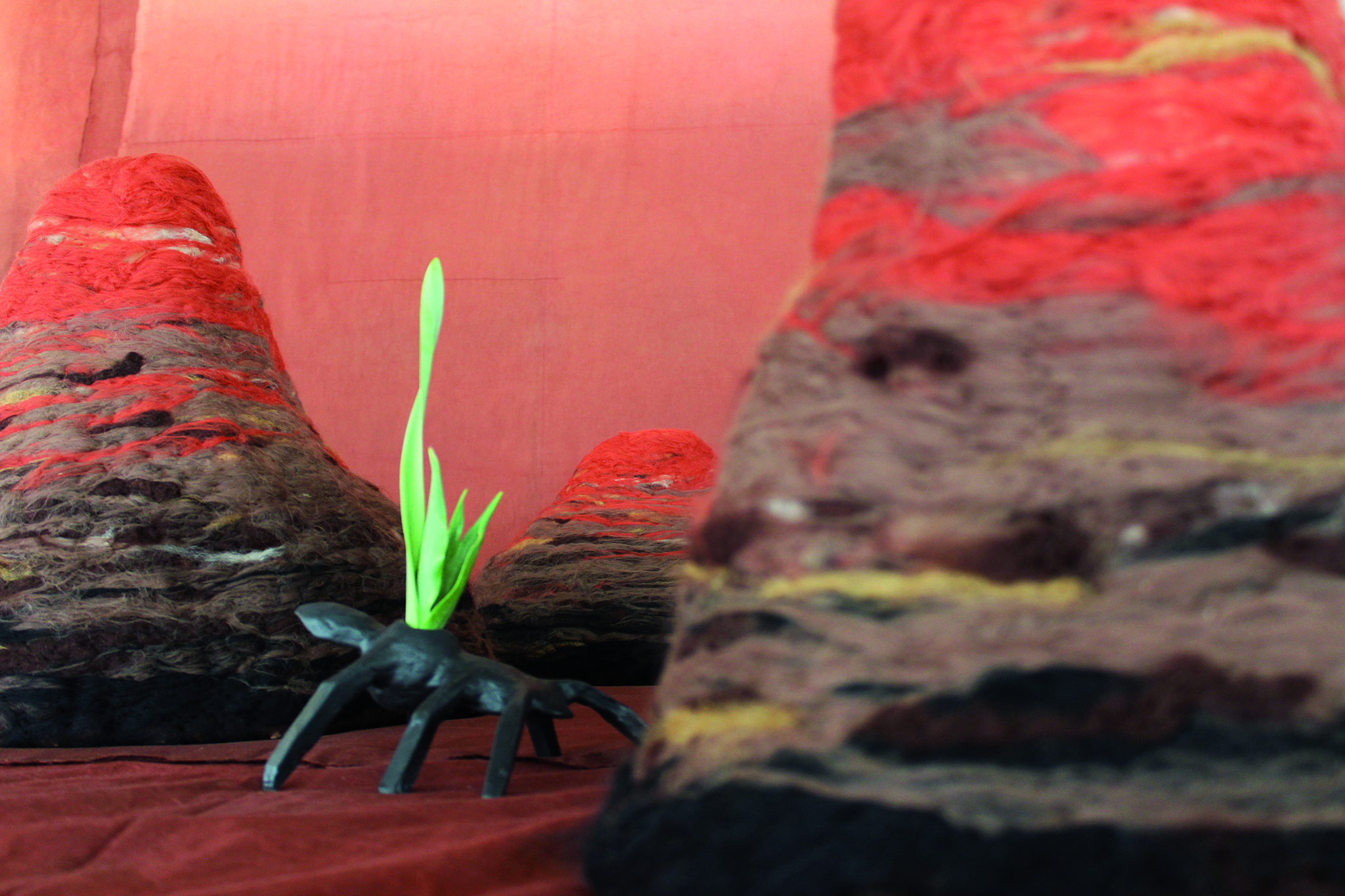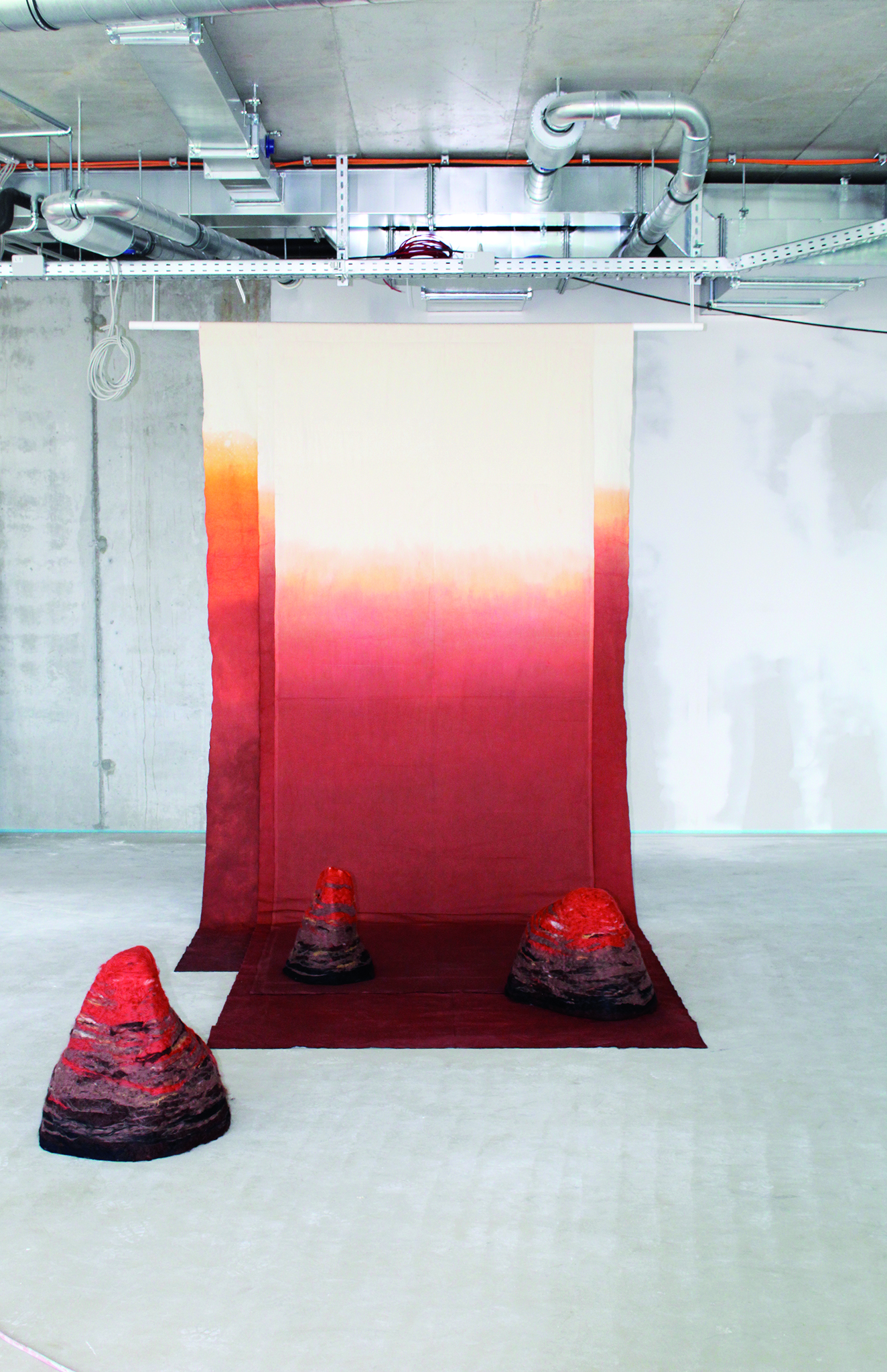 For my project I was inspired by the beauty of nature in its primal state. I wanted to focus on contrasting accents such as solid and liquid, cold and burning hot, dark and light, life in motion versus stillness, and movement as something deadly yet beautiful. In my video I wanted to emphasize these contradictory elements to show the flow of life and its integration with nature, as well as the melancholy of motionlessness. The volcano was the main inspiration for my hoodie, which was the mood board not only for the colors but also for the textures I chose.The volcano rewards with life through its stillness and punishes with death through its movement – for me this reflects the embodiment of beauty.Through the smocking technique, the pleats and wavy lines, I wanted to translate the organic texture of the stone into the garment, and the knitted red rough lines hidden between the pleats and revealed at the top represent burning, flowing lava erupting in the form of the hood over the hoodie.