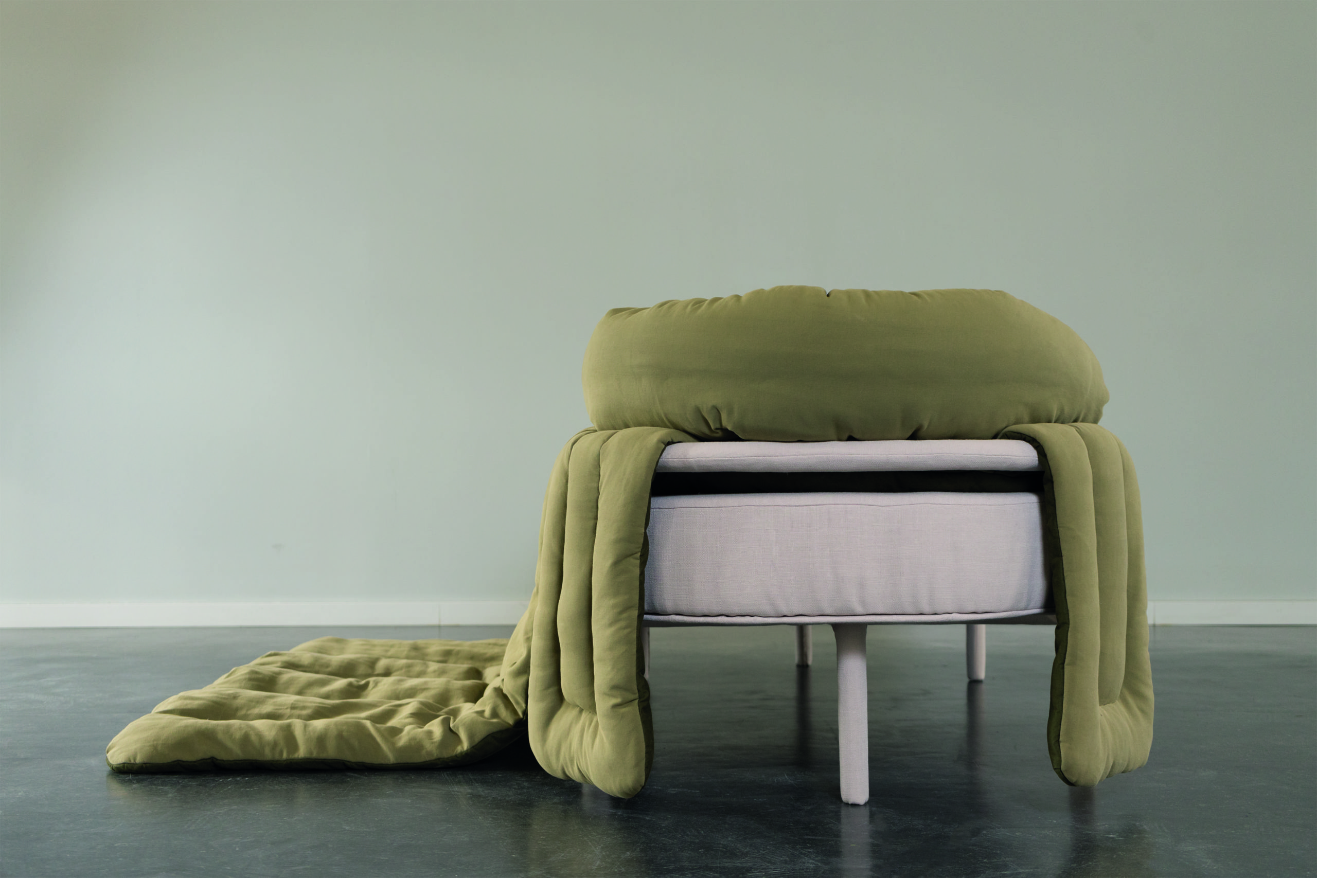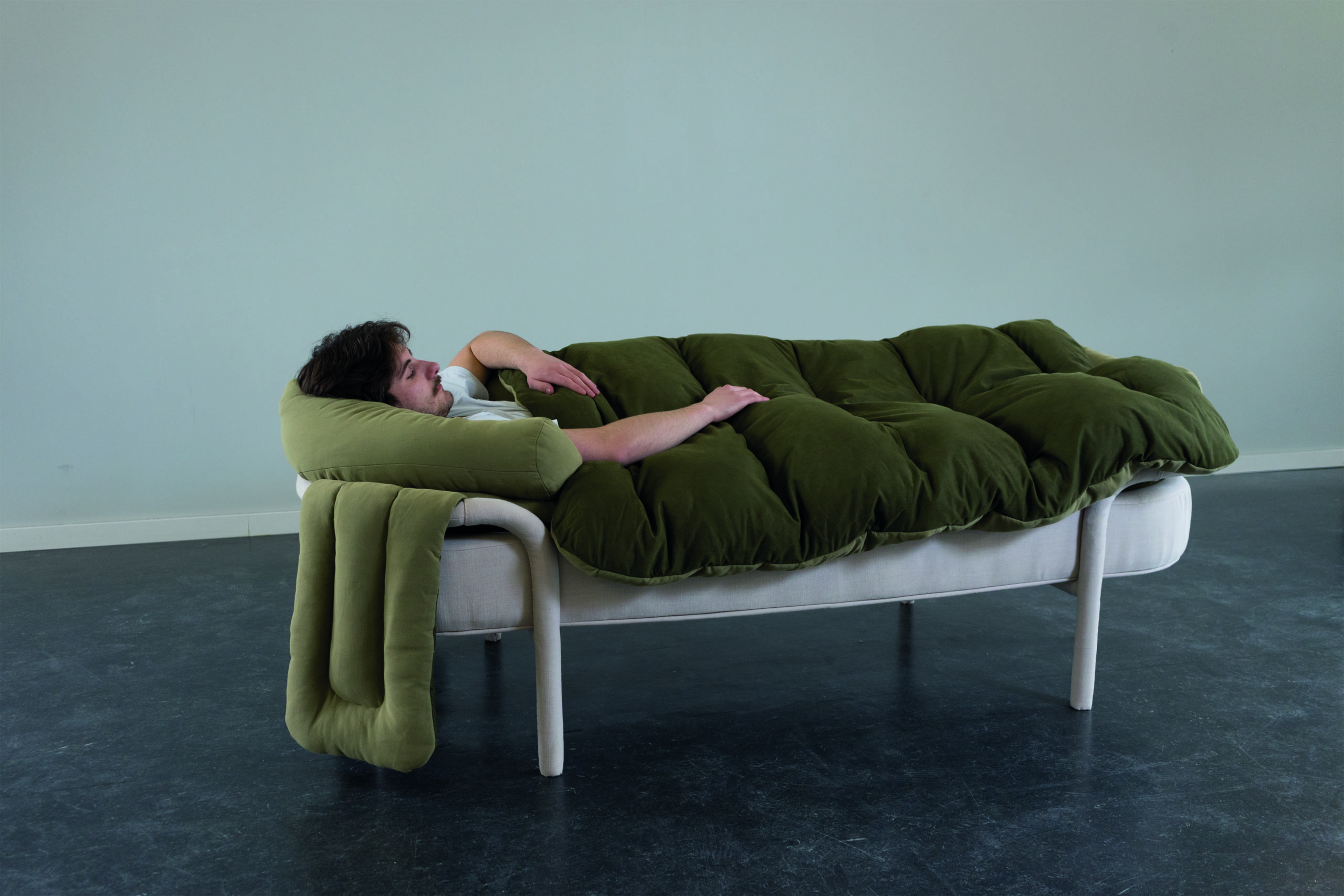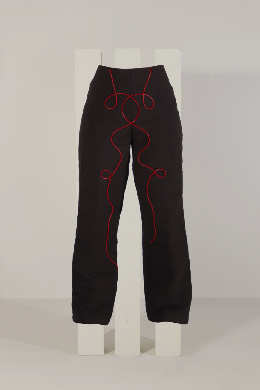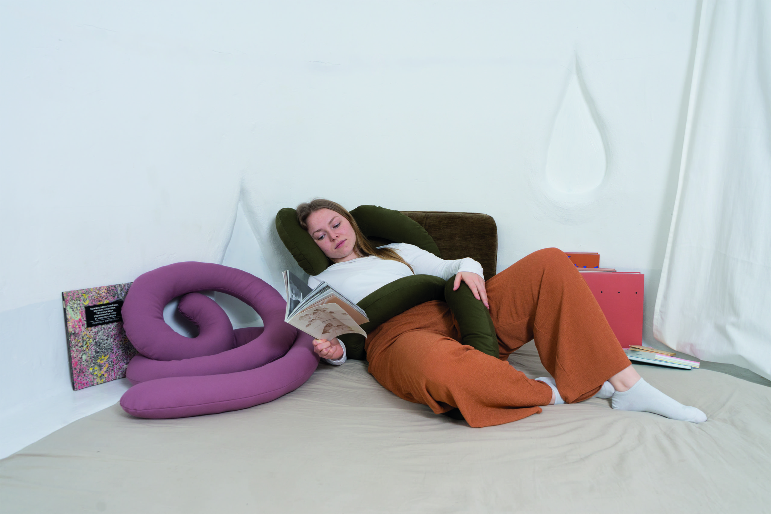 Throughout history, an ideal body has developed that people have not been able to distance themselves from for a long time. People who do not fit into this perfect image are prisoners in their body, which is not perceived as perfect by society. The hoodie serves as protection and a place of retreat from contemptuous looks and comments. Dealing with this subject has led me to develop a distorted perception of the body. Between stigmatized classical beauty, a sculptural figure develops that distorts/deconstructs the body as it is known and is meant to bring it into new dimensions. A play between space and body emerges that both relate to the body and distances itself from it. By modifying the silhouette, a positive reference is drawn to inequalities that are inherent in everybody.By creating a manifestation, the viewer is encouraged to distance himself from the „normal“ ideal image. The wearer must turn away from familiar body shapes in his appearance, which creates a stadium between sculpture and human being. They should feel comfortable and fade out the reduction to society’s ideal image.