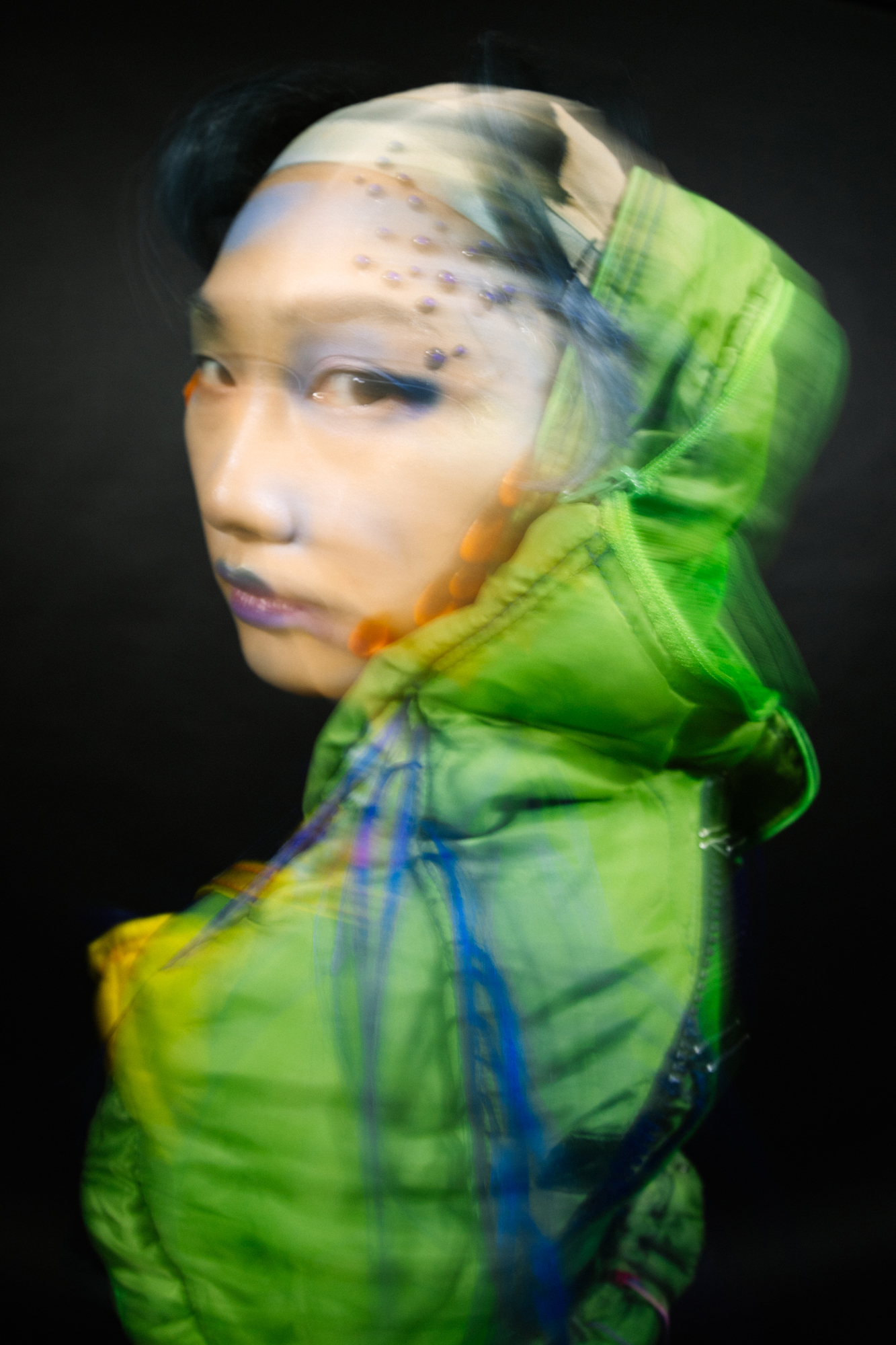 Die Insperation kam von dem Anime Film „Colorful“. Dieser Film erzählt das jede/r seine eigene Farbe hat, egal ob sie schön oder hässlich ist. Die Frage ist, ob du deine eigene Farbe herausfinden kannst.Der schwarze Hoodie wird mit dem Reißverschluss in zwei Teile geöffnet um mit den farbenfrohen Blüten die Innenseite zu zeigen. Nach der Öffnung der Kapuze sieht man den Farbübergang, obwohl die schwarze Dunkelheit noch darunter liegt.Das Öffnen des Reißverschlusses symbolisiert das Aufblühen einer Blume. Als veränderter Prozess sehen wir nicht mehr den schwarzen Hoodie, der einen versteckt, sondern schöne Farben in Form von Blumen.Durch diese Inside Out Transformierung möchte ich mit dem Hoodie eine Assosiation zum Überstehen von Hinderniessen schaffen. Das Überstehen kann vieles unterschiedliches sein, denn jede Person hat seinen eigenen Kampf. Was könnte ein Kampf sein? Manche Menschen leiden unter Depression und müssen den Mut aufbringen, zum Arzt zu gehen , oder Andere haben Angst in einer Fremdsprache zu versagen und brauchen die Motivation zum Lernen , und widerum Andere kämpfen mit dem Weg zur Selbstständigkeit.Durch das Ziehen des Schnur wird die Kapuze geöffnet und die farbenfreue Innenseite bezeigt.Das Ziehen bzw. Reißverschluss steht die Motivation / der Wille / die Aktion da, und als Ergebnis davon sehen wir nicht mehr Schwarze Kapuze, die einem versteckt , sondern schöne Farben in Form Blumen. Dieser Prozess symbolisiert das Aufblümen einer Blume.
