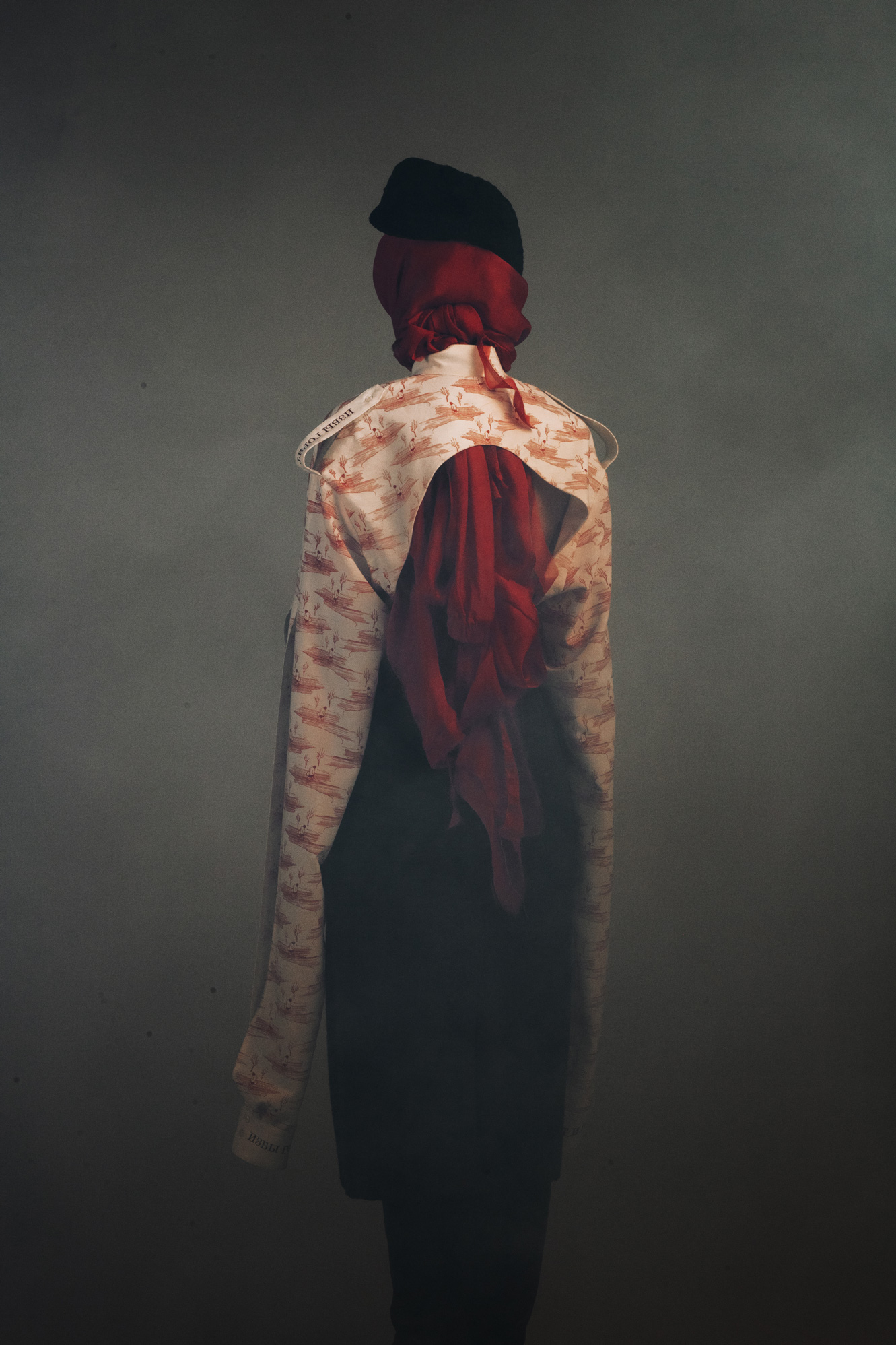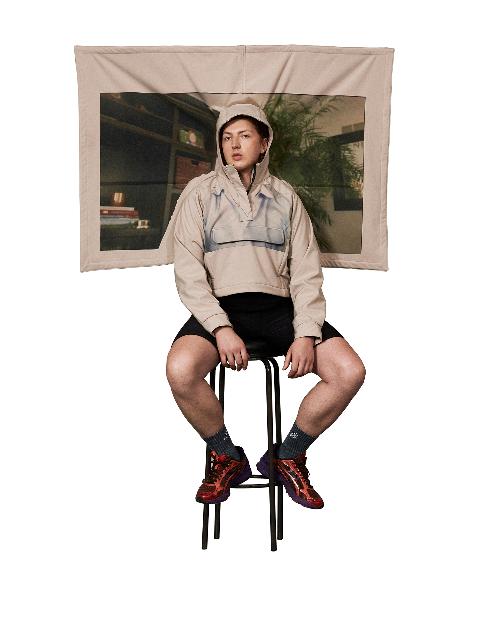 Shame is a powerful emotion, whose very existence involves the perceived and internalised Gaze of society. It’s essentially being used as a weapon to manipulate individuals to behave in a certain way, hiding their true identity. The internalisation comes to a point that one lives with a constant tension between the self’s action and the self’s standards.Either secluding oneself from society or hiding one’s true identity and personality are the only ways out if you feel not fit to live in your own community. avoid the social gaze addresses our daily struggles with the feeling of shame since our very actions are steered by the need to avoid feeling shame.The whole body is covered by at least one garment with only bits and pieces of bare skin peeking out. The hoodie is masking the most identifiable part of the body – the face. The lies you tell the people around you to fit their expectations of you just start to pile up and wear you down. Living this way is uncomfortable, suffocating and unsatisfying. Stuck in the facade you once built yourself even when you finally decide to shed that shell.