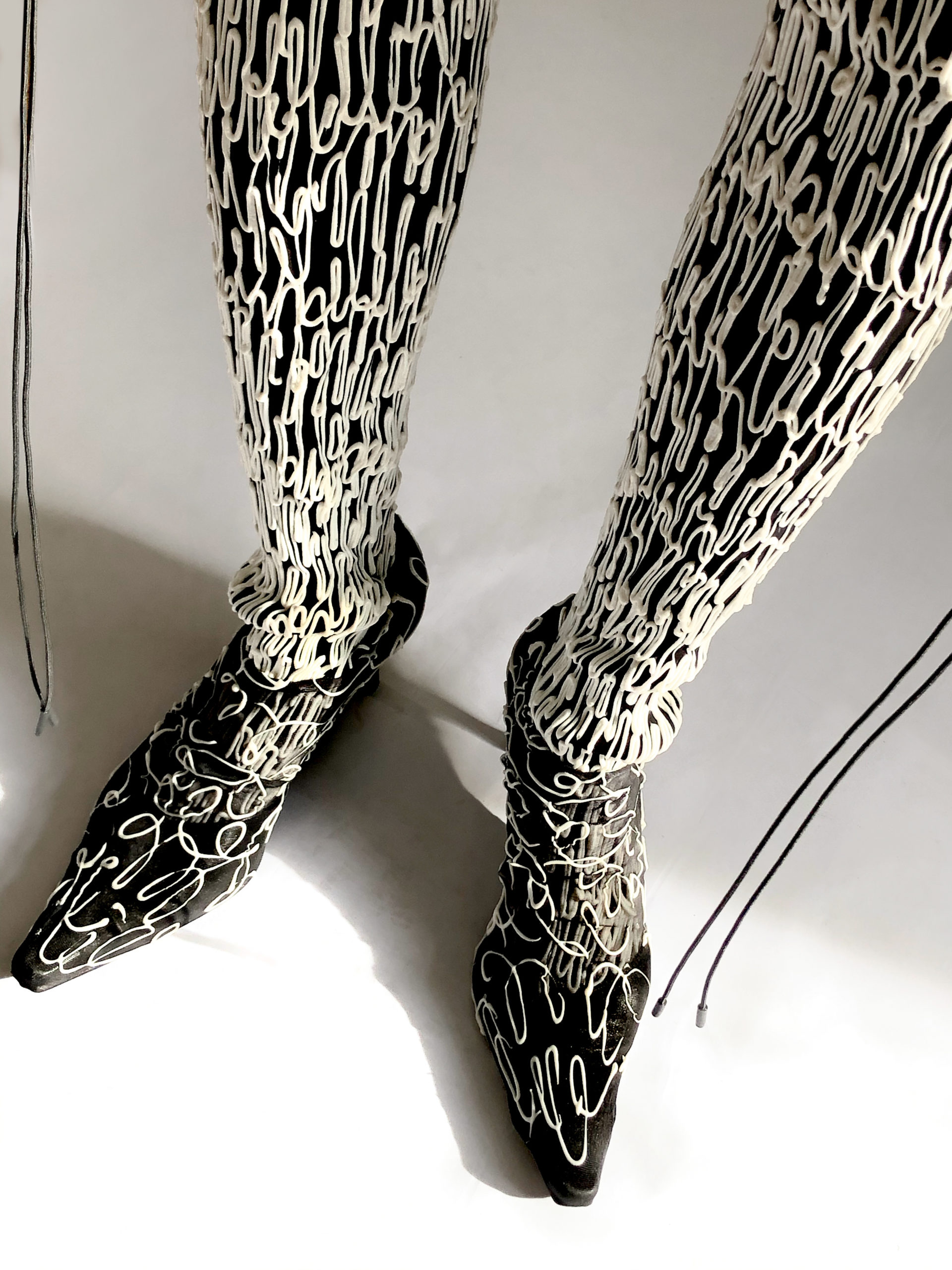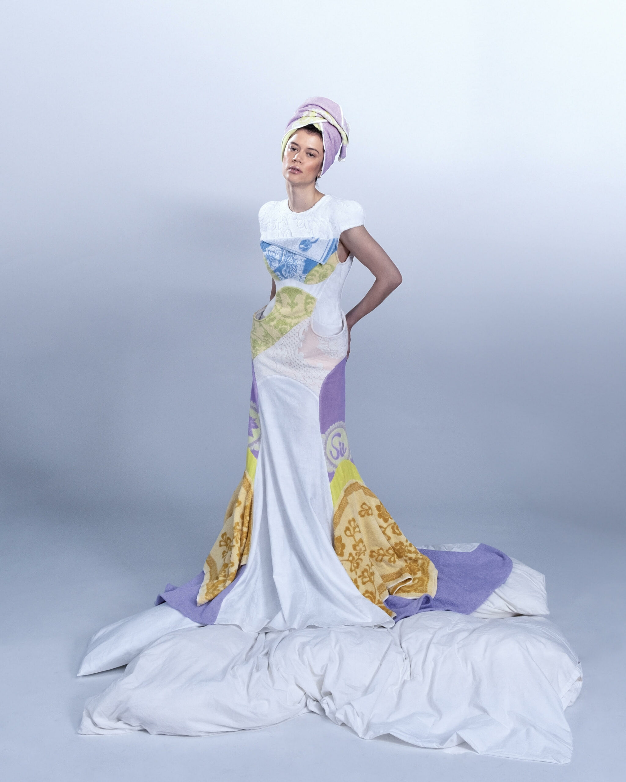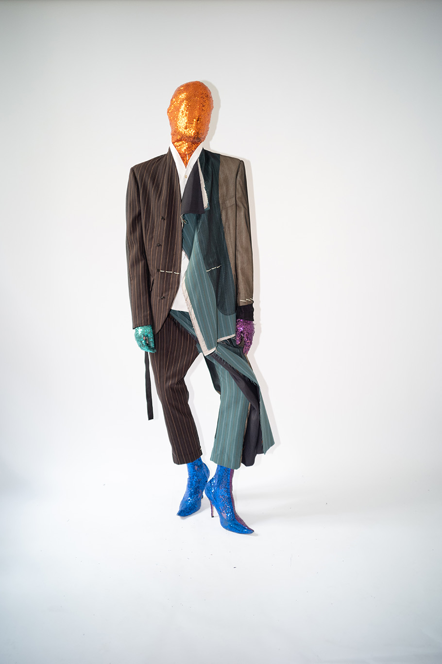 Throughout history, an ideal body has developed that people have not been able to distance themselves from for a long time. People who do not fit into this perfect image are prisoners in their body, which is not perceived as perfect by society. The hoodie serves as protection and a place of retreat from contemptuous looks and comments. Dealing with this subject has led me to develop a distorted perception of the body. Between stigmatized classical beauty, a sculptural figure develops that distorts/deconstructs the body as it is known and is meant to bring it into new dimensions. A play between space and body emerges that both relate to the body and distances itself from it. By modifying the silhouette, a positive reference is drawn to inequalities that are inherent in everybody.By creating a manifestation, the viewer is encouraged to distance himself from the „normal“ ideal image. The wearer must turn away from familiar body shapes in his appearance, which creates a stadium between sculpture and human being. They should feel comfortable and fade out the reduction to society’s ideal image.