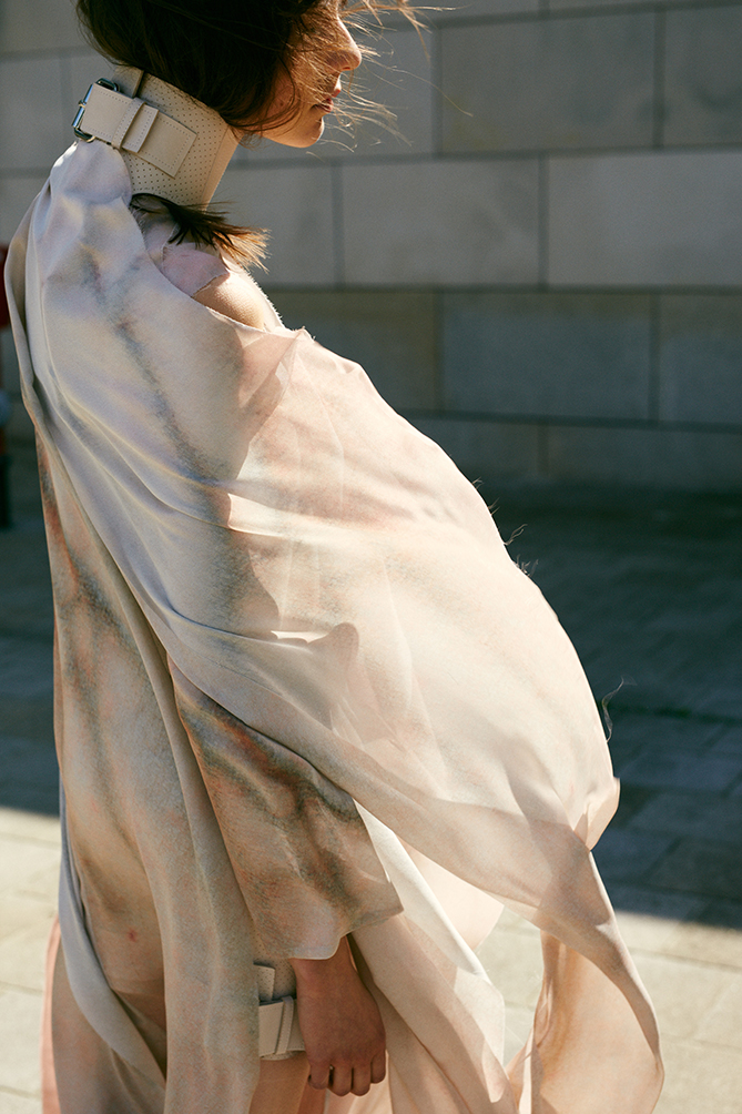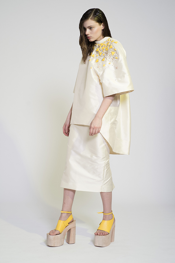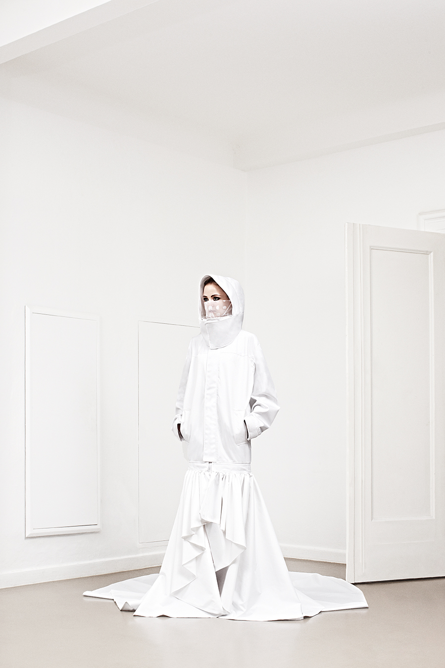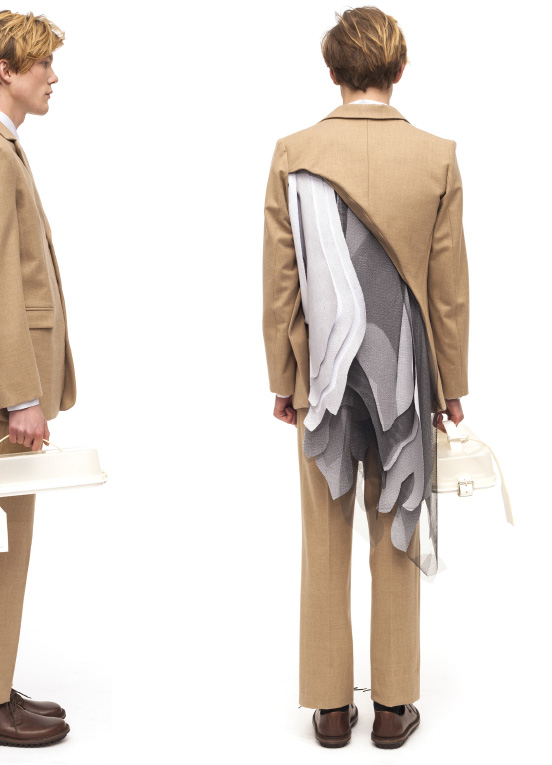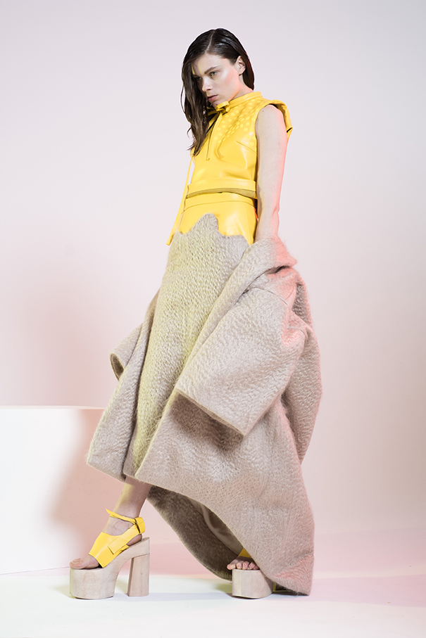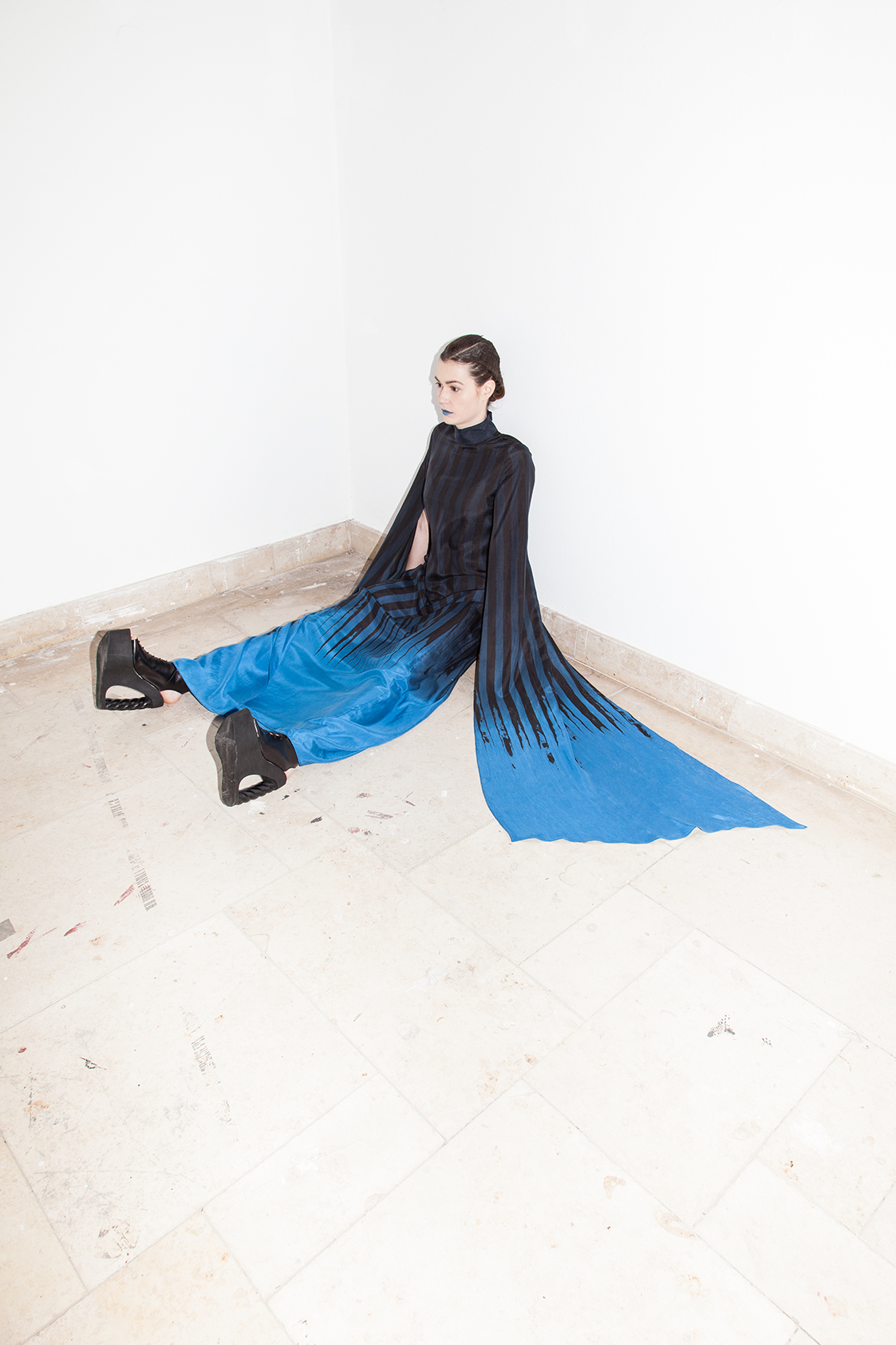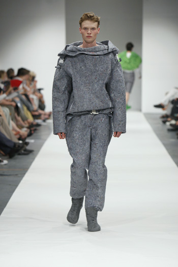 The following are some of the specific questions we asked the students to consider: What does their planet look like, what is it made of, what is it like to live there, what social structure exists, and most importantly, what, as a result of these factors, do its inhabitants wear? Is the gravity on the planet strong or weak? Is the planet rich in a particular mineral or overrun by a particular animal or plant? What are the garments made from and how are they manufactured? How might fashion and its industry have developed on a genderless planet? Who produces the clothes and what do models look like? What clothing types, shapes and codes have developed? Ultimately, can fashion imagine itself having a broader agenda in terms of what it expresses and deals with? Could it imagine alternative means of expression and production? In other words, could fashion be about things other than fashion?