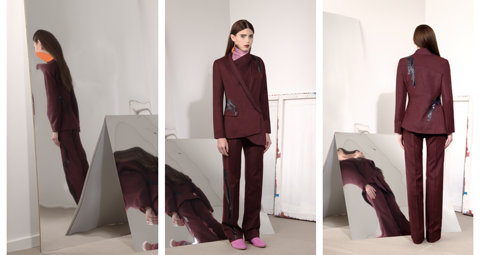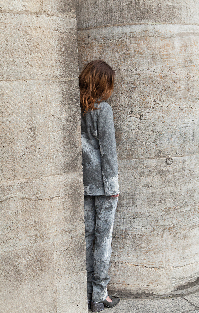 Klassische konstruierte Kleidungsstücke wie der Mantel, Anzug und das Hemd beginnen sich aufzulösen. Die unterschiedlichen Schichten verbinden sich. Verwachsen miteinander. Nähte verzerren sich in organischen Bewegungslinien, pastös aufgetragenes Silikon individualisiert die Kleidungsstücke, verstärkt fixiert einen Moment der Bewegung. „I would like my pictures to look as if a human being had passed between them, like a snail, leaving a trail of the human presence“, so Francis Bacon.