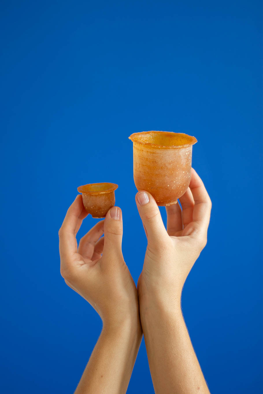 mollikühl ist partyshotglas und kühler in einem, formal inspiriert von der struktur des wassermoleküls. drei atome formen die gläser, ihre verbindung den