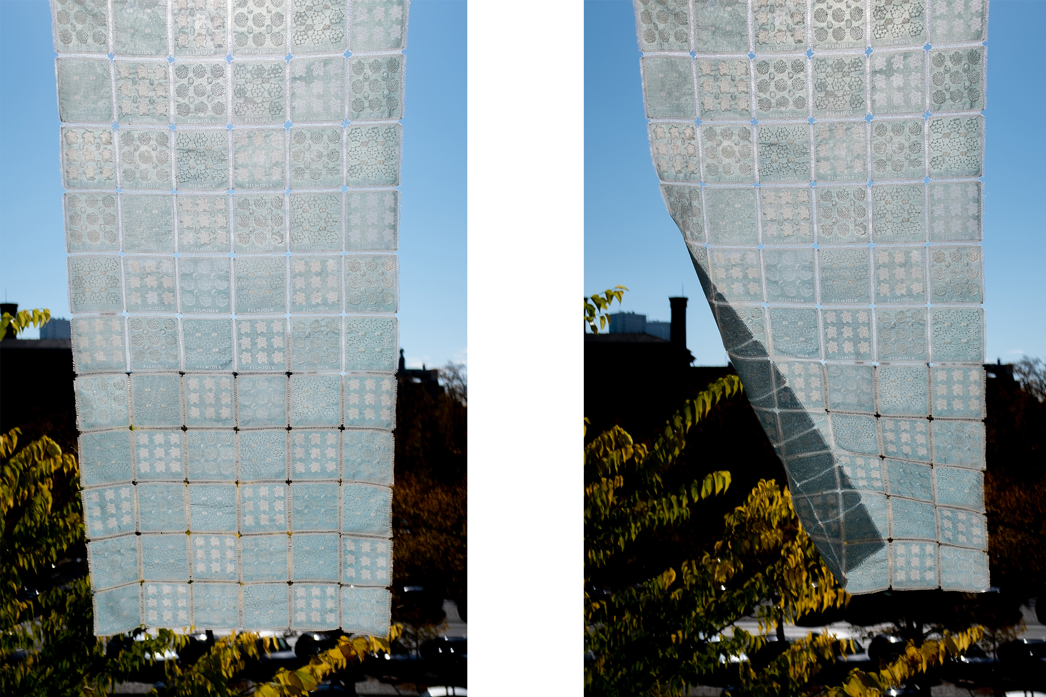 Acrylglas ist bereits ab einer Temperatur von 100 °C verformbar und somit simpel im Backofen oder mit dem Heißluftfön zu erhitzen. Das sonst robuste und harte Material wird beweglich, die Formen werden weich. Je höher die Temperatur, desto weiter und länger lässt sich das Acrylglas verformen. Der gewollte Kontrast war mit diesem Material gegeben. So entstand aus den Experimenten eine Reihe von Zuständen der Verformung.